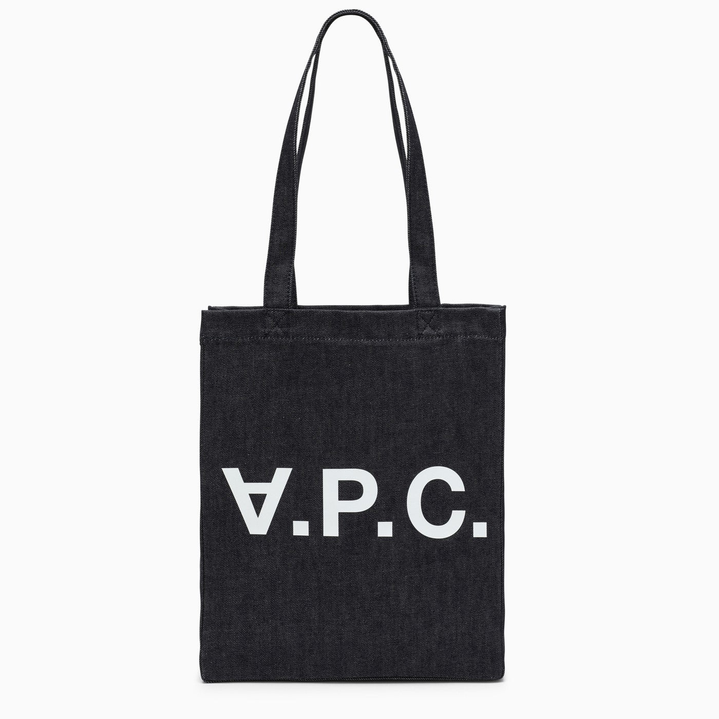 Tote bag by A.P.C. in blue cotton denim, featuring top handles, logo on the front and inside pocket.