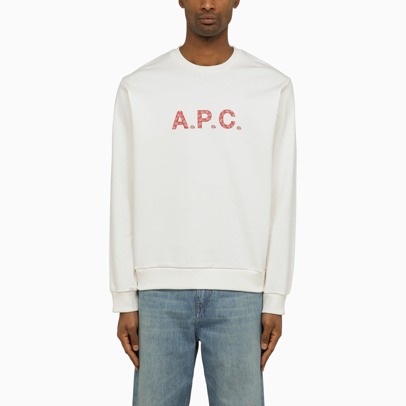 Crewneck sweatshirt by A.P.C. in white cotton featuring front red logo print, long sleeves, ribbed cuffs and hem.