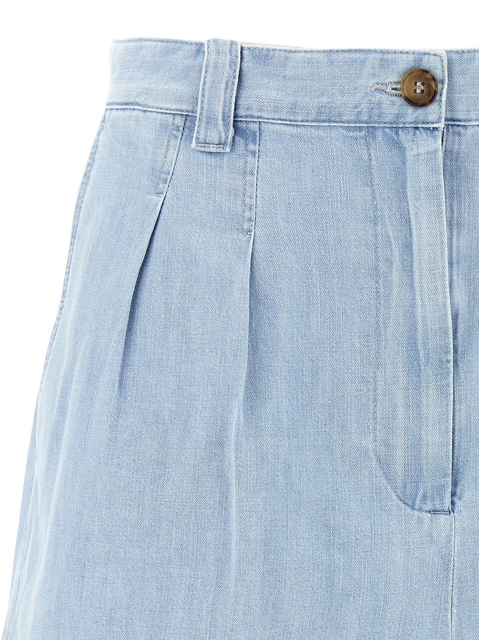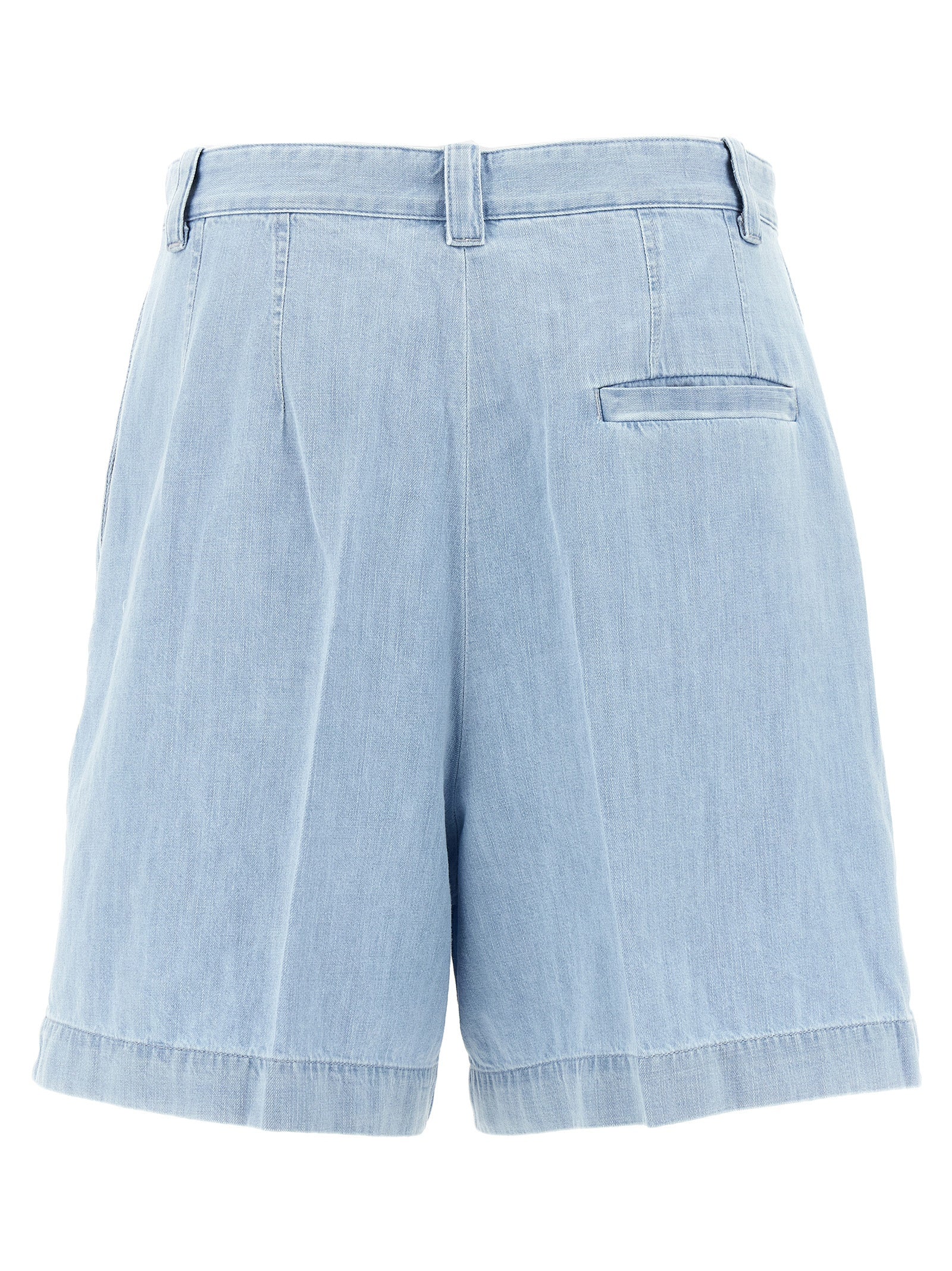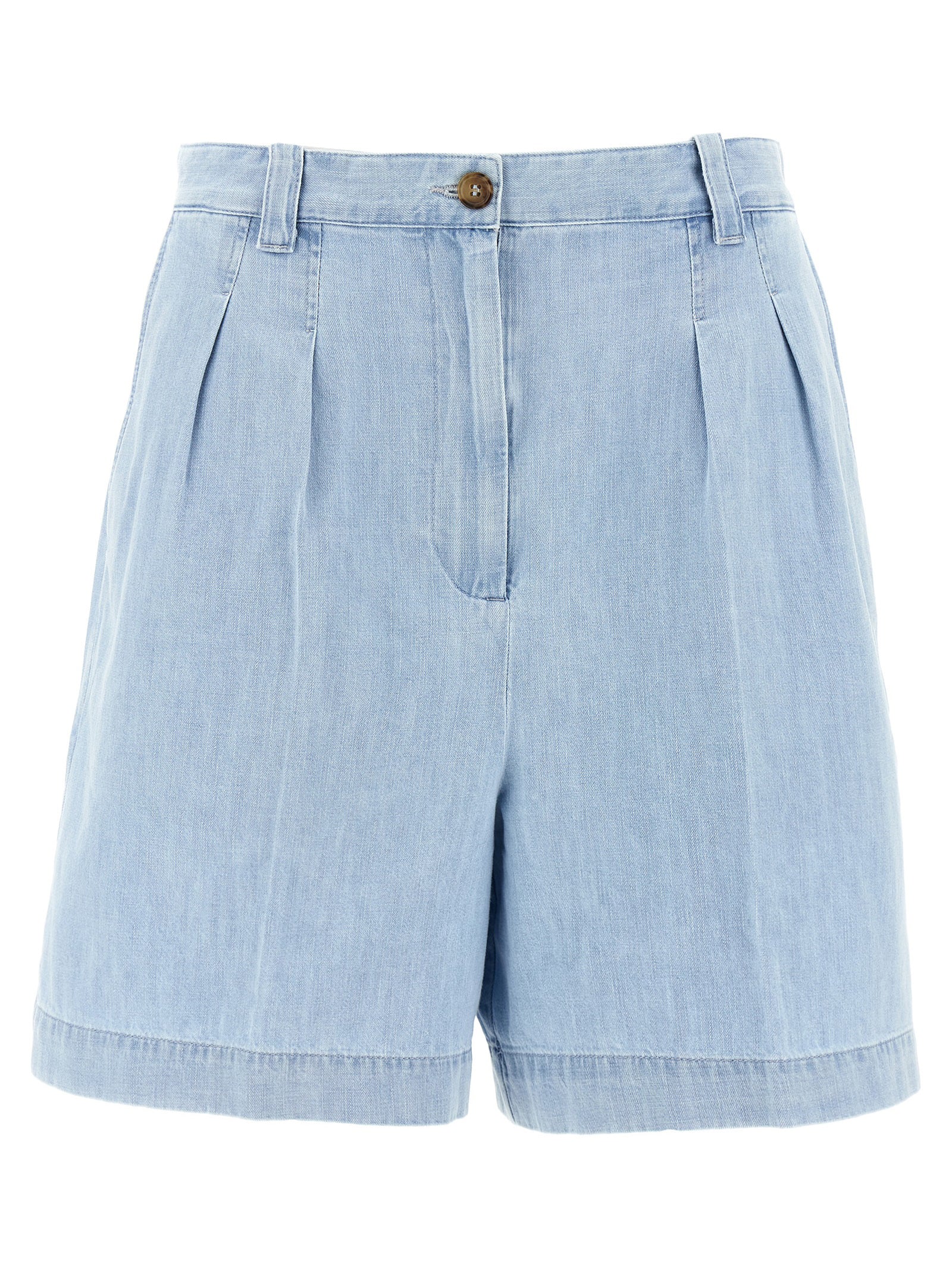 'Nola' high-waisted cotton denim shorts with front and back pin tucks, ironed crease, pockets, zip and front button closure.