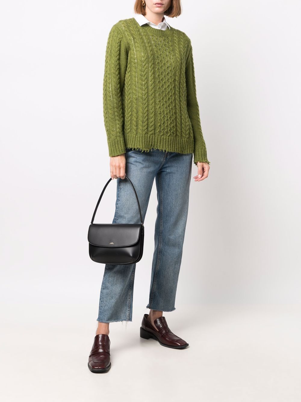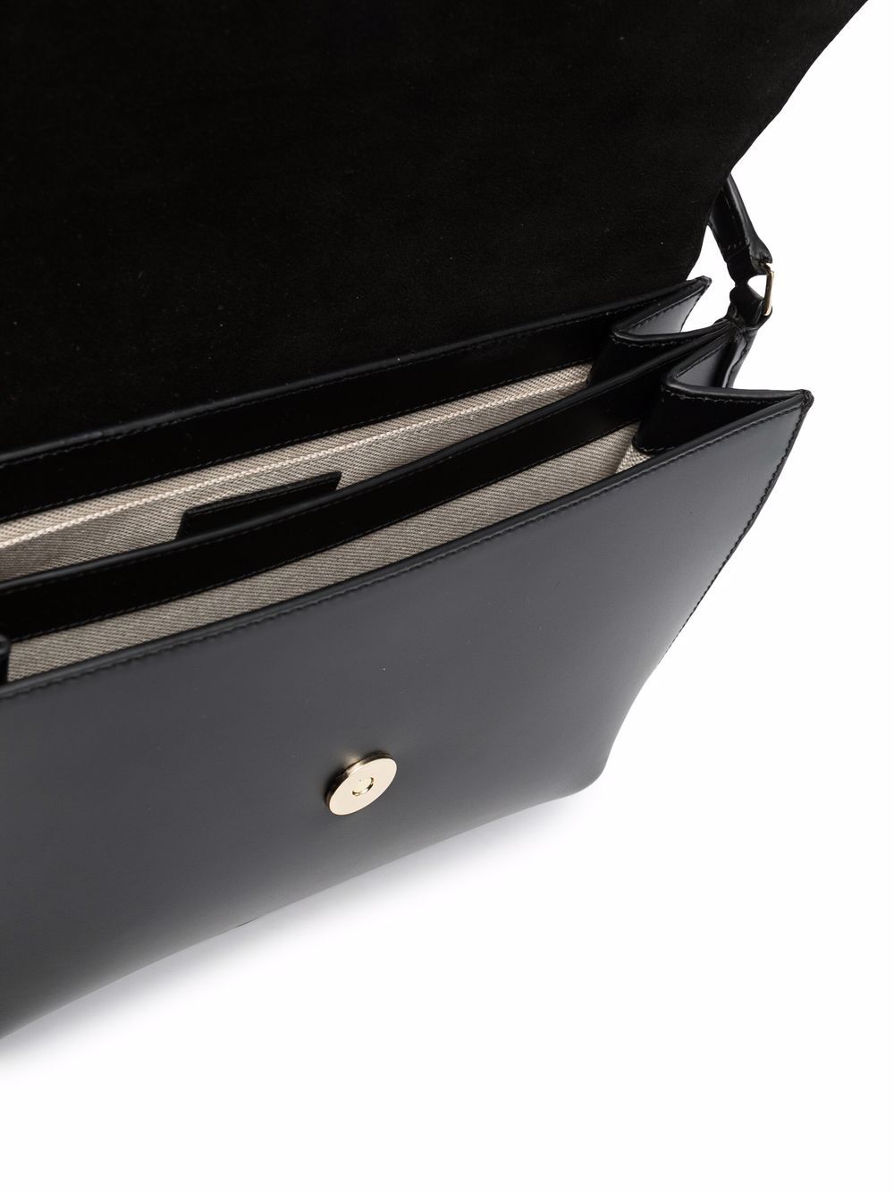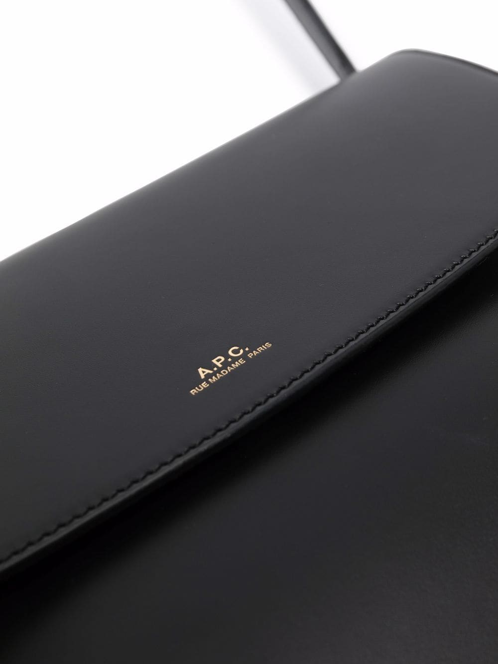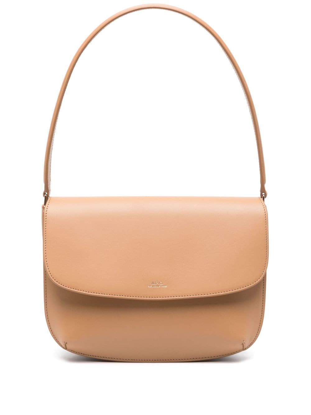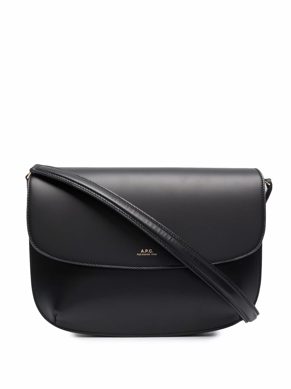 Leather/cotton Sarah leather shoulder bag from A.P.C. featuring gold-tone logo lettering, foldover top, long top handle and multiple internal slip pockets.