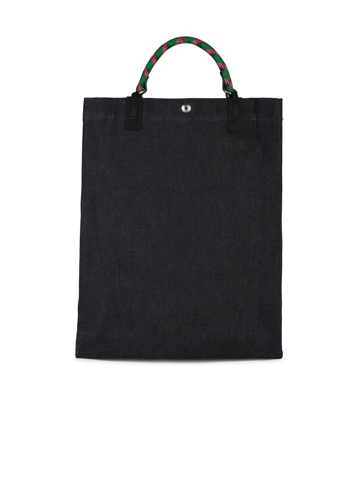 Double adjustable handle, contrast decorations on the handles, snap button closure, tone-on-tone finish, contrasting printed logo, single compartment, slit pocket\n38 x 30 x 8 cm