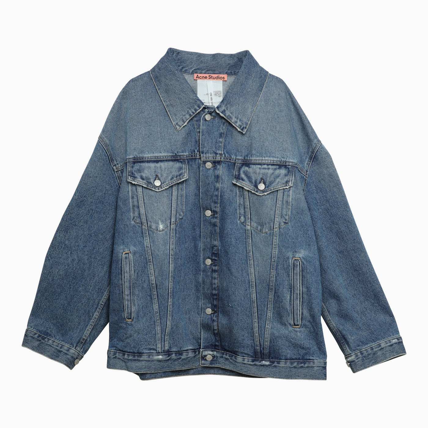 Blue cotton denim jacket from Acne Studios featuring a classic pointed collar, long sleeves, two front flap pockets, two side welt pockets and a button fastening.
