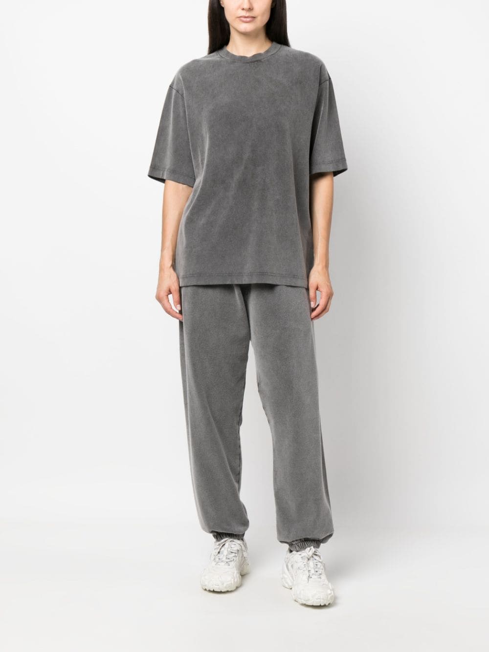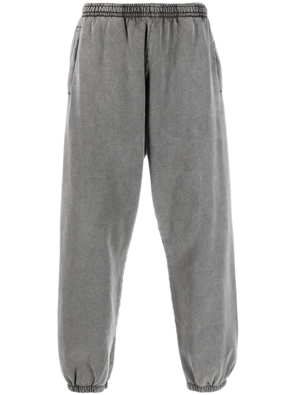 grey cotton washed elasticated drawstring waistband two side slit pockets logo patch to the rear elasticated ankles When buying this unisex item, keep in mind that it is graded in standard men's sizing This item is made from at least 50% organic materials. Learn more about what makes a product Conscious on our Conscious Criteria page