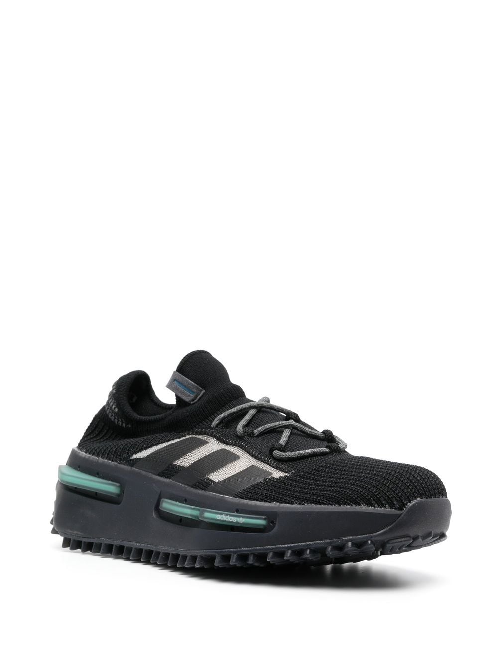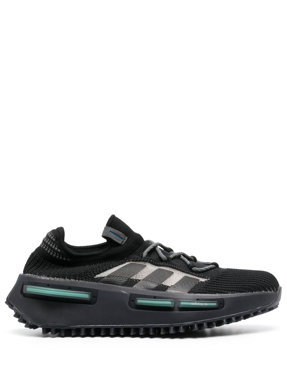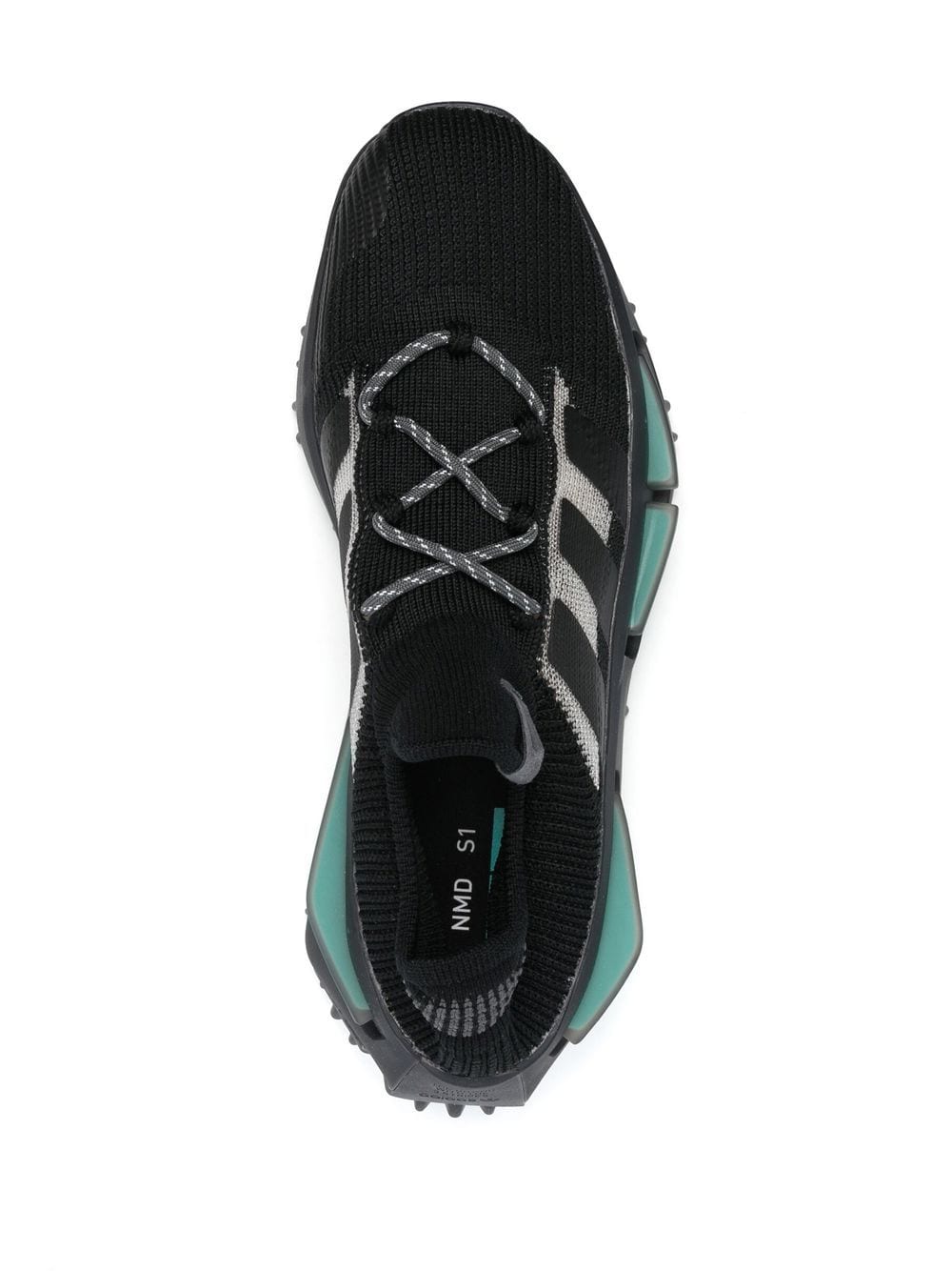 NMD S1 low-top sneakers from adidas featuring black, signature 3-Stripes logo, Primeknit construction, front lace-up fastening, round toe and chunky rubber sole.
