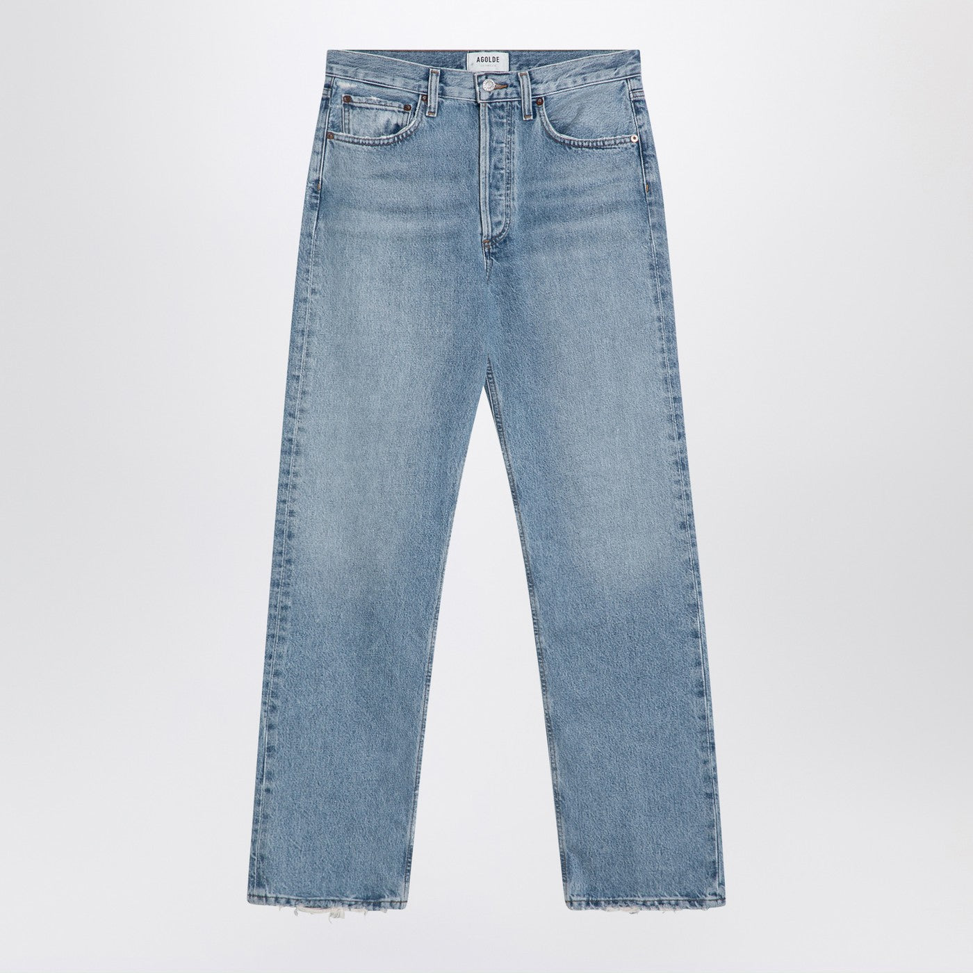 Jeans from AGOLDE in light blue regenerated cotton denim, featuring a front zip and button fastening, waist loops and classic five pockets.