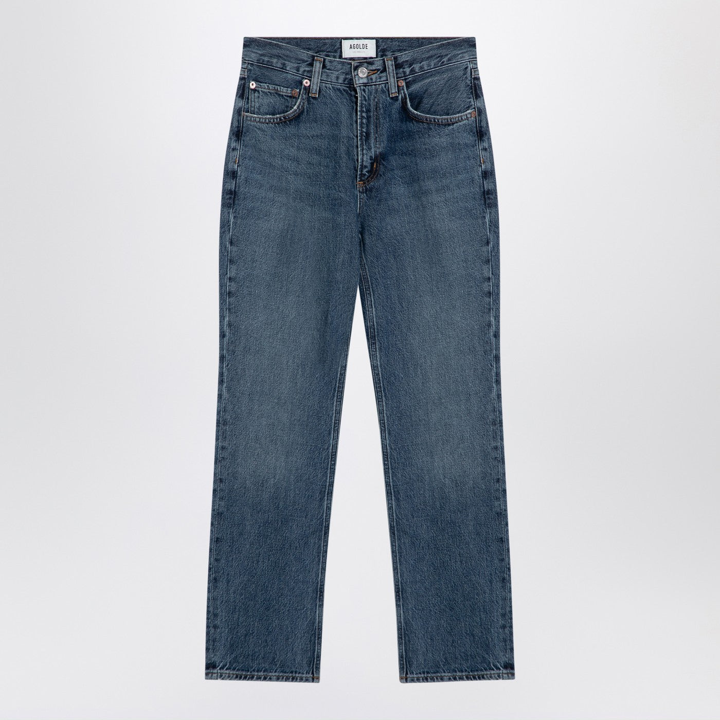Jeans from AGOLDE in blue washed-out regenerated cotton denim, featuring a front zip and button fastening, waist loops and classic five pockets.