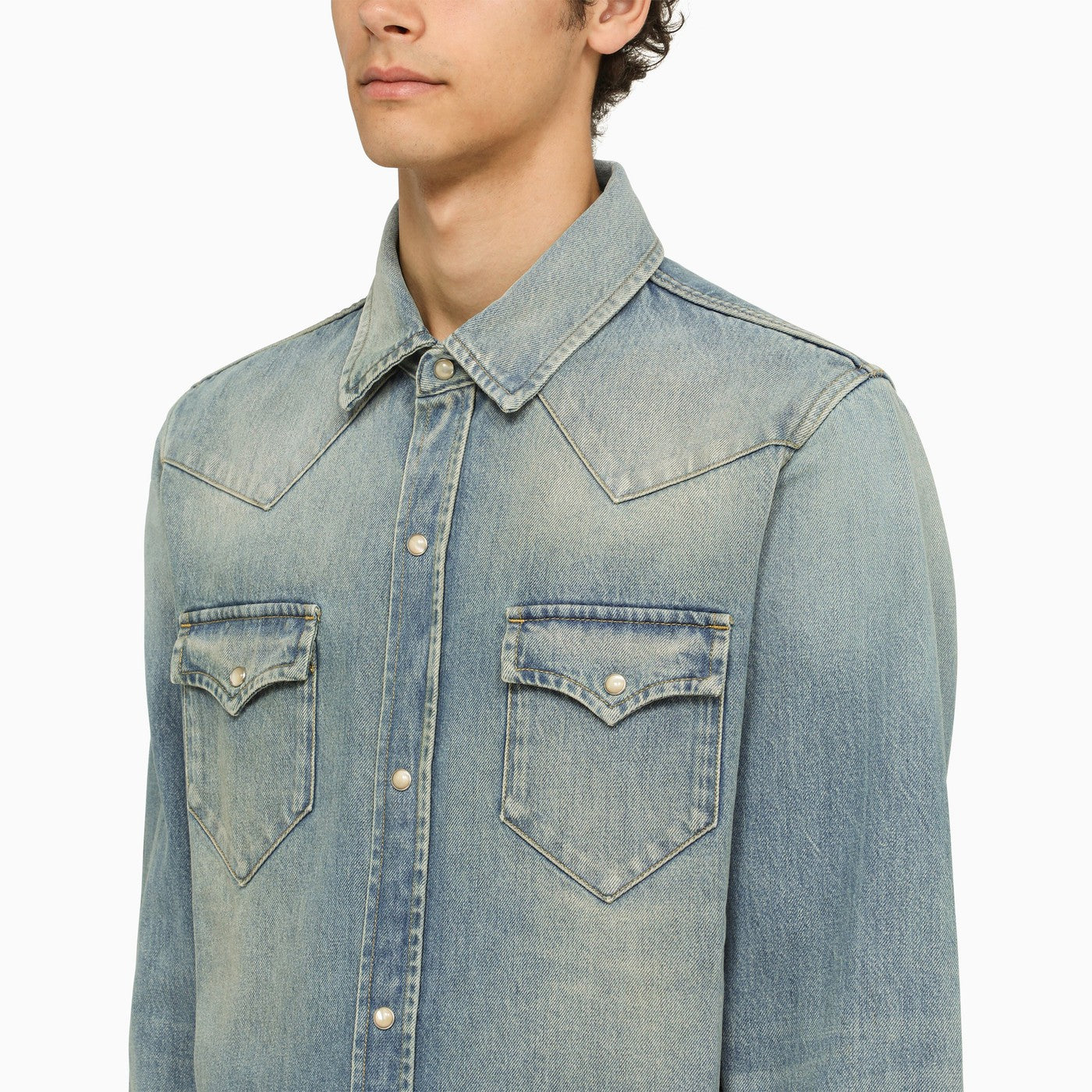 Light blue cotton denim shirt from Alanui featuring long sleeves, two chest pockets and a rolled hem.