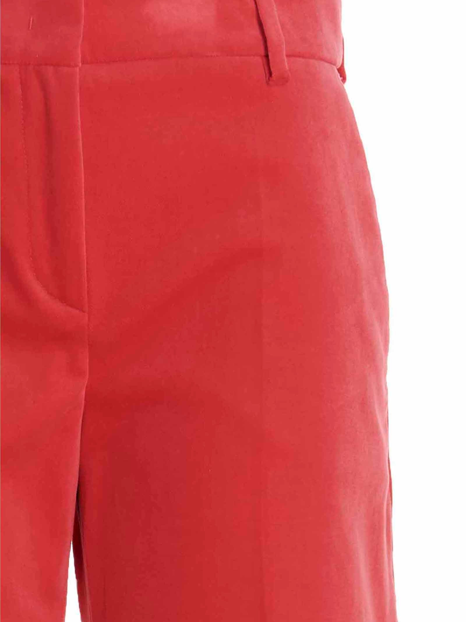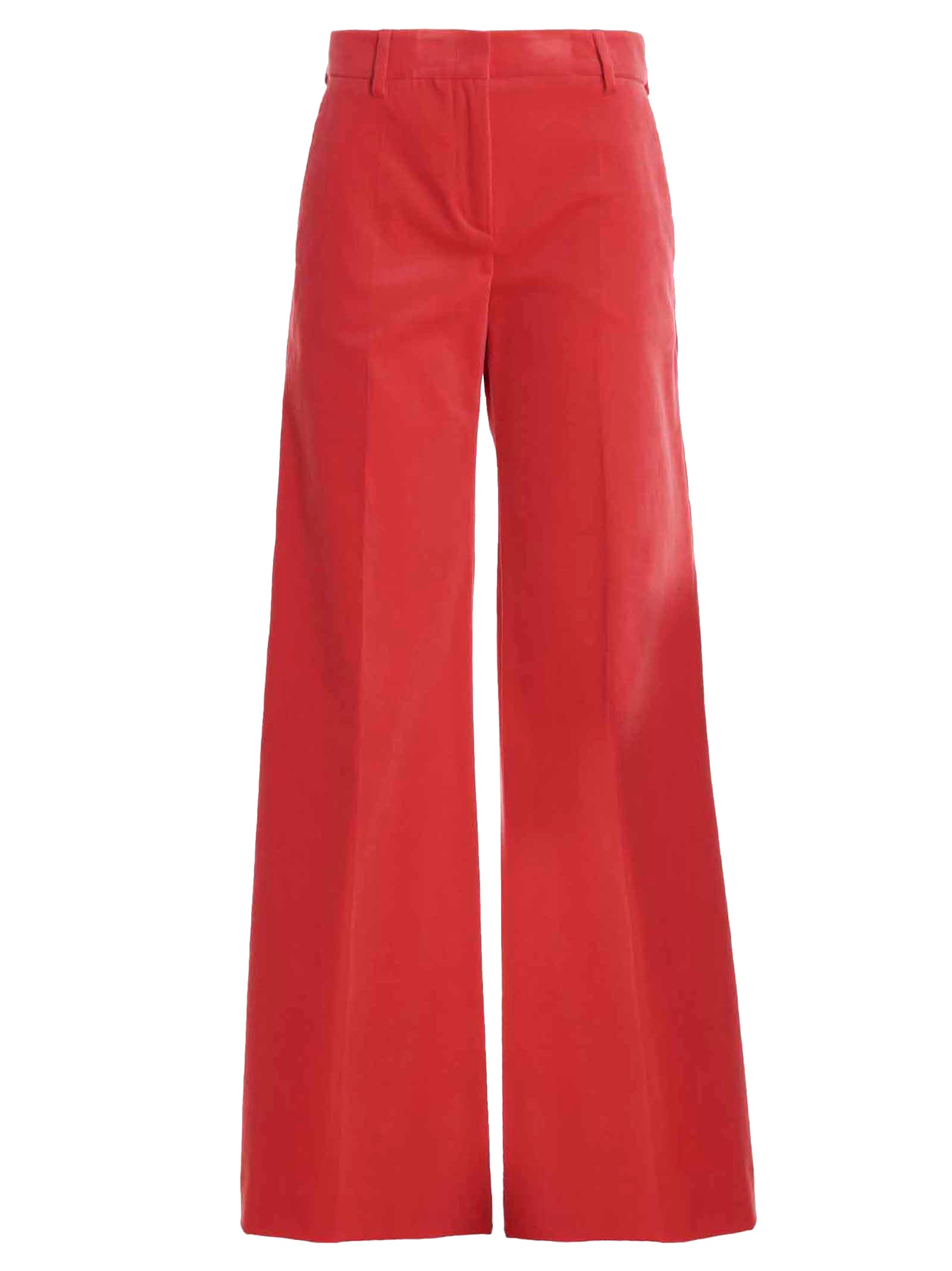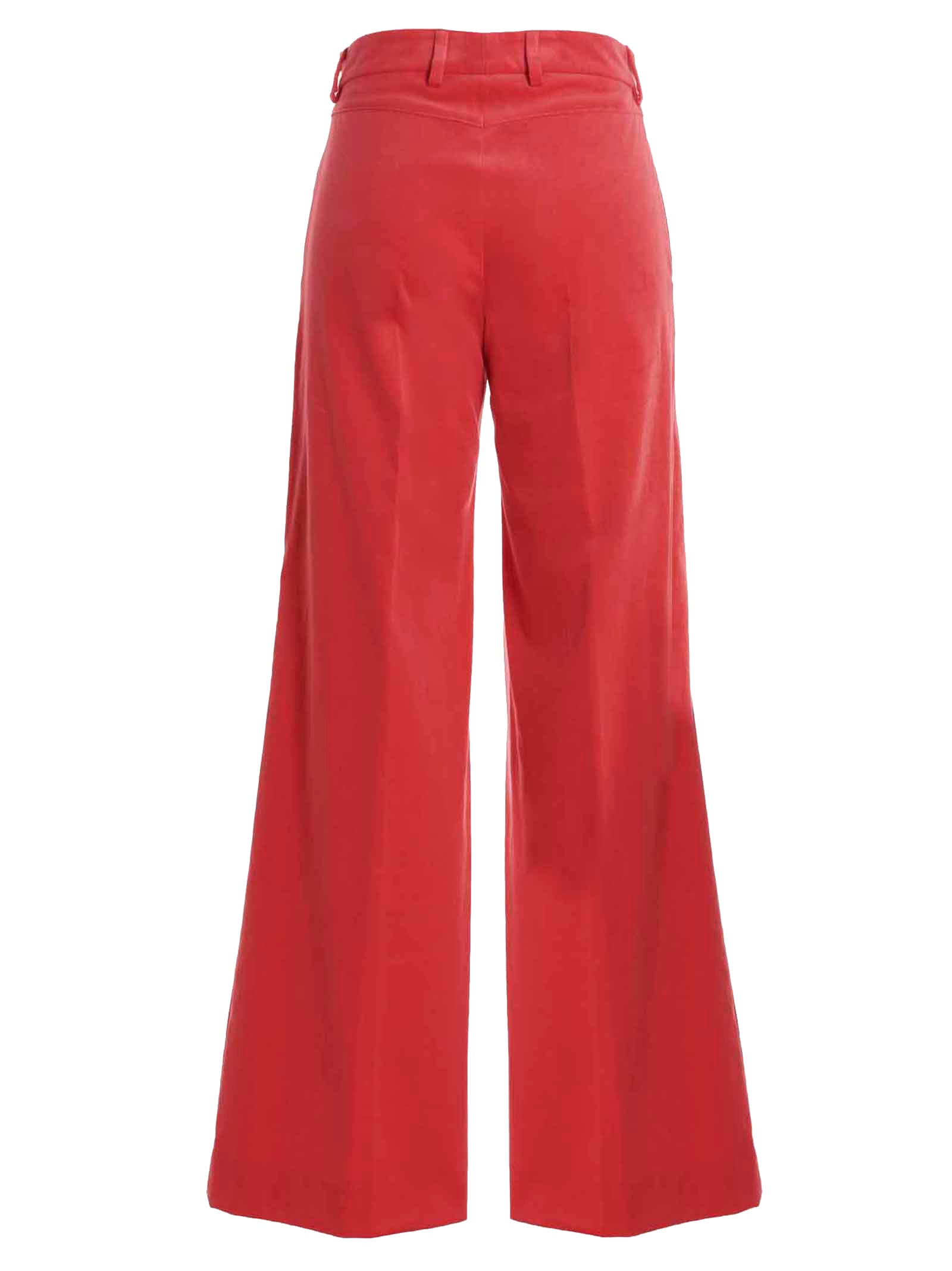 Velvet cotton denim trousers featuring a zip and hook-and-eye closure, pockets, a loose leg with a central pleat.