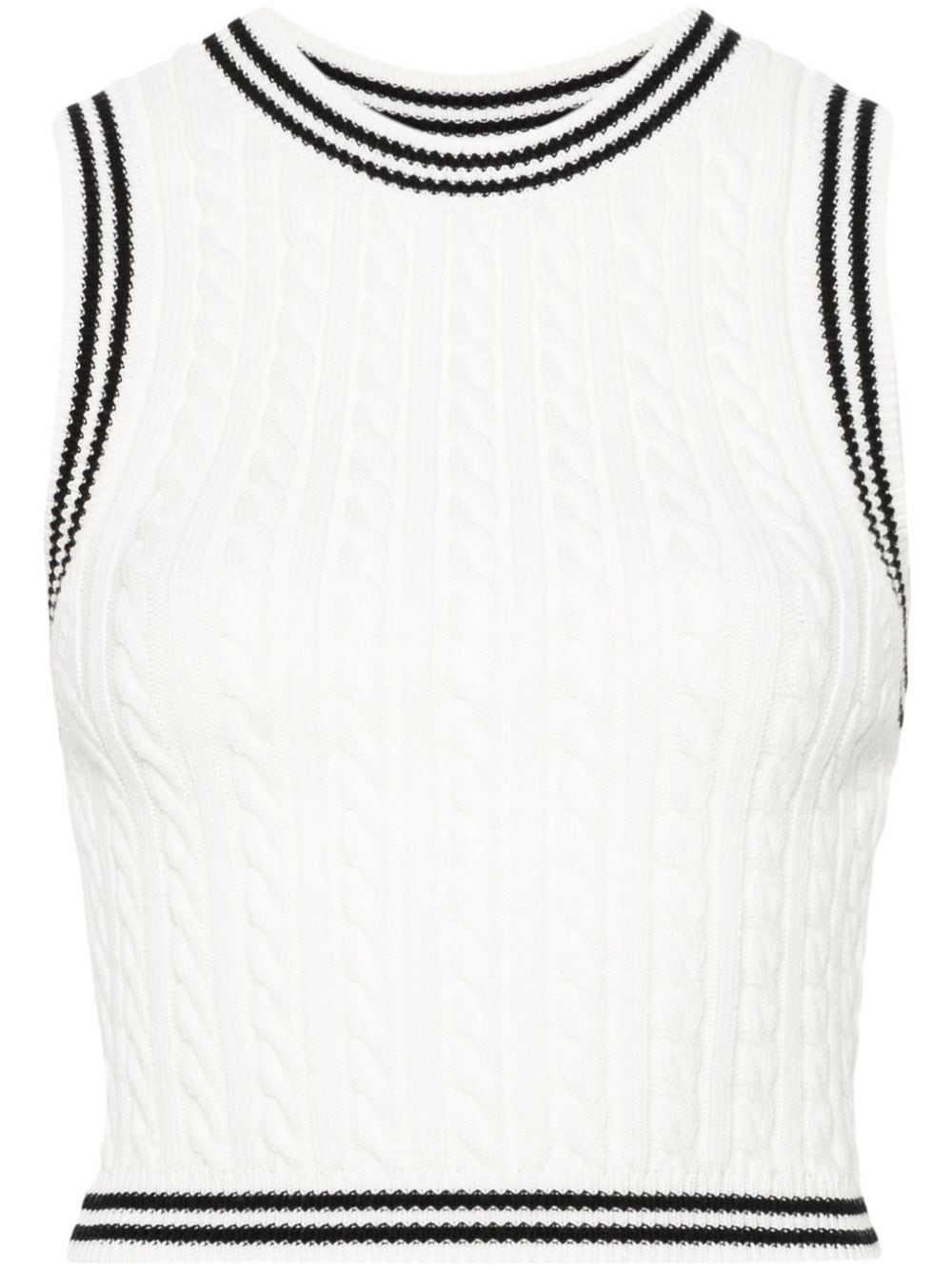 white, black cotton chunky cable knit striped edge crew neck sleeveless unlined ribbed hem cropped
