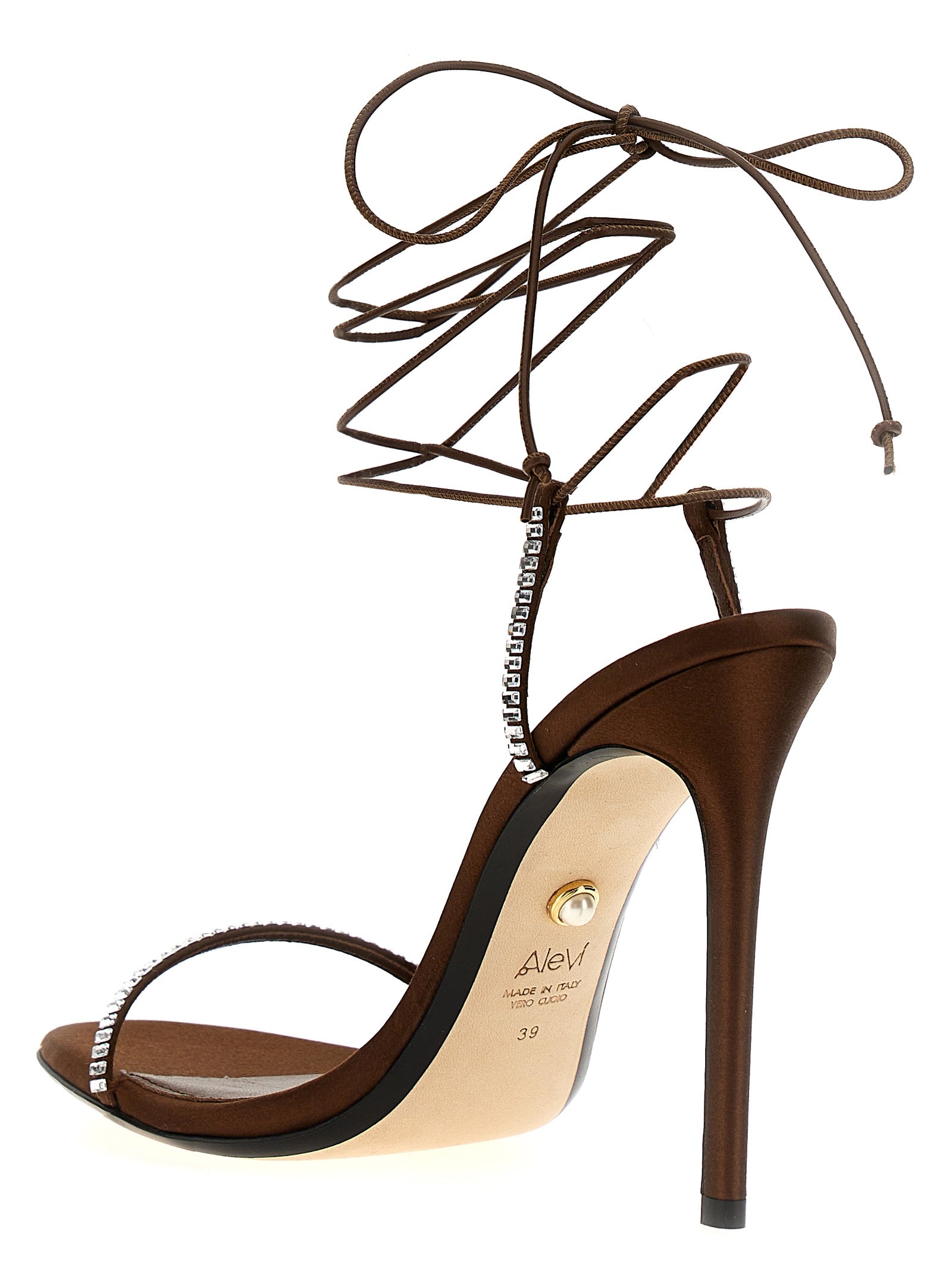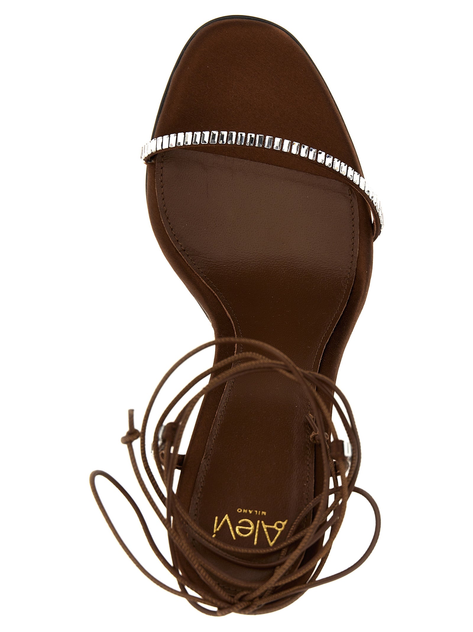 Kiky' satin sandals with crystal appliqué, waxed cord ankle fastening, stiletto heel covered in satin.