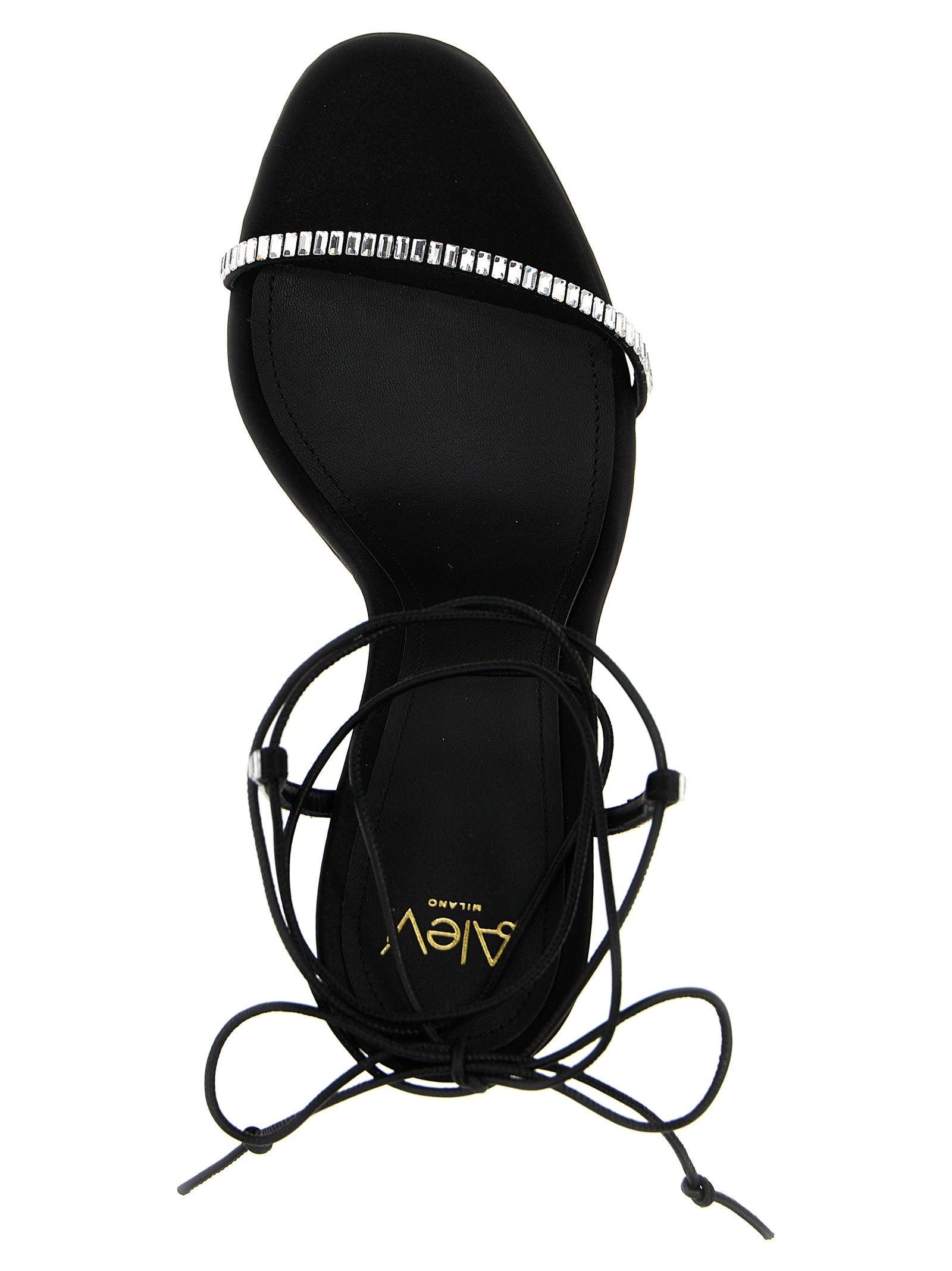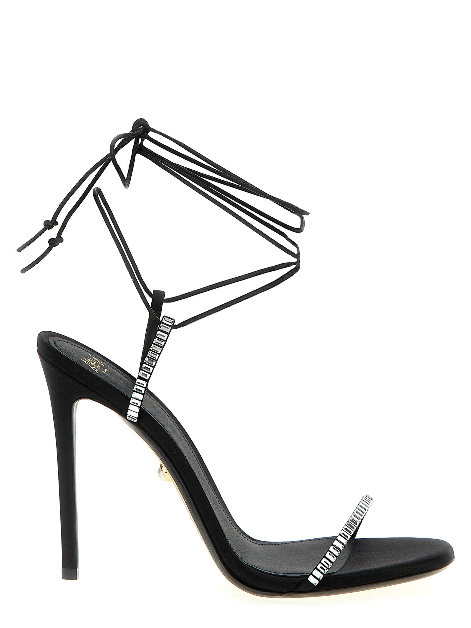 'Kiky' satin sandals with crystal appliqué, waxed drawstring ankle fastening, satin-coated stiletto heel.
