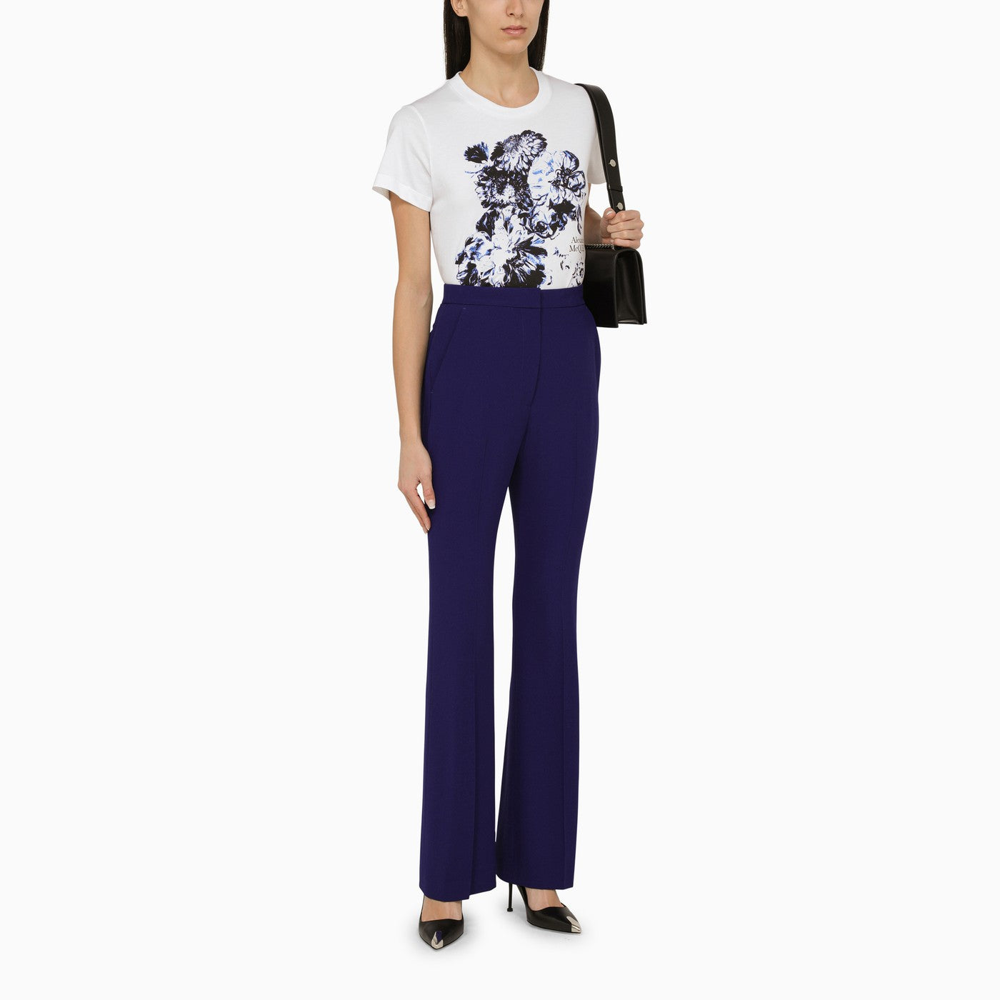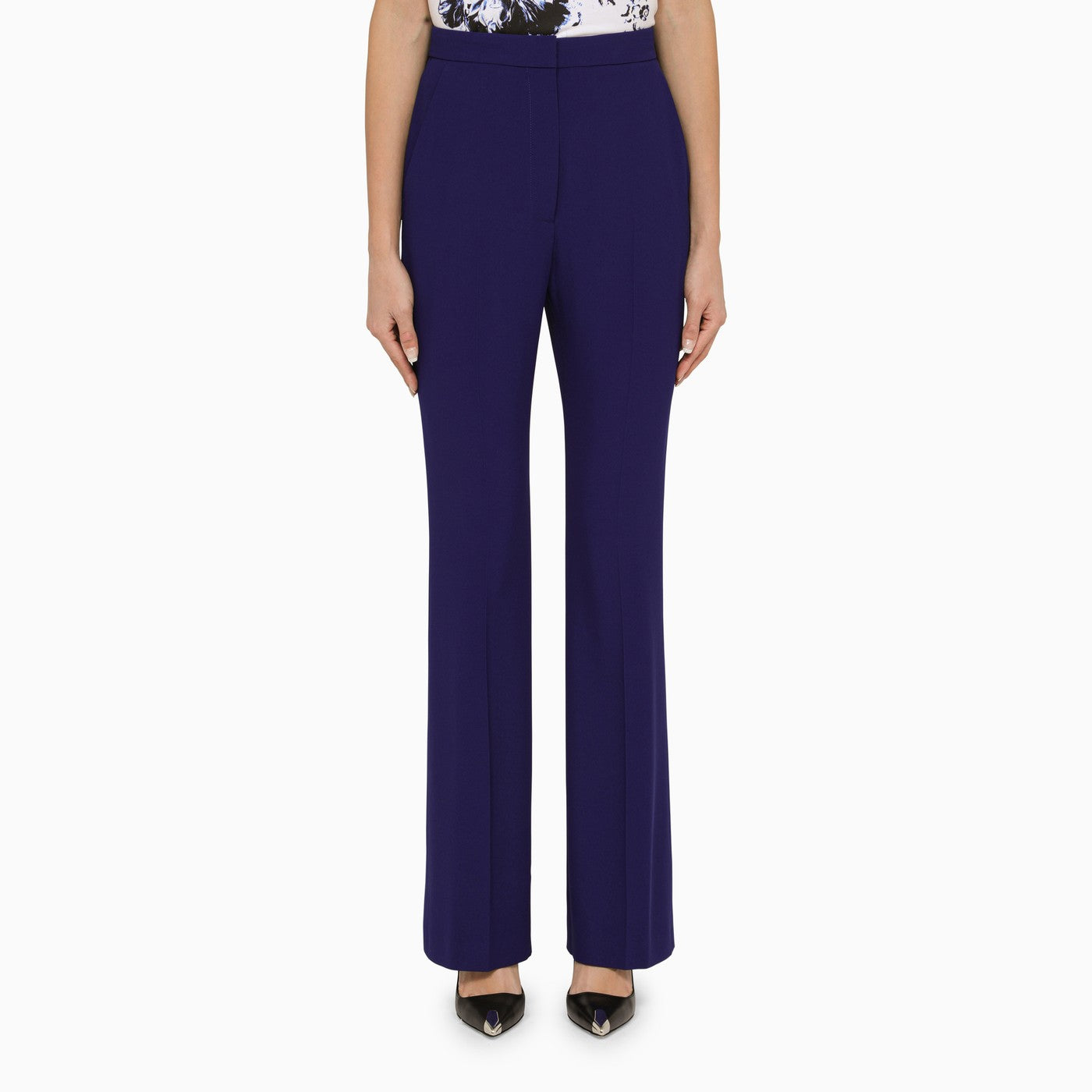 Electric blue regular pleated trousers from Alexander McQueen featuring a high waist with concealed fastening, two bellows pockets on the sides and two welt pockets on the back.
