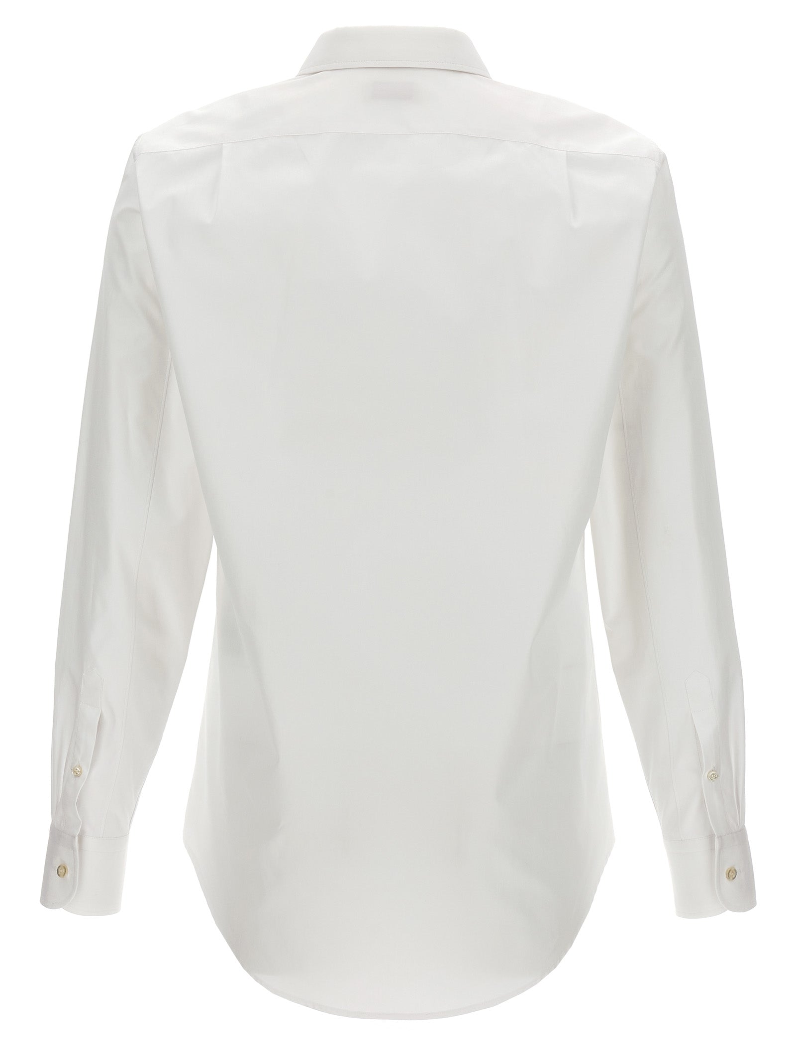 Cotton poplin shirt with embroidered collar and button closure.