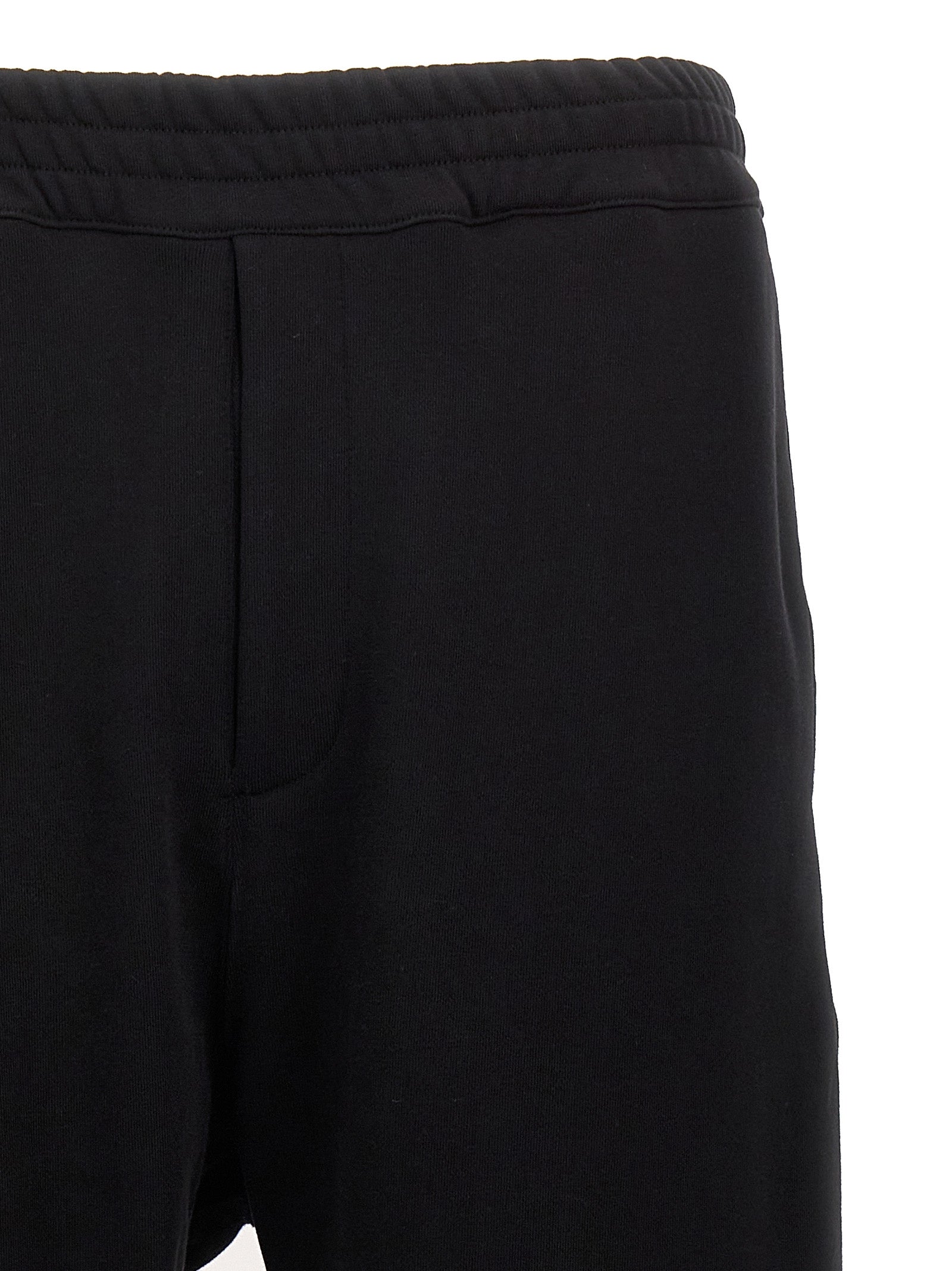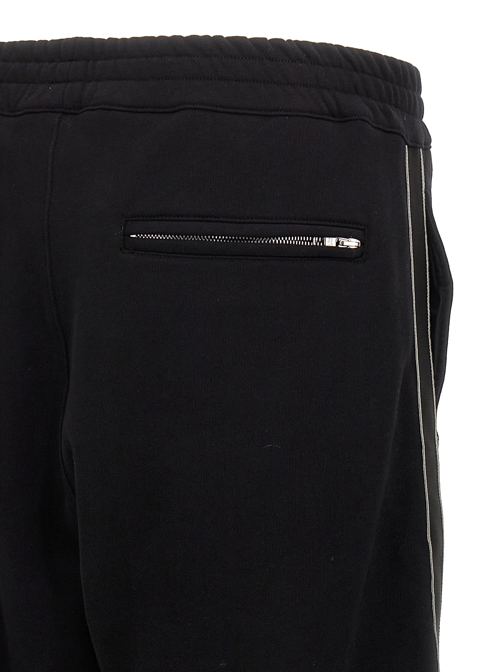 Cotton joggers with contrast side bands, elastic and drawstring at the waist, pockets, elastic ankle cuffs.