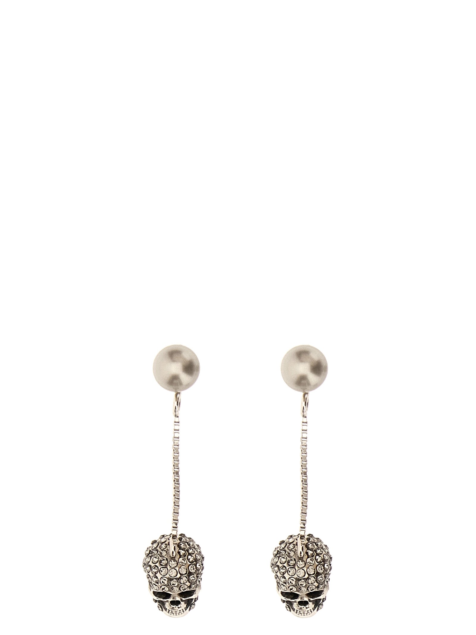 Pale gold chain earrings with pearl and 'Skull' embellished with Swarovski crystal pavé. Brass details with pale gold finish. ITEM CANNOT BE RETURNED