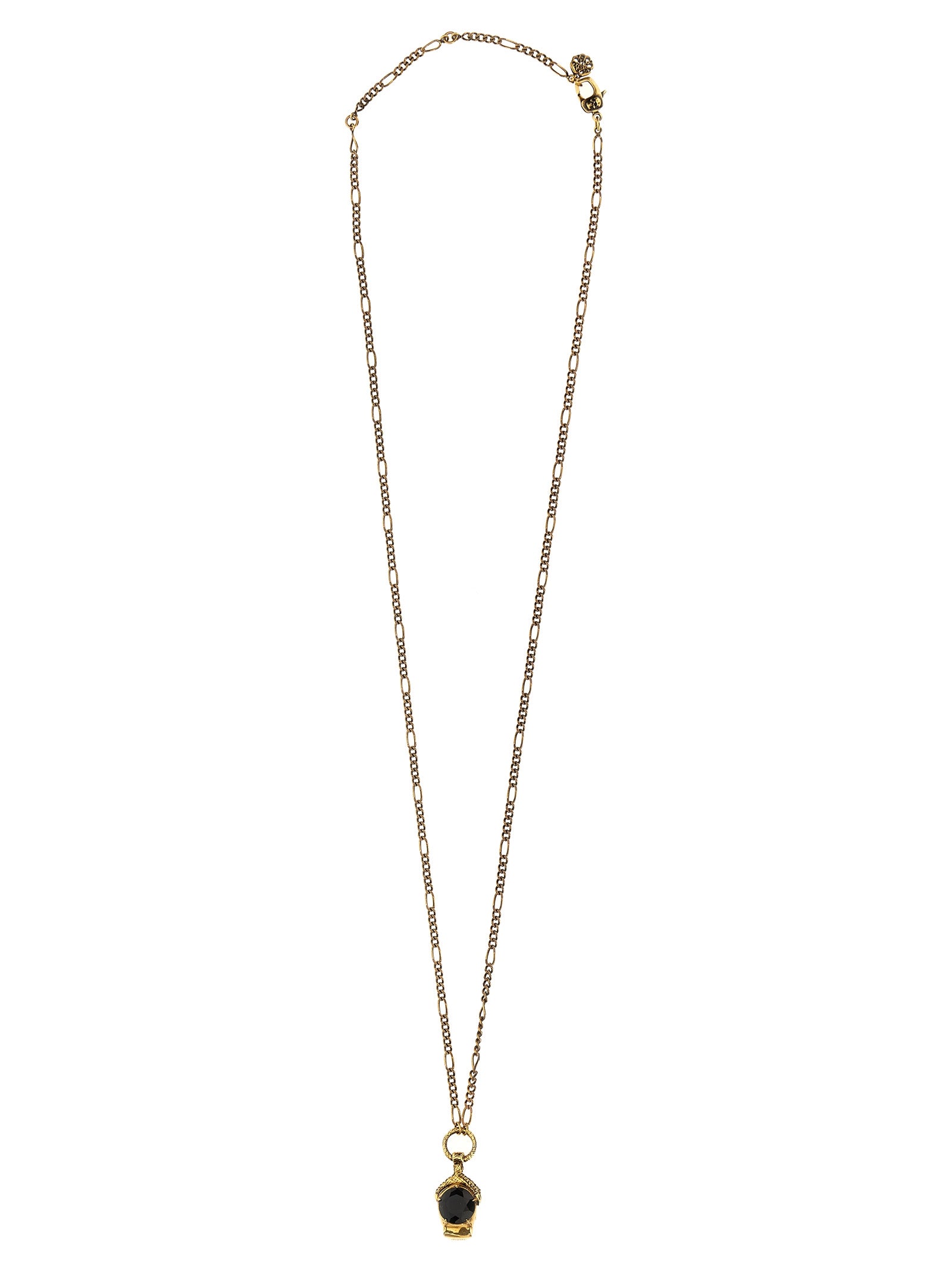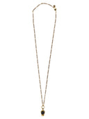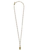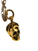 'Victorian skull' necklace in metal with antique gold finish, charms with skull decorated with Swarovski crystals.