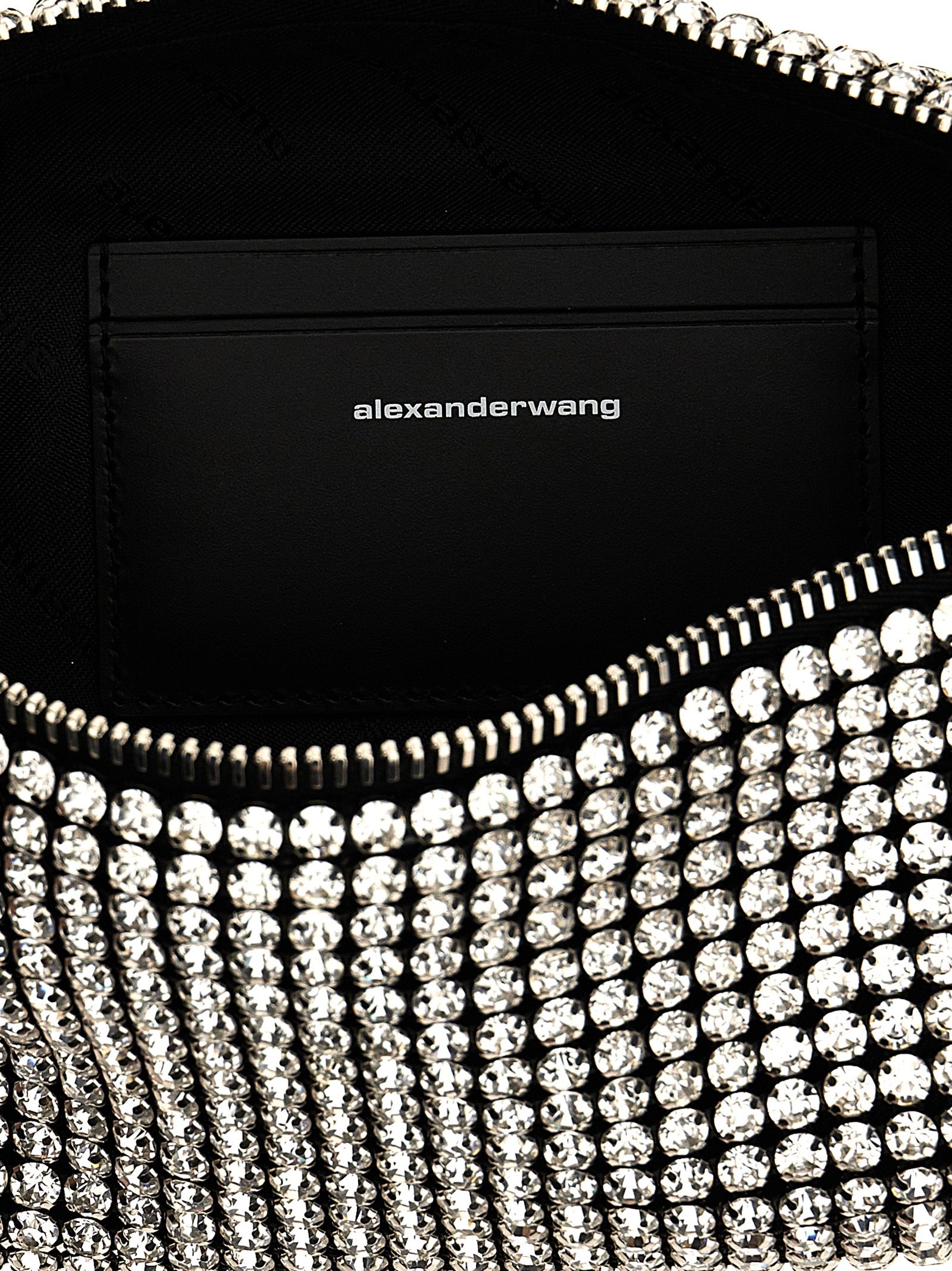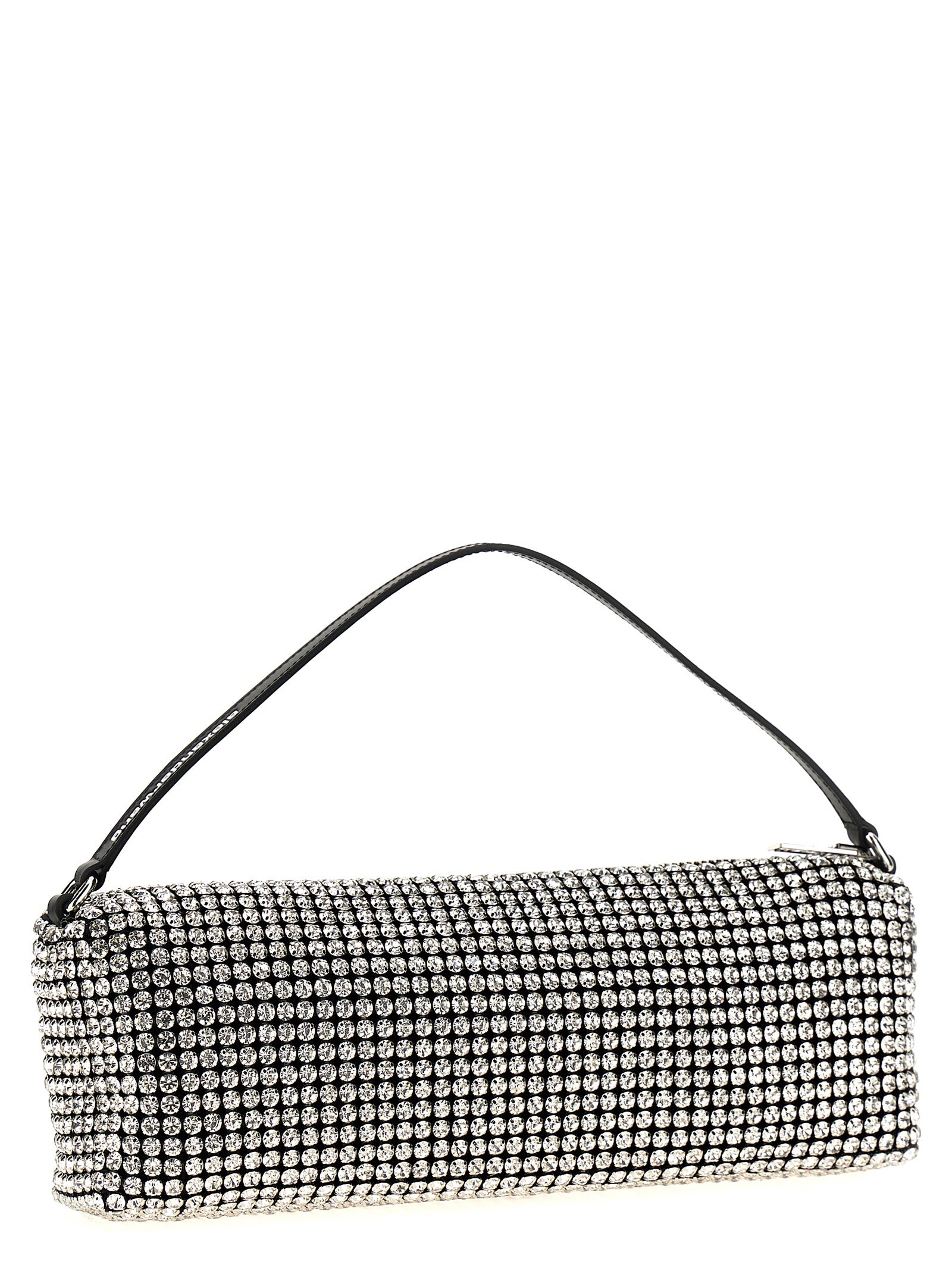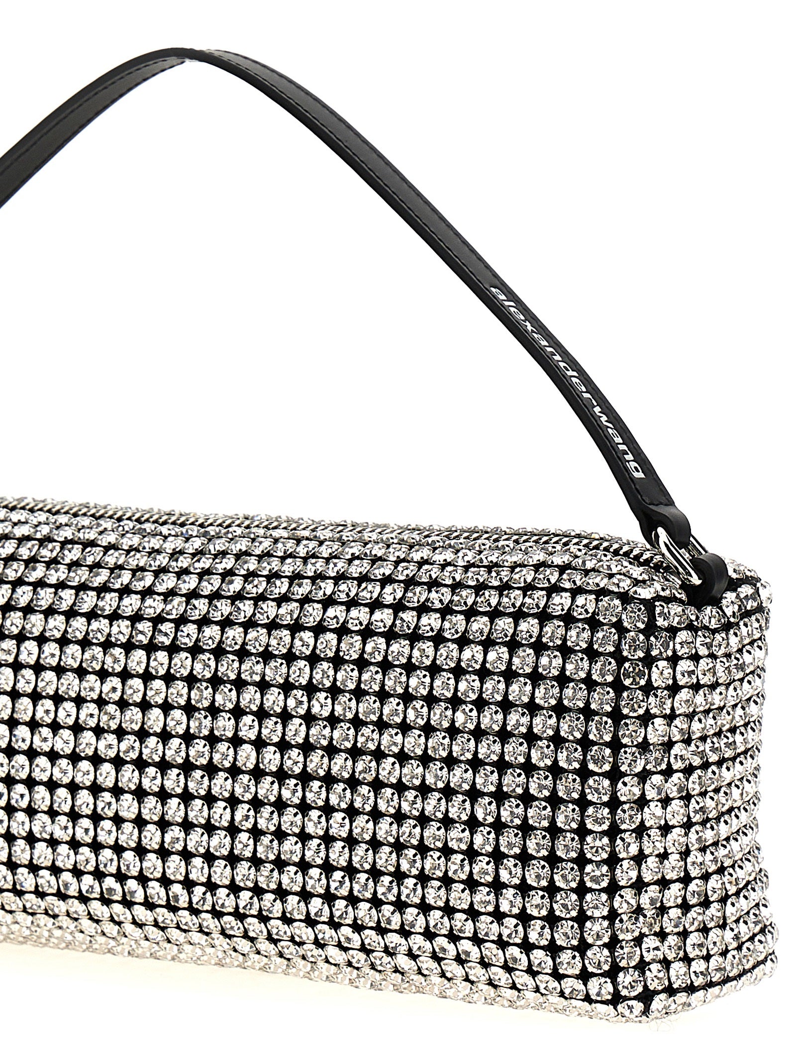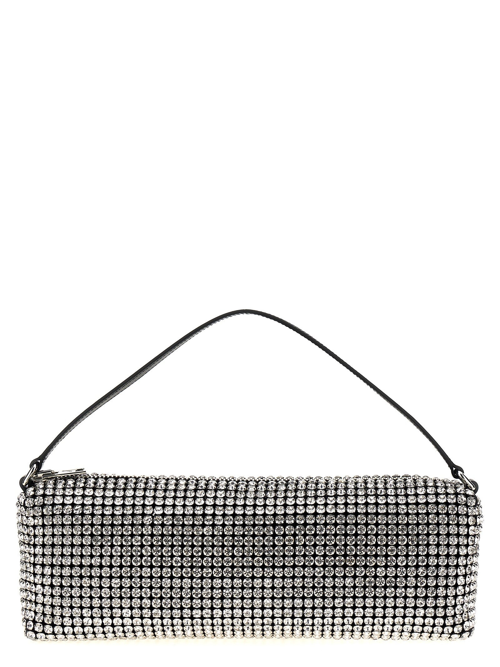 'Heiress Flex' handbag in fabric with all-over crystals, leather handle with logo print, zip closure.