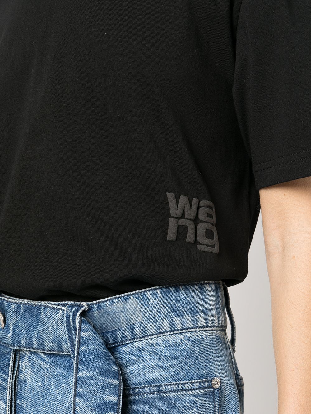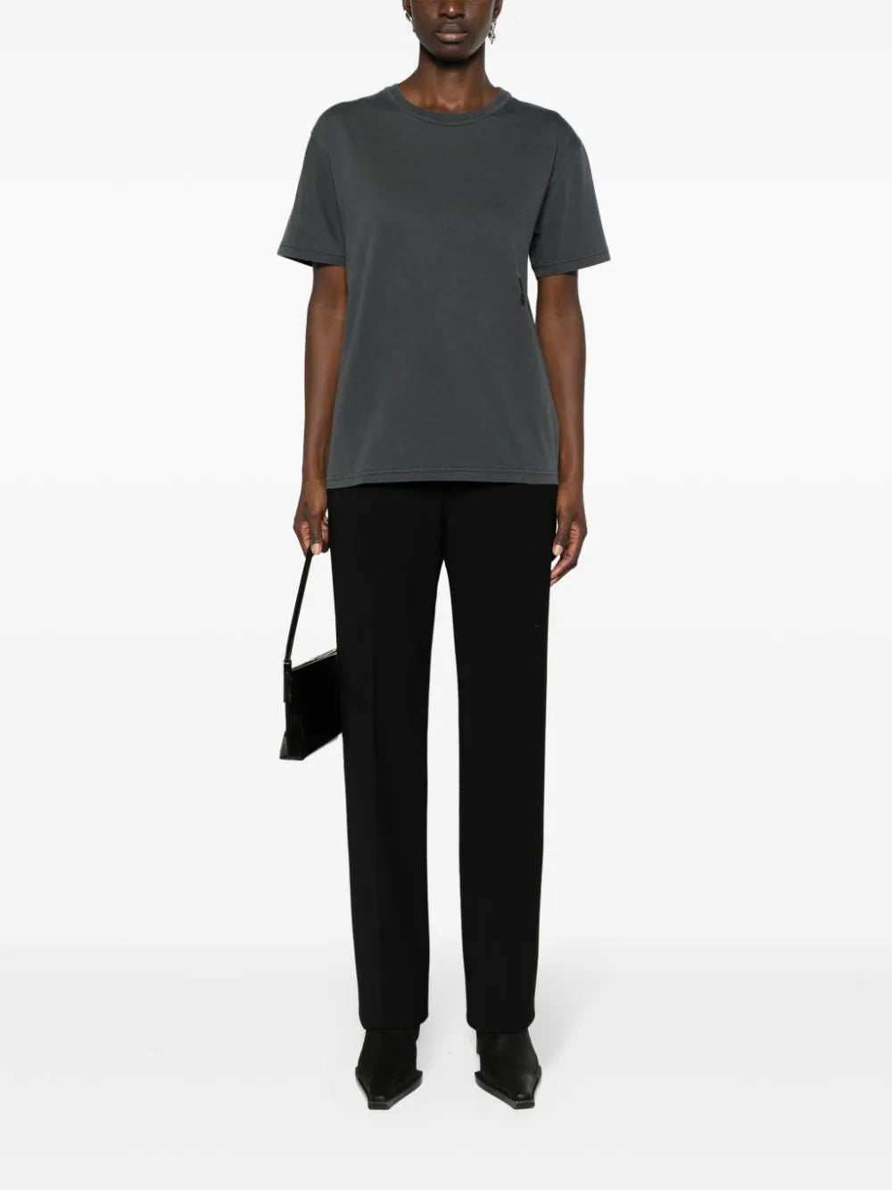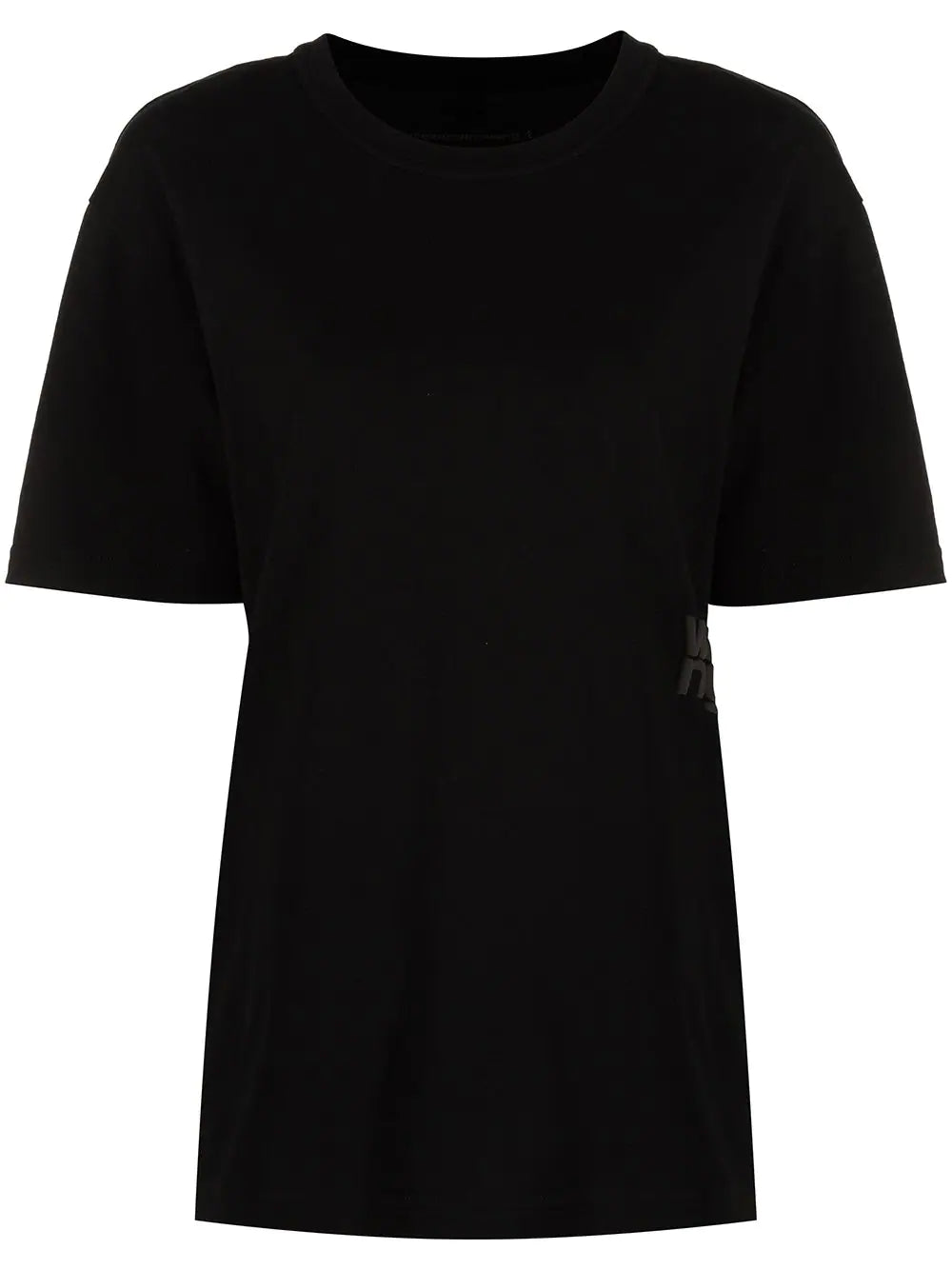 Round neck, short sleeves and straight hem. Material: Cotton. Black colour.