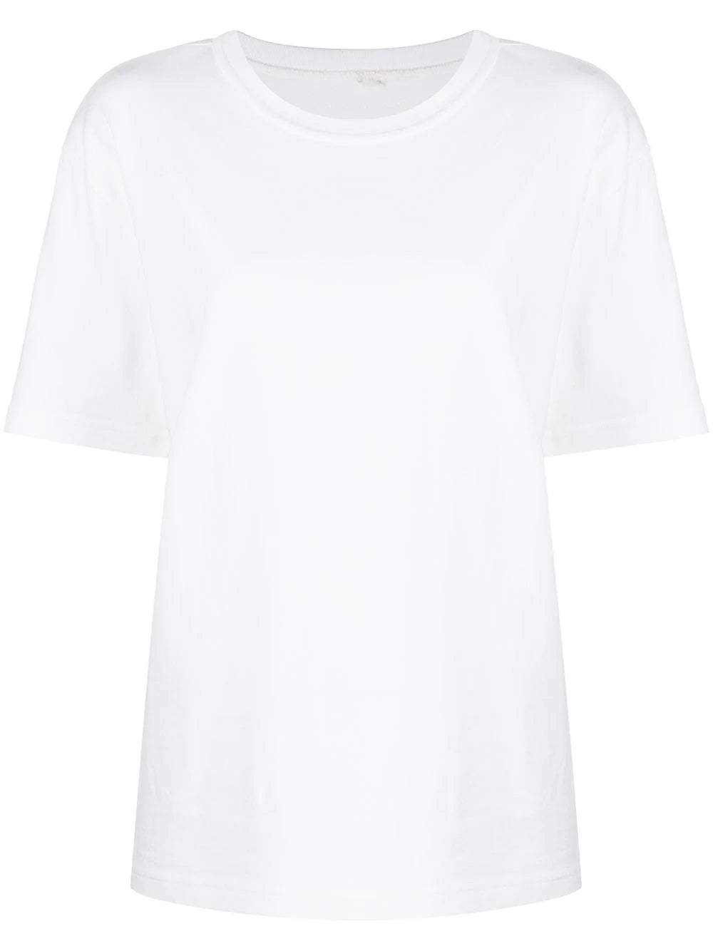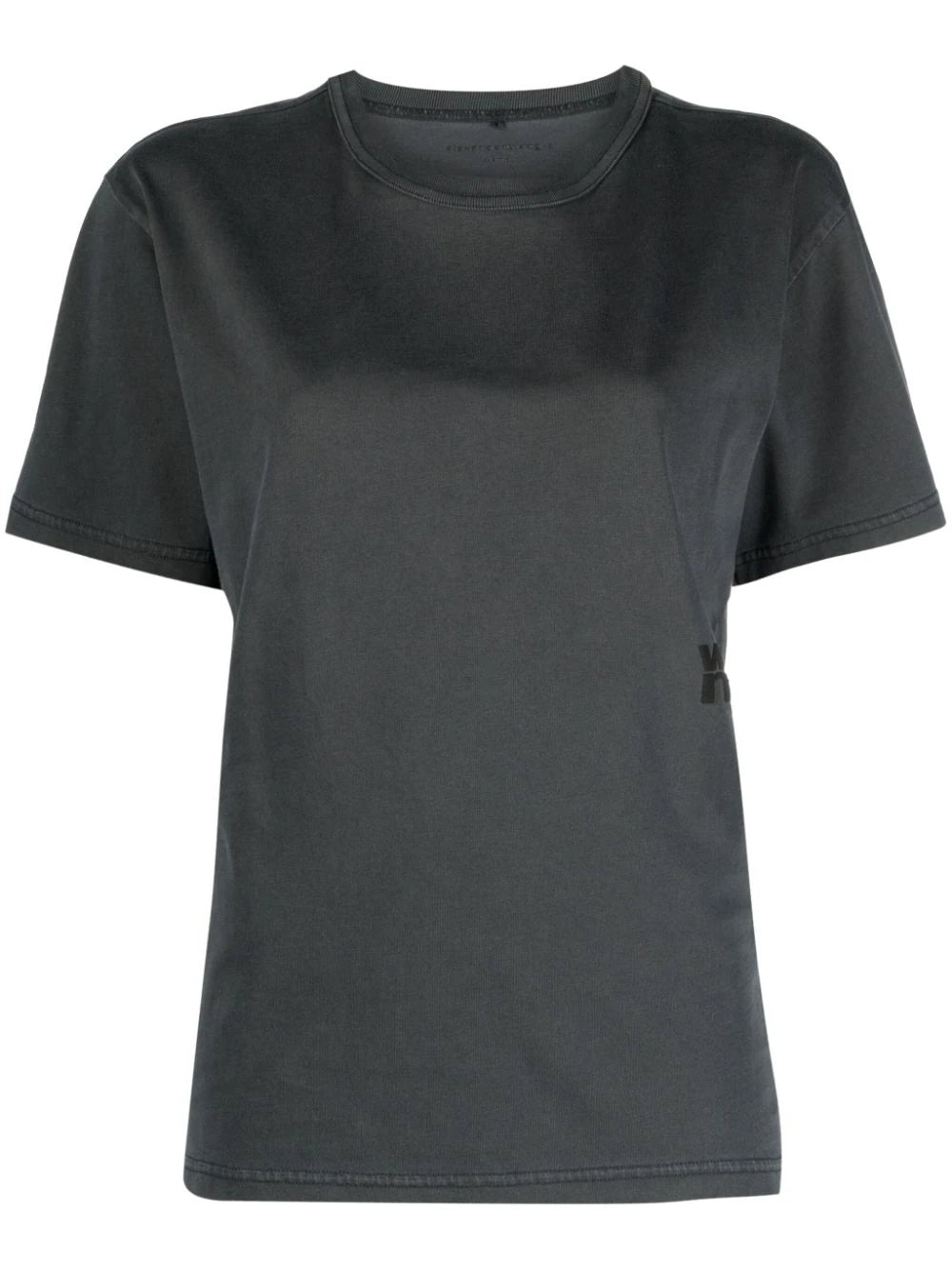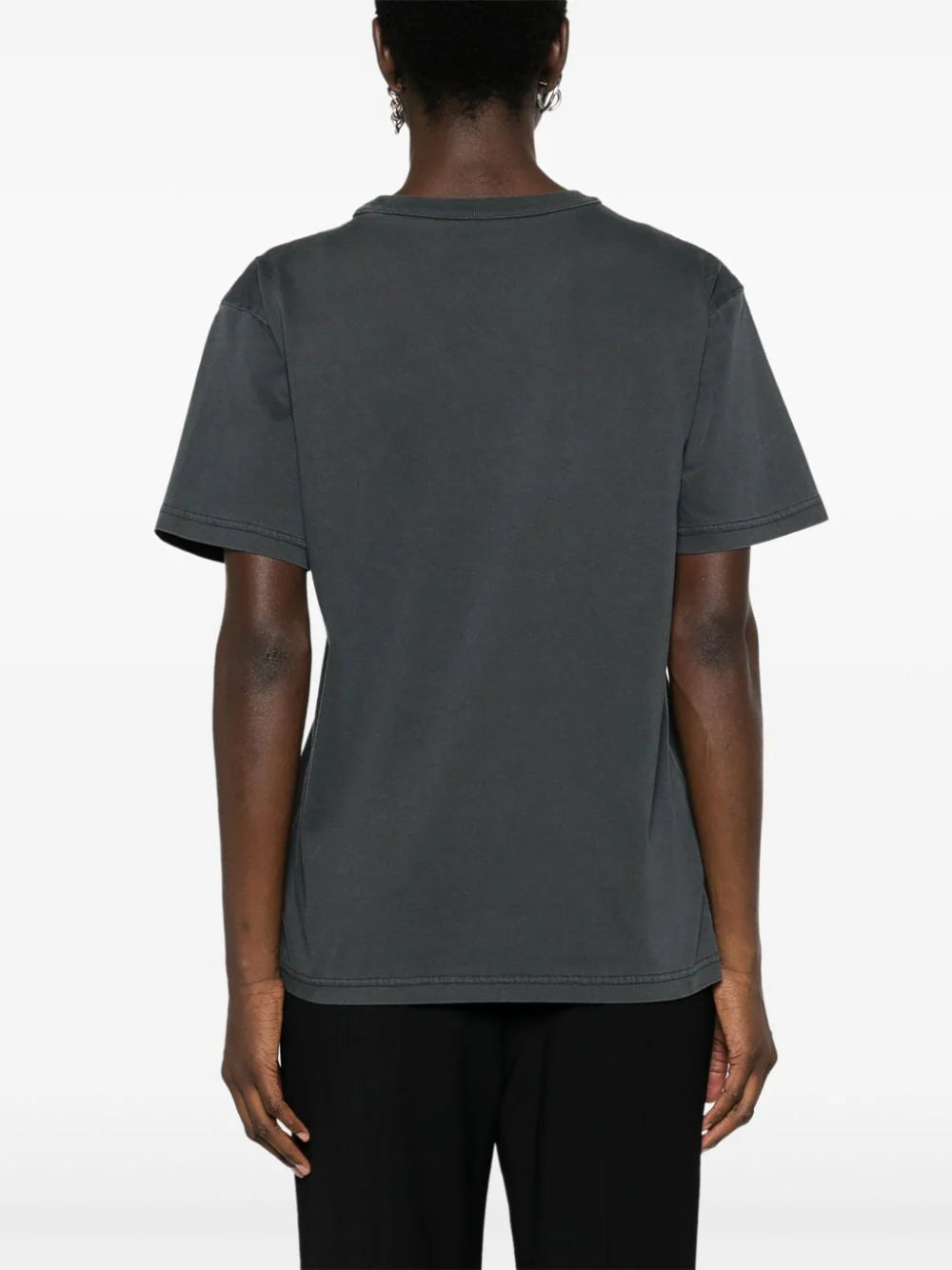 Round neck, short sleeves and straight hem. Material: Cotton. Black colour.