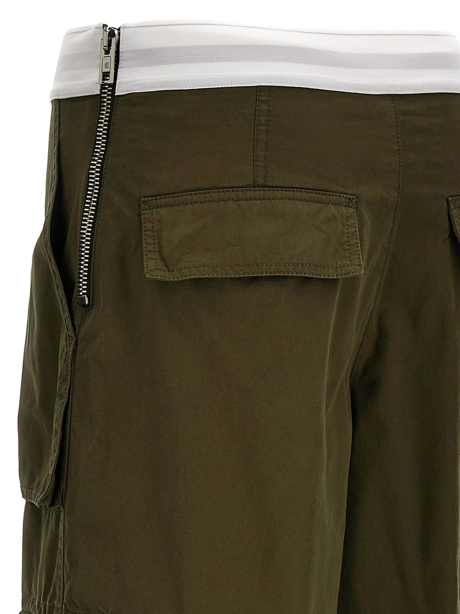 'Mid rise cargo rave' cotton pants with side pockets, zip on the side with elastic logo at the waist.