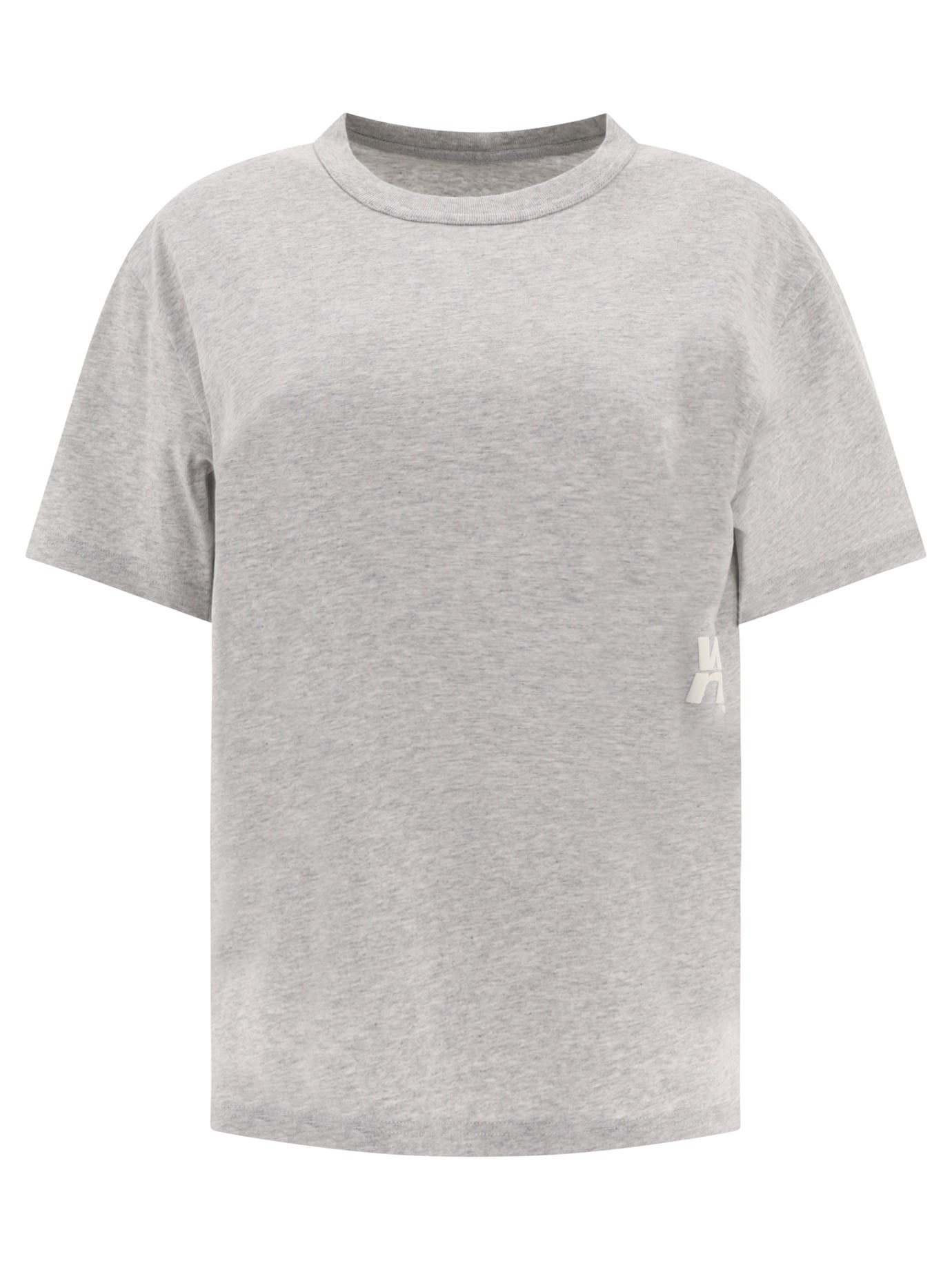Indulge in the timeless appeal of the Alexander Wang logo T-shirt, a timeless piece dedicated to women who love to stand out. Made of gray structured jersey, this T-shirt combines comfort and style with its contemporary design, enhanced by a patent leather logo embossed on the left side.