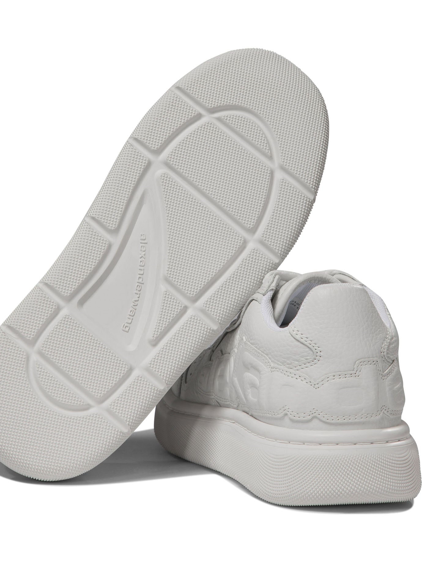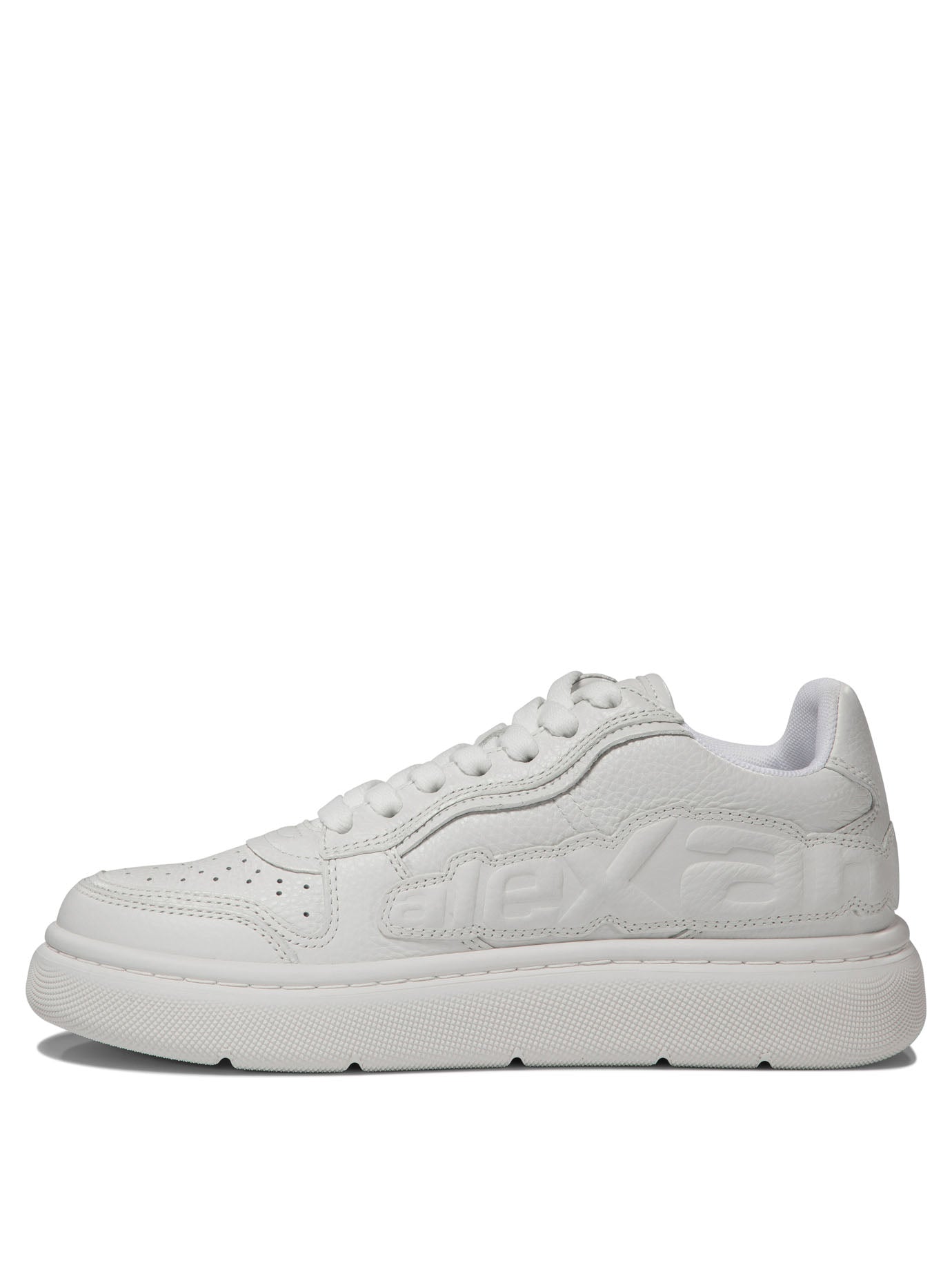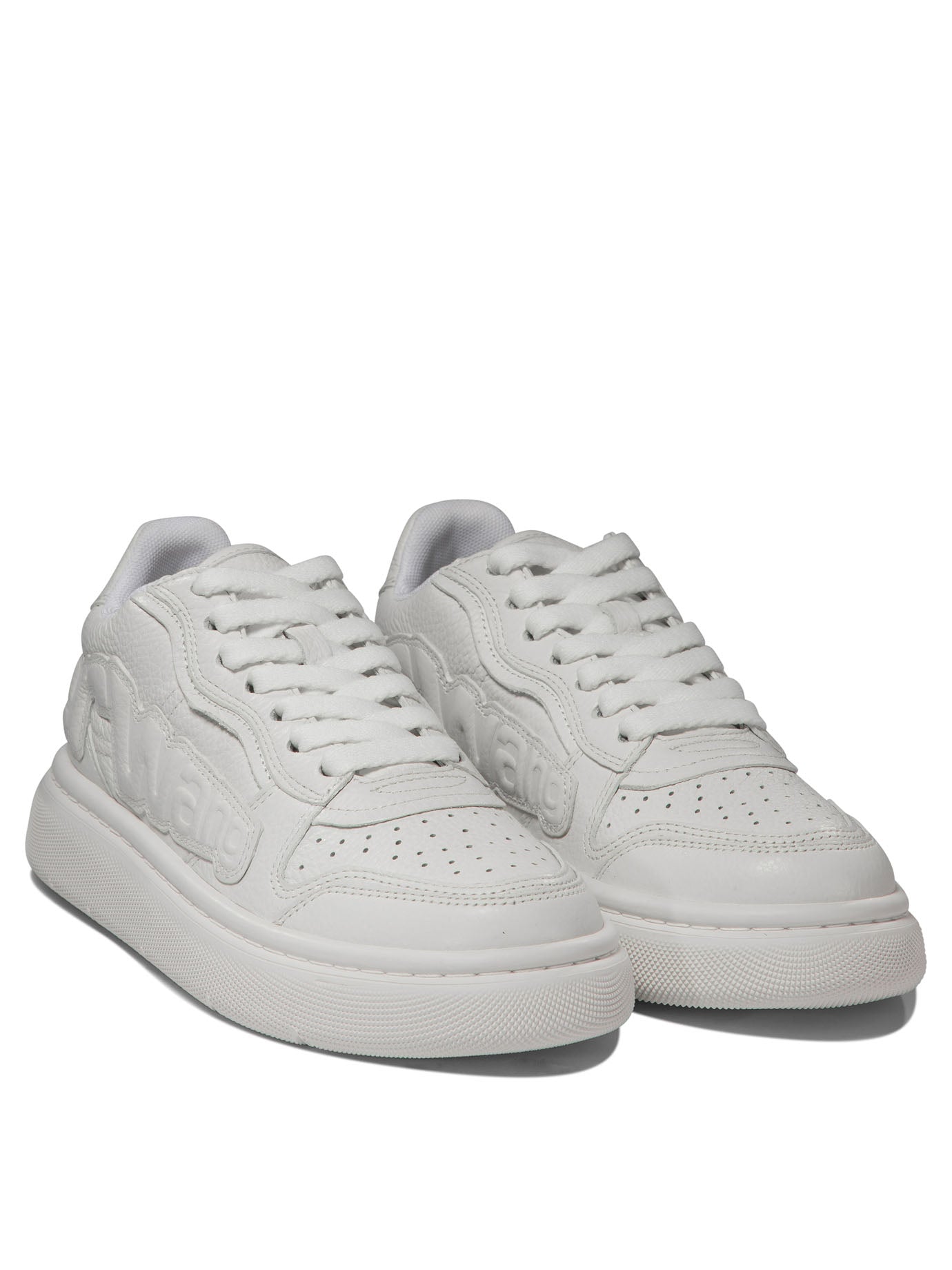 Alexander Wang's white grained leather logo-embossed sneakers represent a perfect balance between style and functionality. They are created for the modern woman who wants to express uniqueness and originality through her outfit.