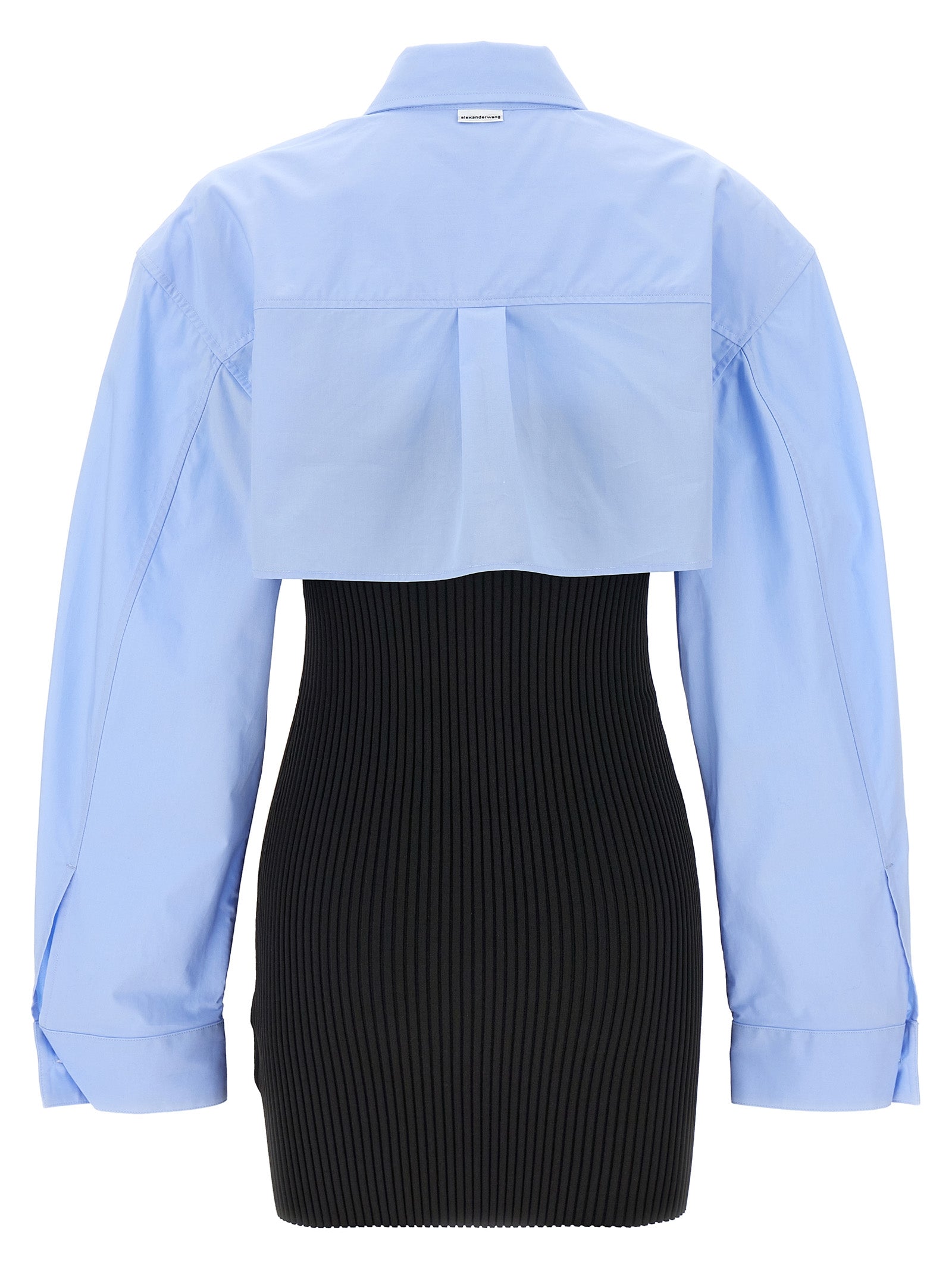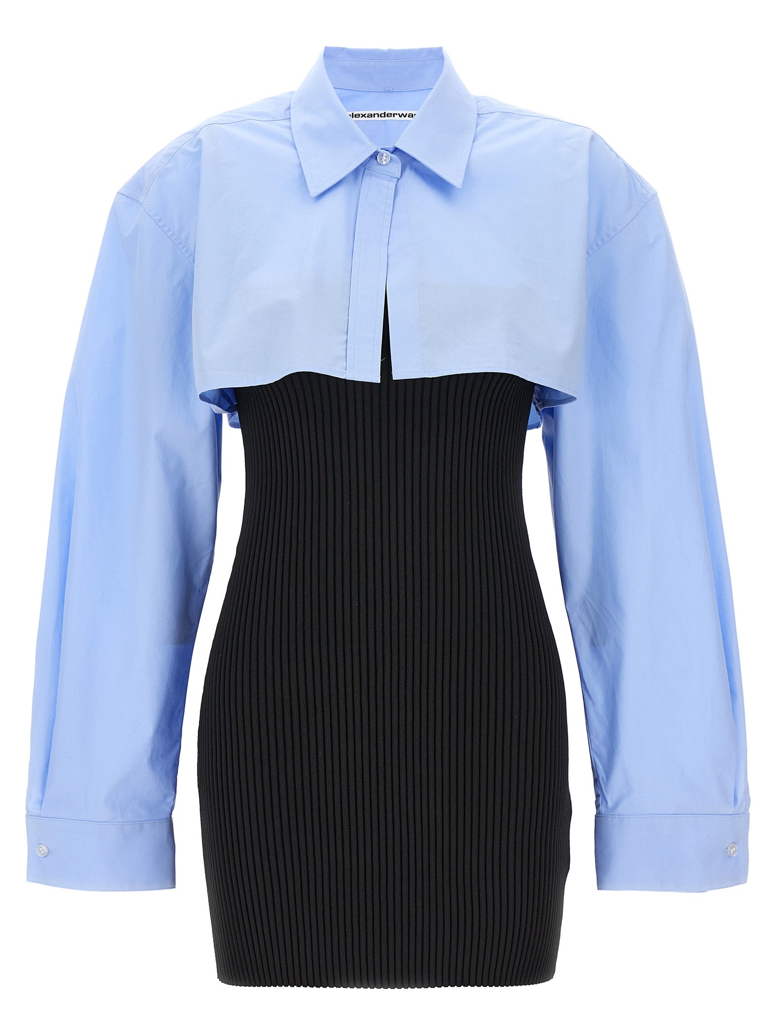 Twin set consisting of ribbed dress with thin straps and cropped shirt with long sleeves and cuffs.