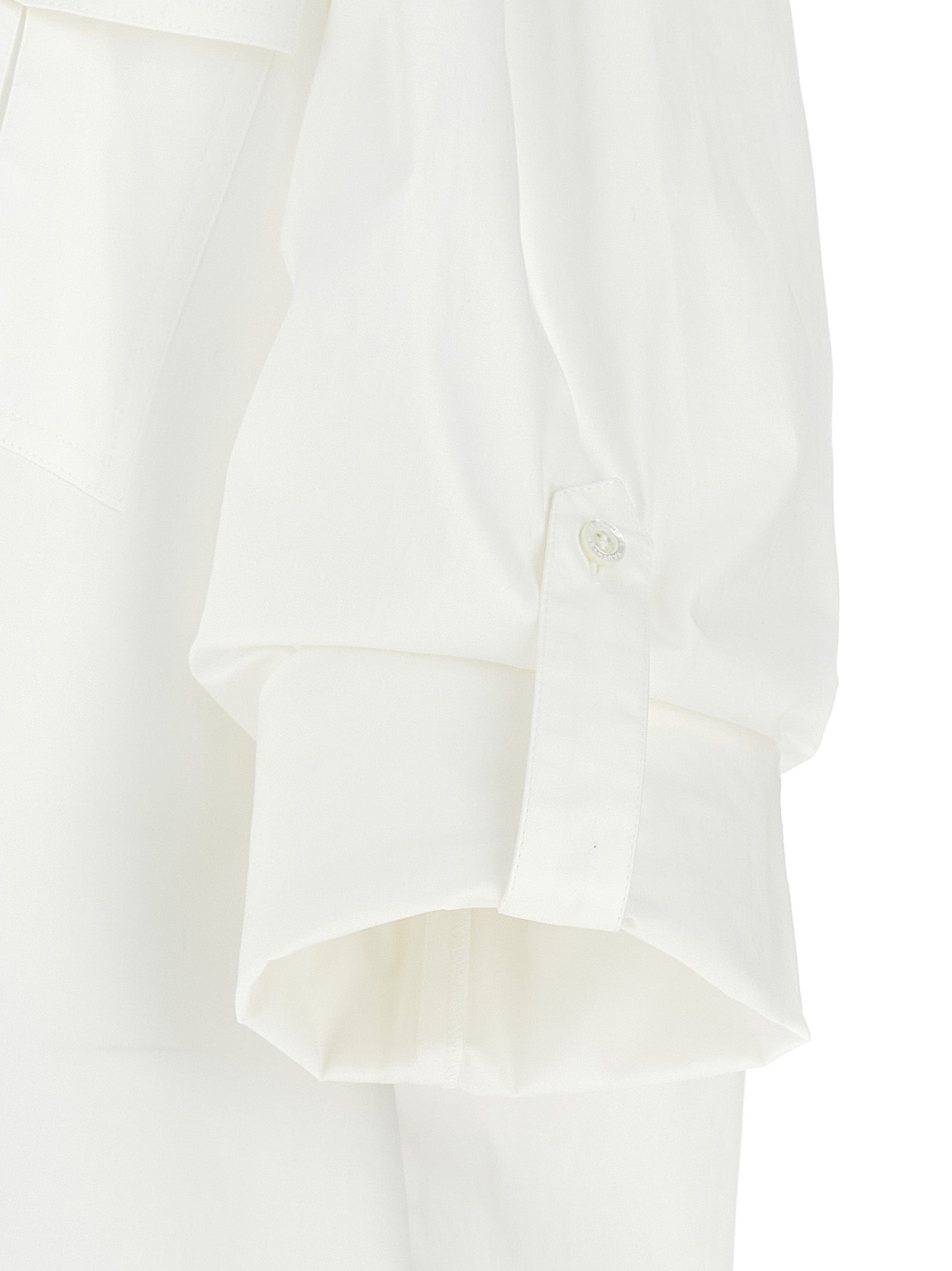 Cotton shirt with front pockets, a button closure, and long cuffed sleeves.