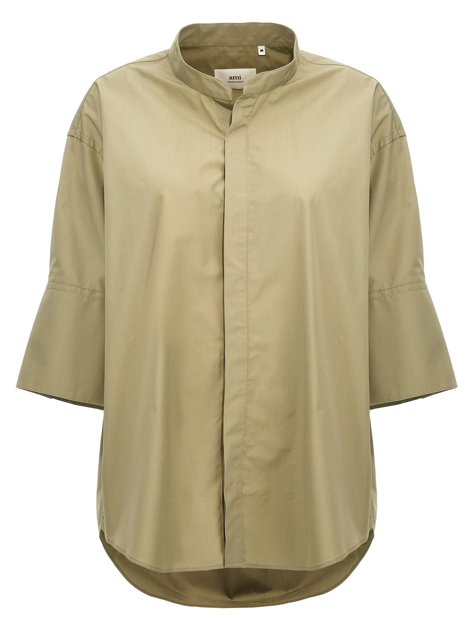 Cotton shirt with 'Mandarin' collar, 3/4 wide sleeves with cuffs.