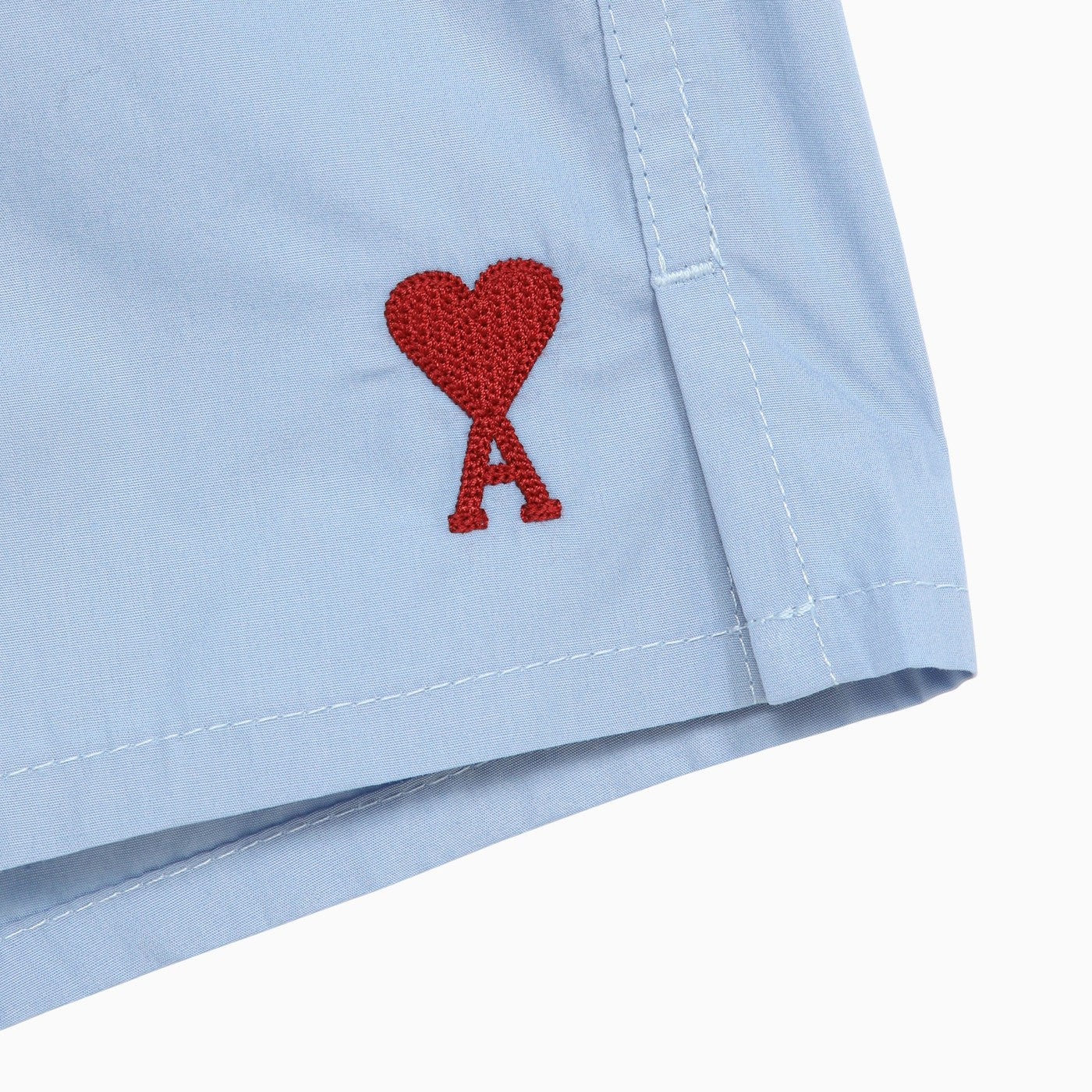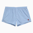 Light blue cotton Ami Paris short, featuring elasticated waist, red Ami De Coeur embroidery on the front and side slits.