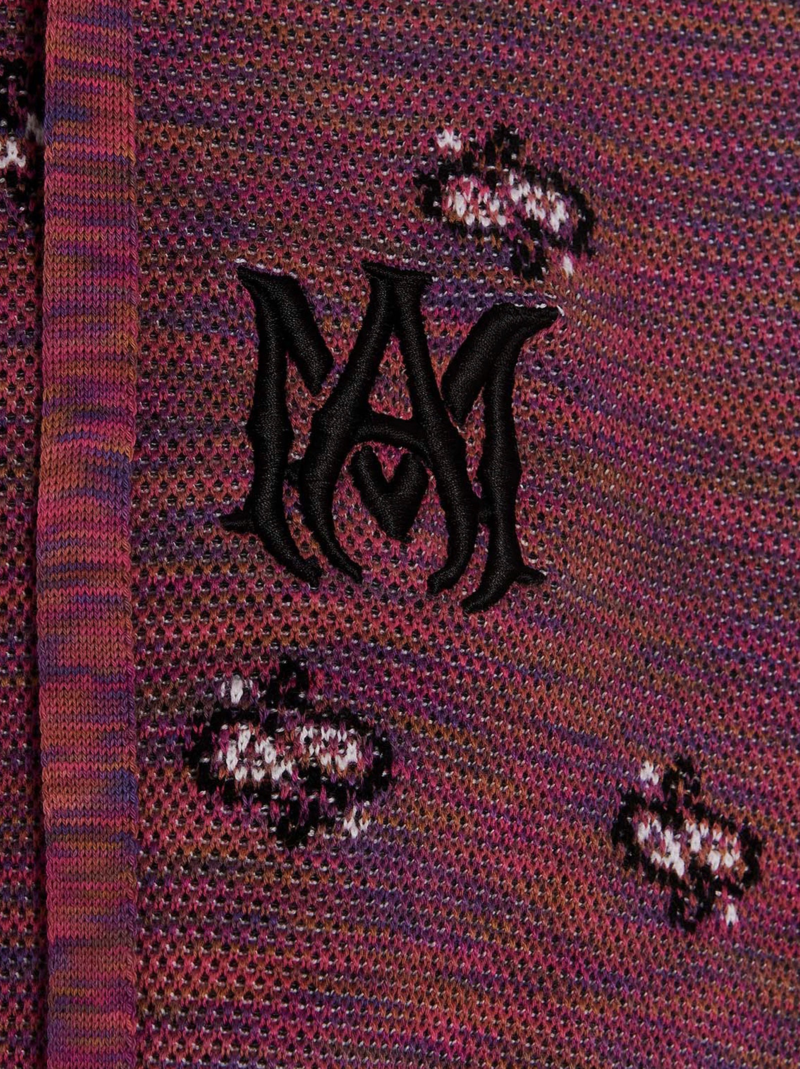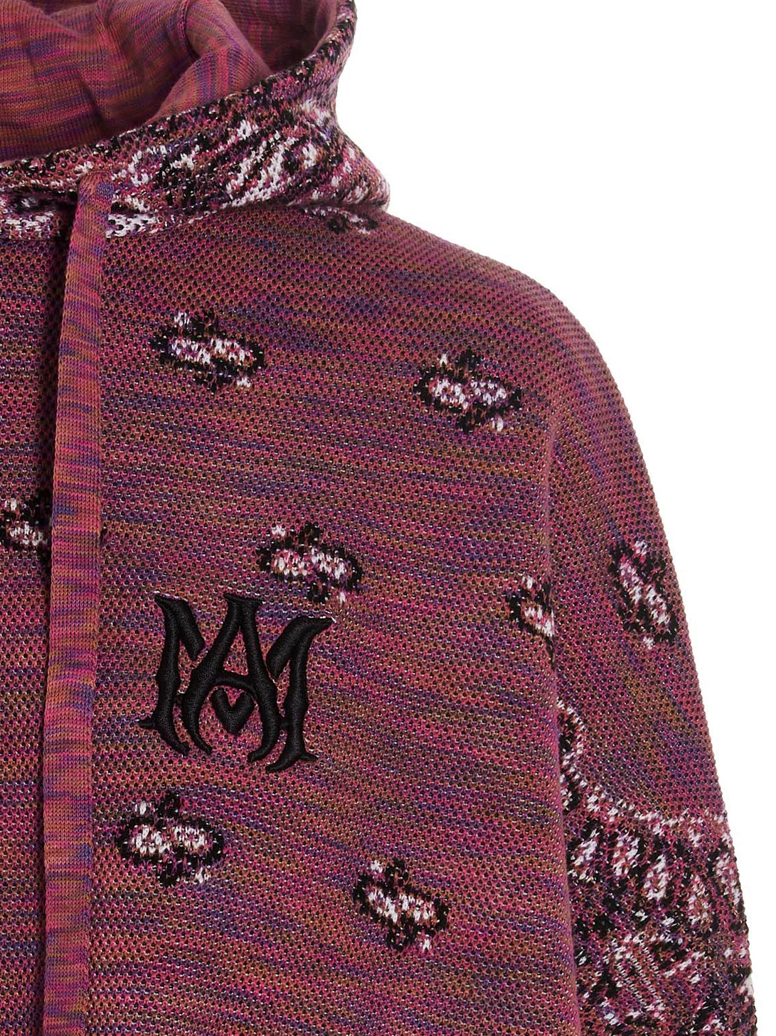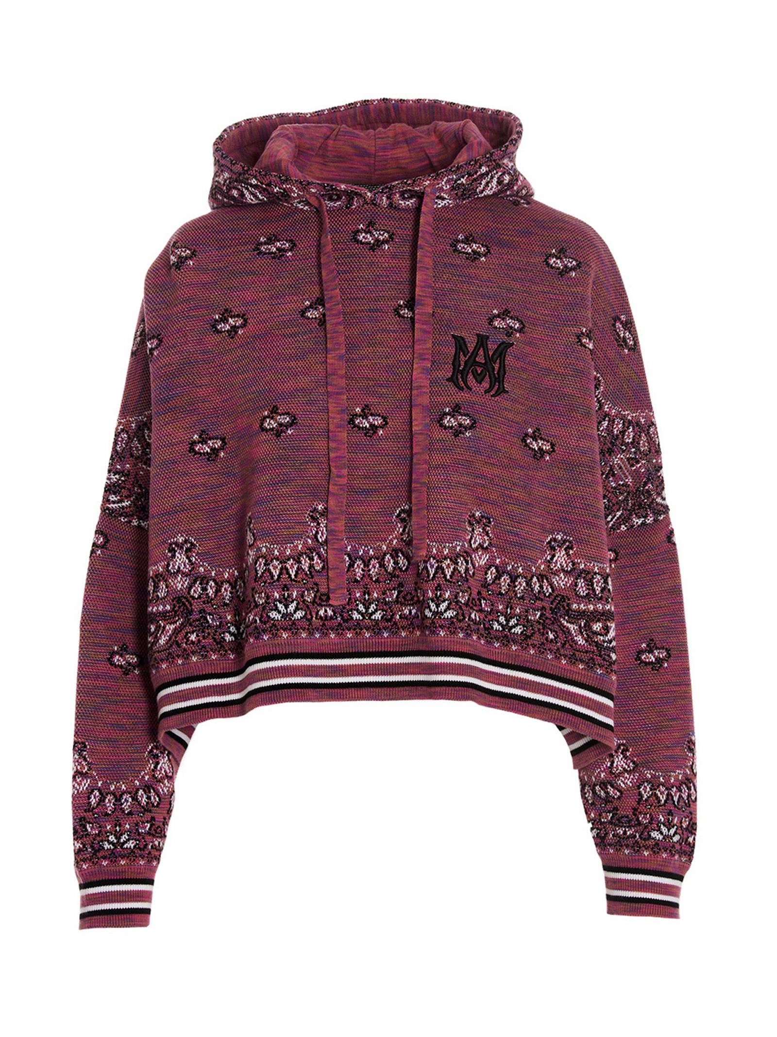 'Space Dye Bandana’ cotton knit hoodie with an all over pattern, front logo embroidery, long sleeves, and a cropped style.