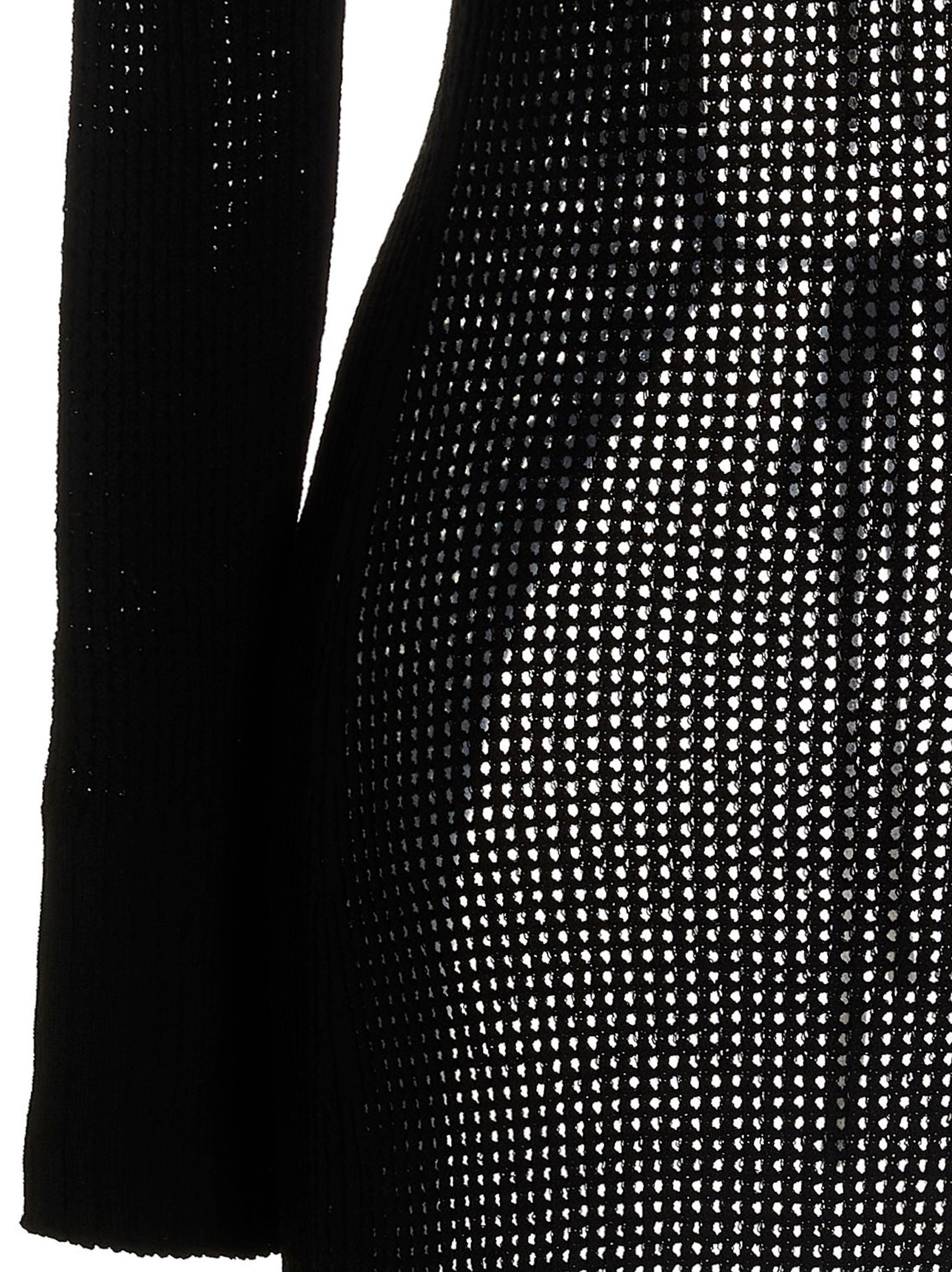 Long openwork knit cardigan with front lacing to tie, long sleeves and cut out details at the back.
