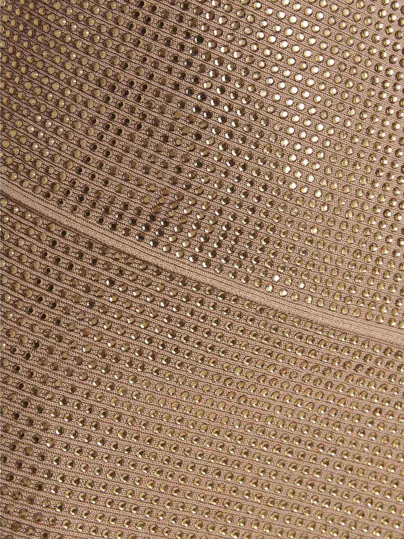 One shoulder knit dress withll-over sequin appliqués, zip closure, cut-out detail and an asymmetric hem.ymmetrical hemline.