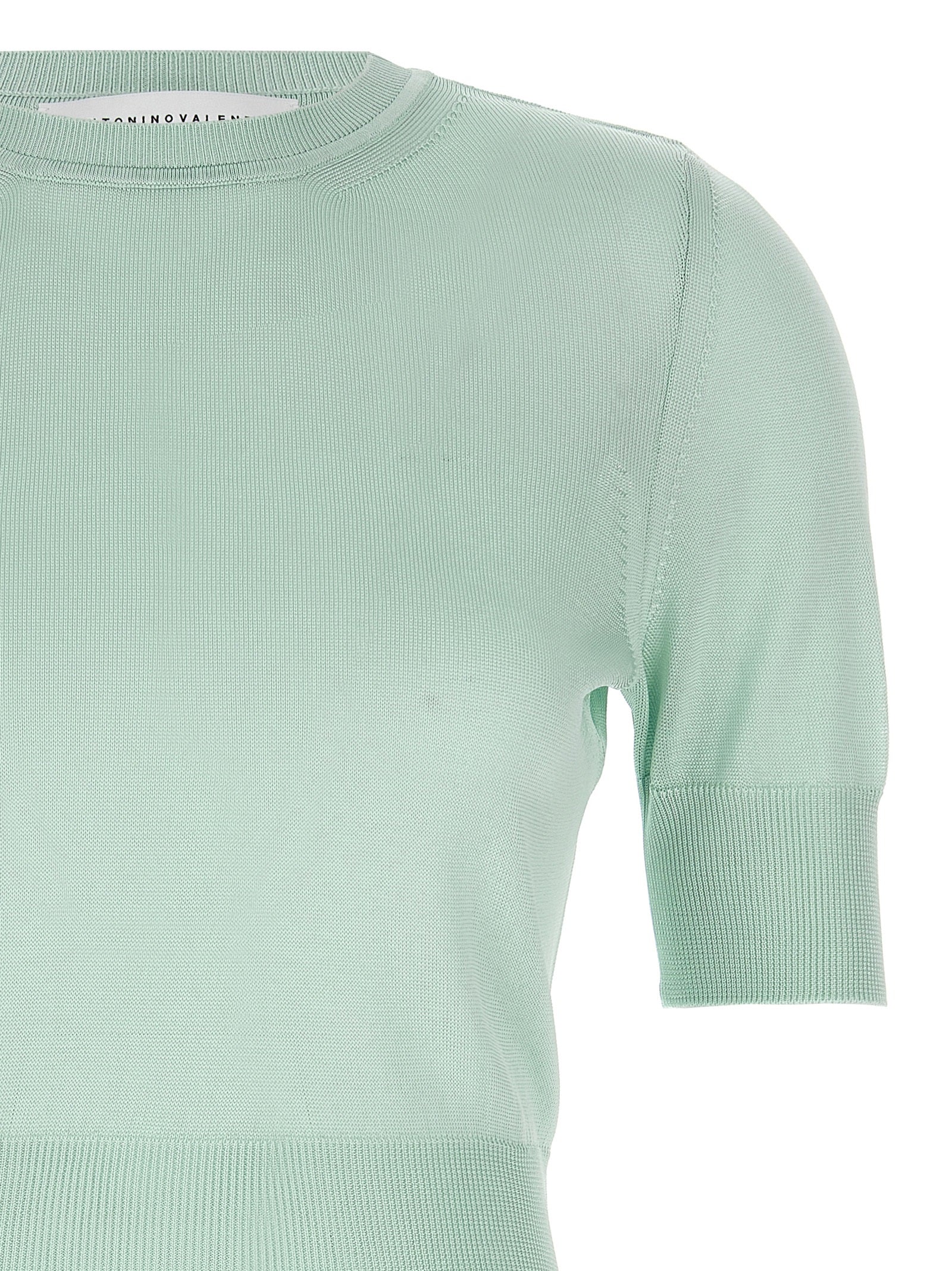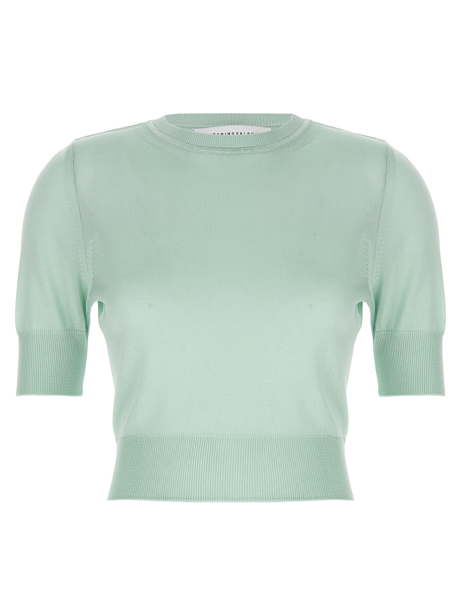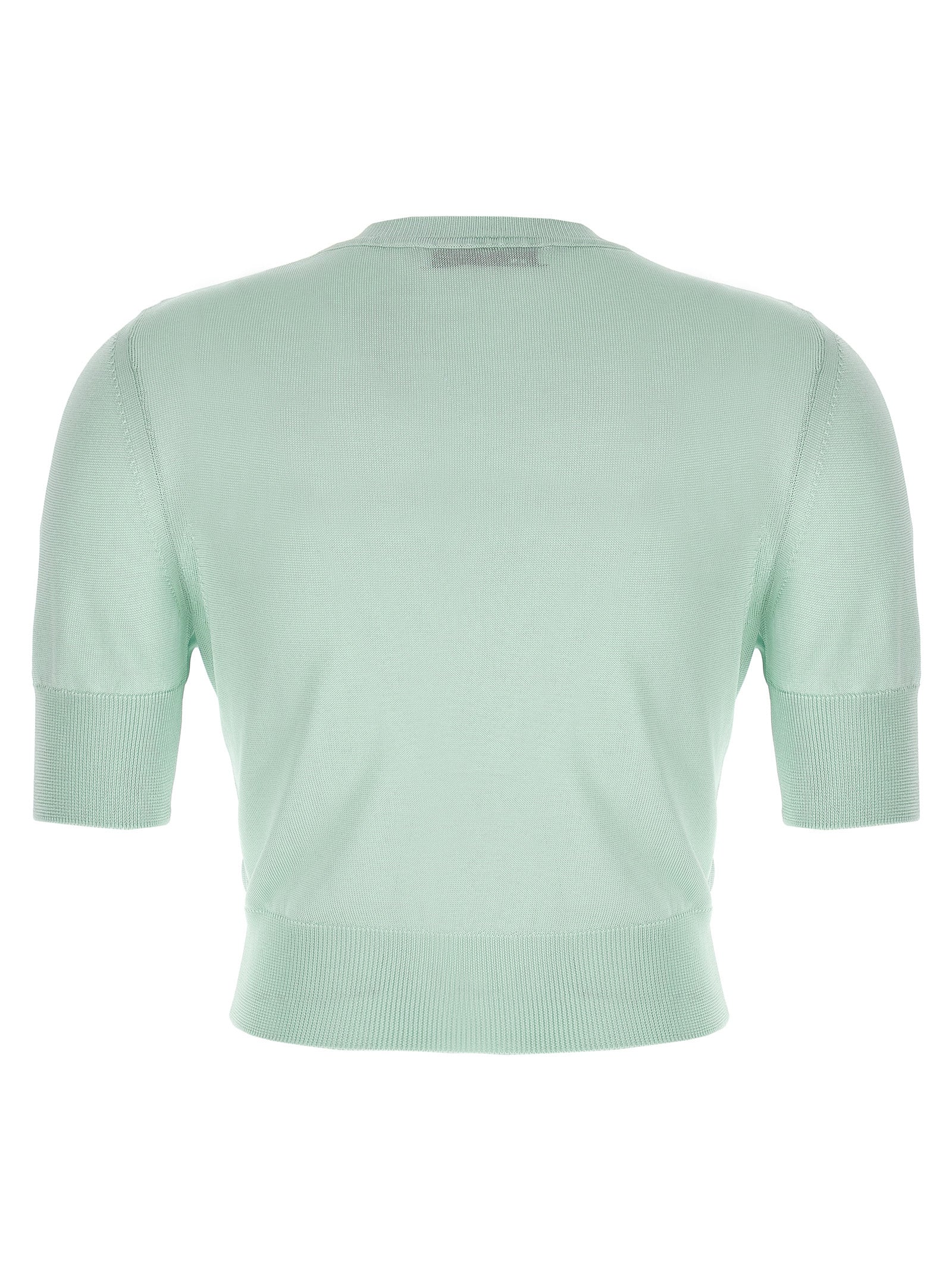 'Leonora Carrington' viscose crop sweater with crew neck, short sleeves.