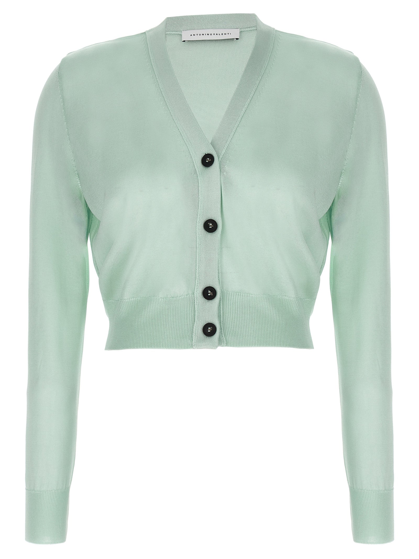 'Sonia Delaunay' viscose crop cardigan with button closure, long cuffed sleeves.