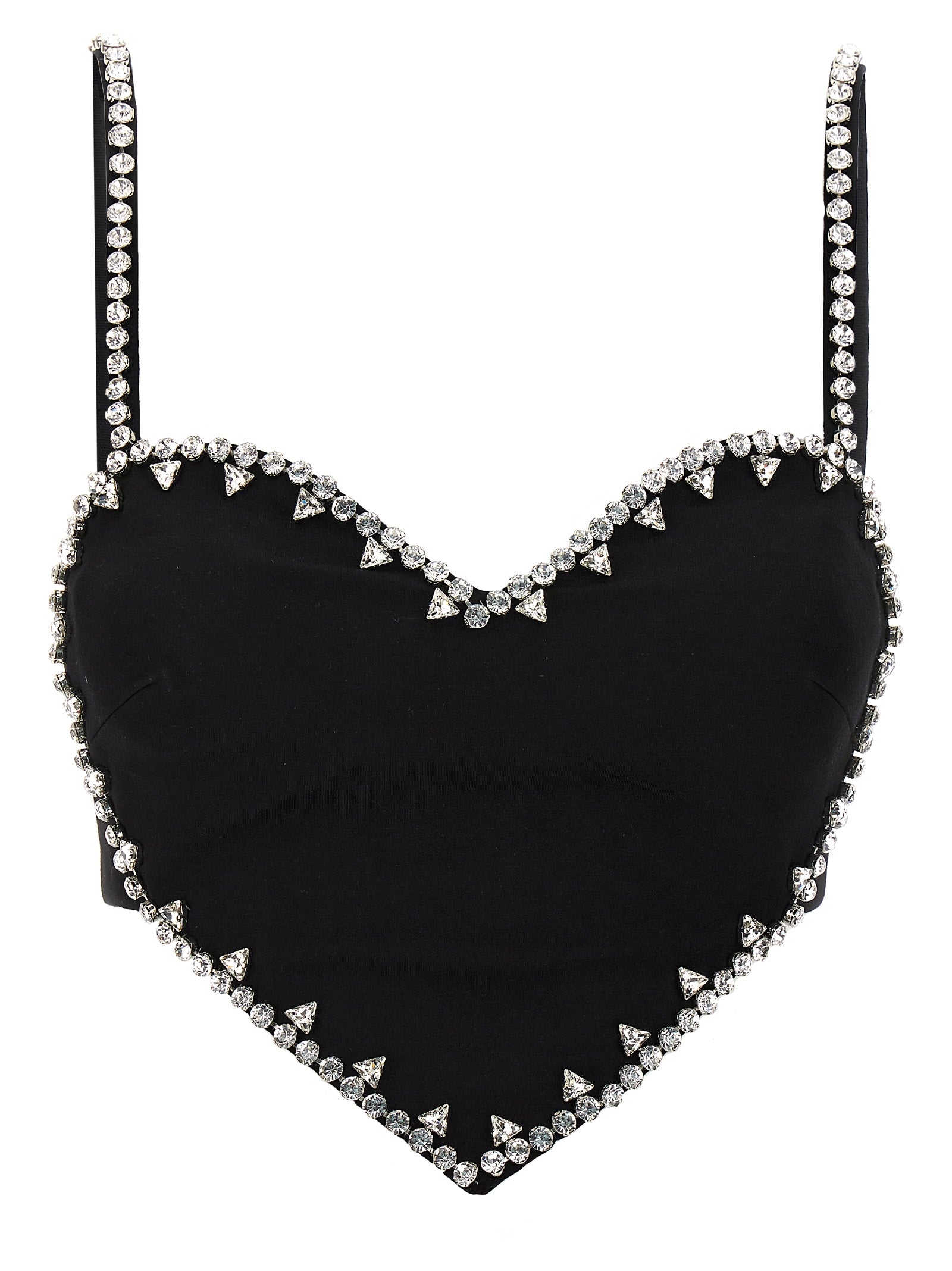 'Crystal Trim Heart' top with crystal application, thin and adjustable straps, back hook closure.