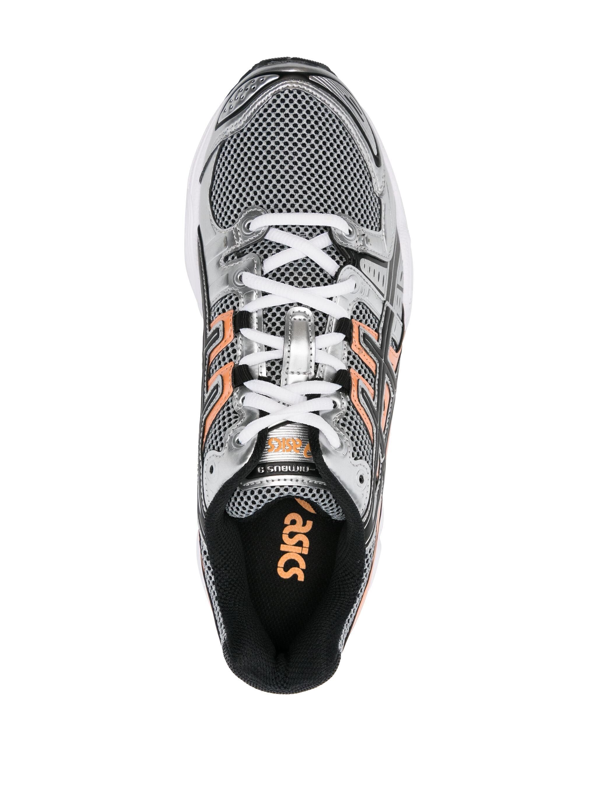 Gel-Nimbus 9 sneakers from ASICS featuring panelled design, mesh detailing, round toe, front lace-up fastening, branded insole, flat rubber sole and calf leather.