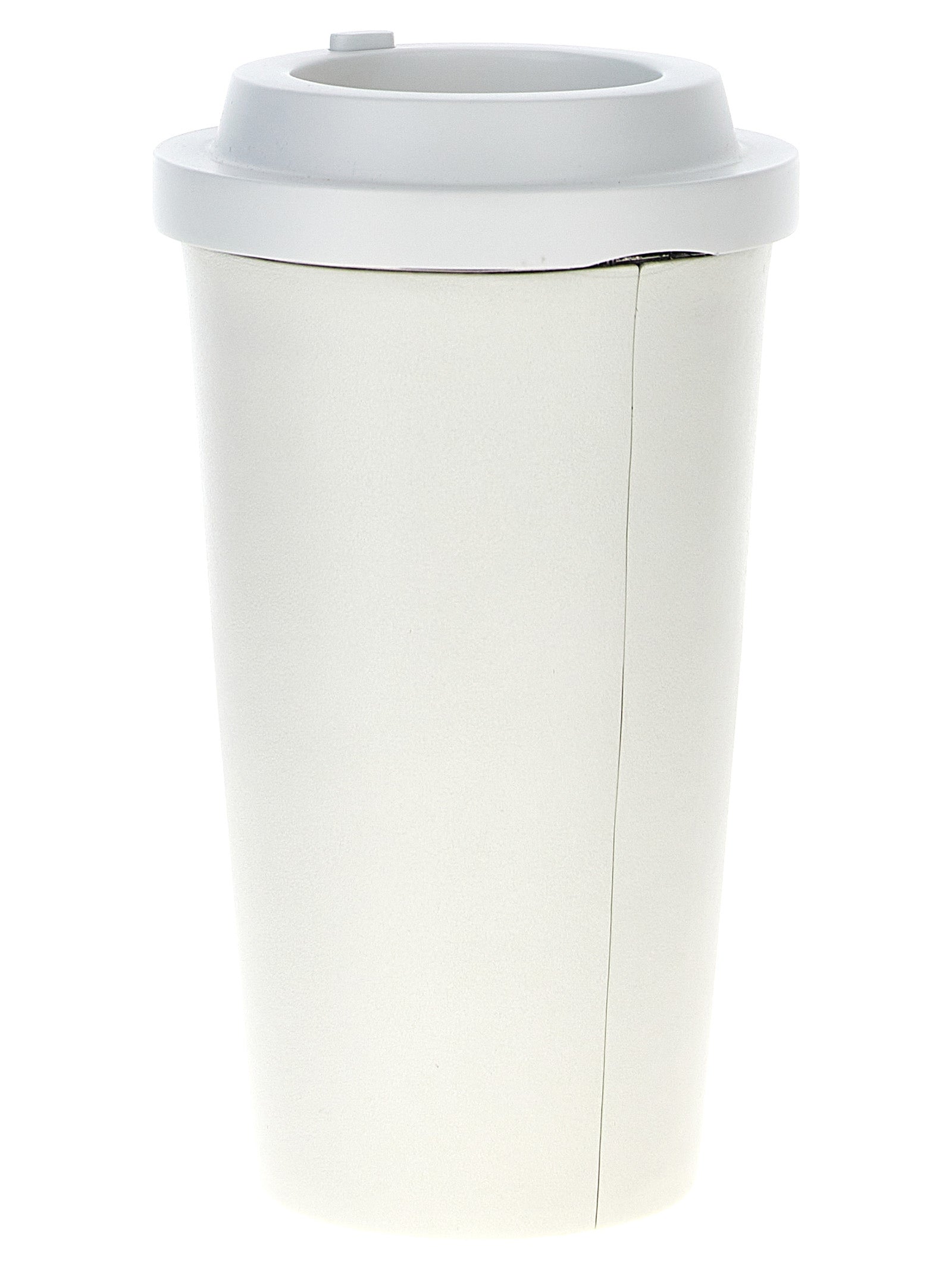 9 AM' leather clutch in the shape of a coffee cup with top click closure, front logo.