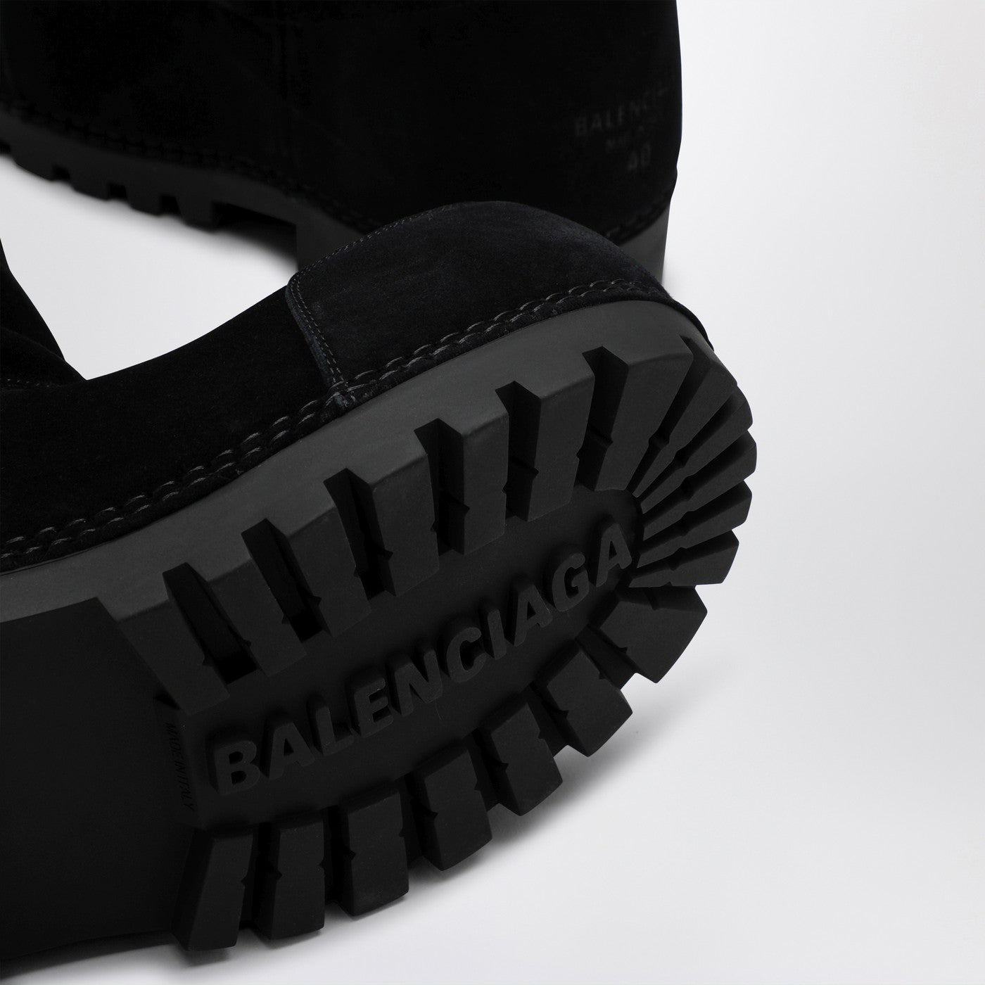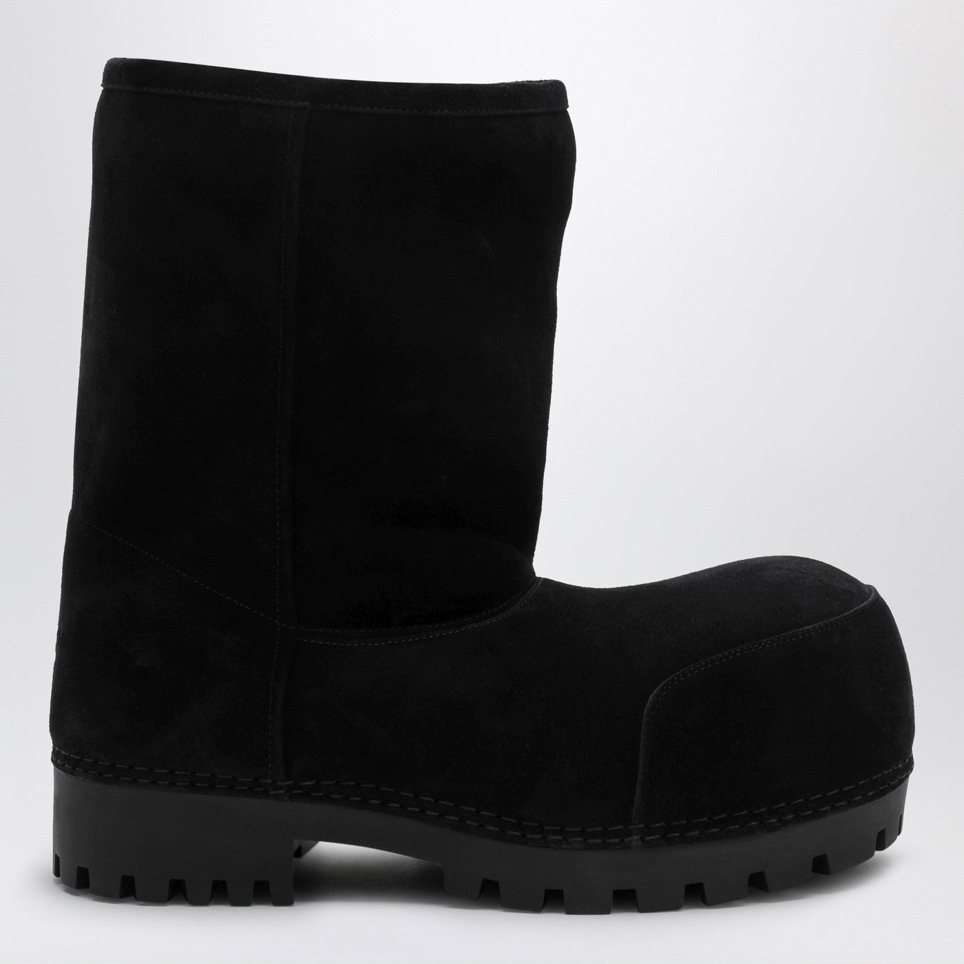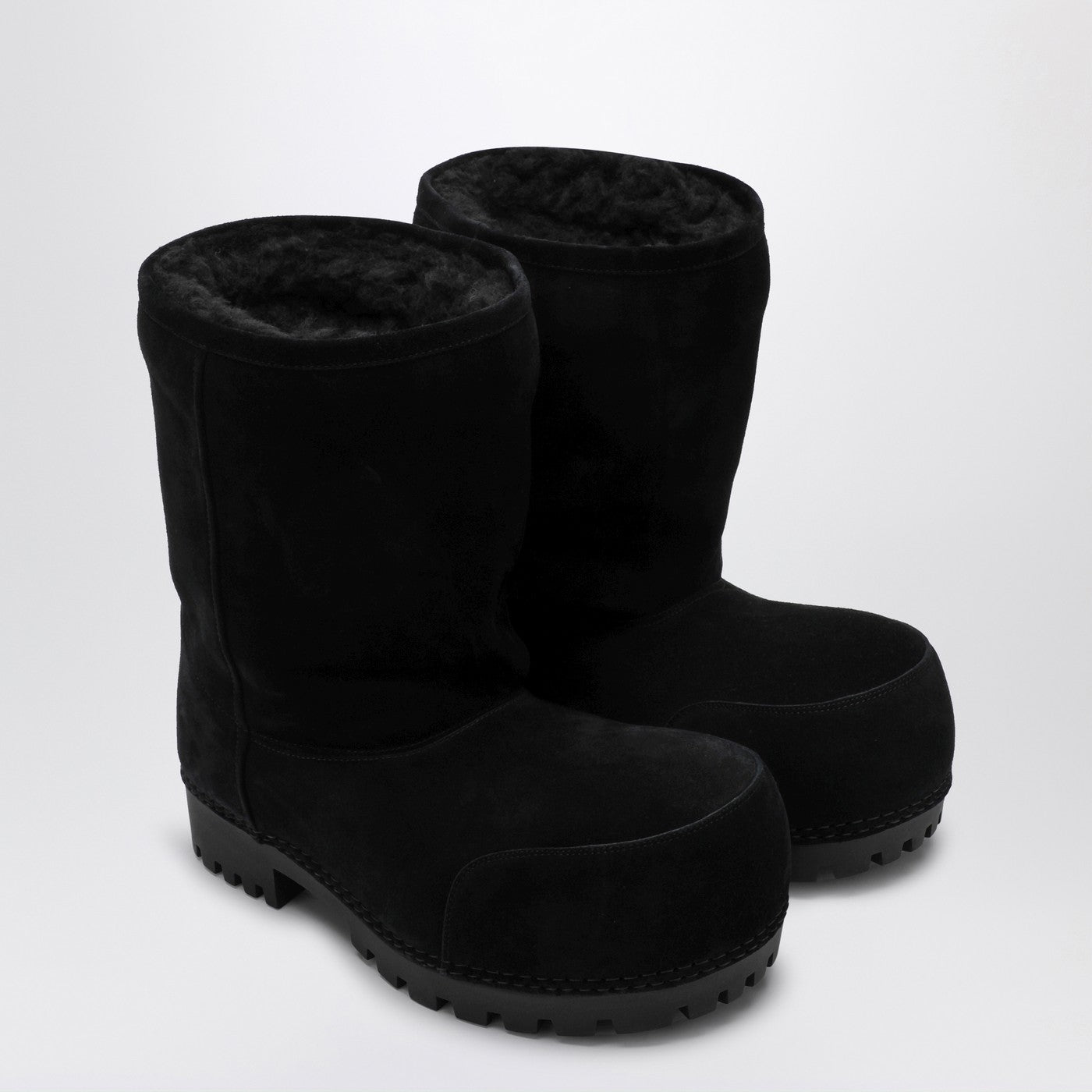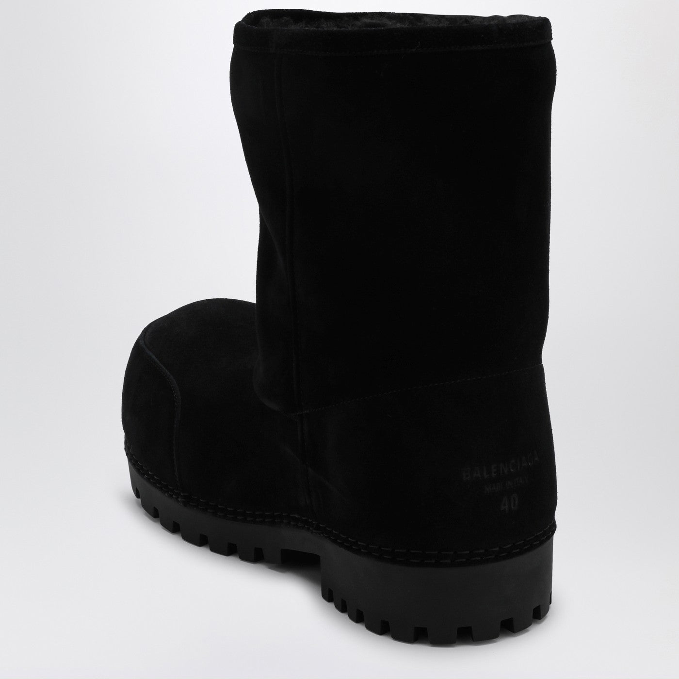 Ankle boots Balenciaga in black suede featuring an oversized round toe, an engraved logo on the back, a faux fur lining and a notched rubber sole.