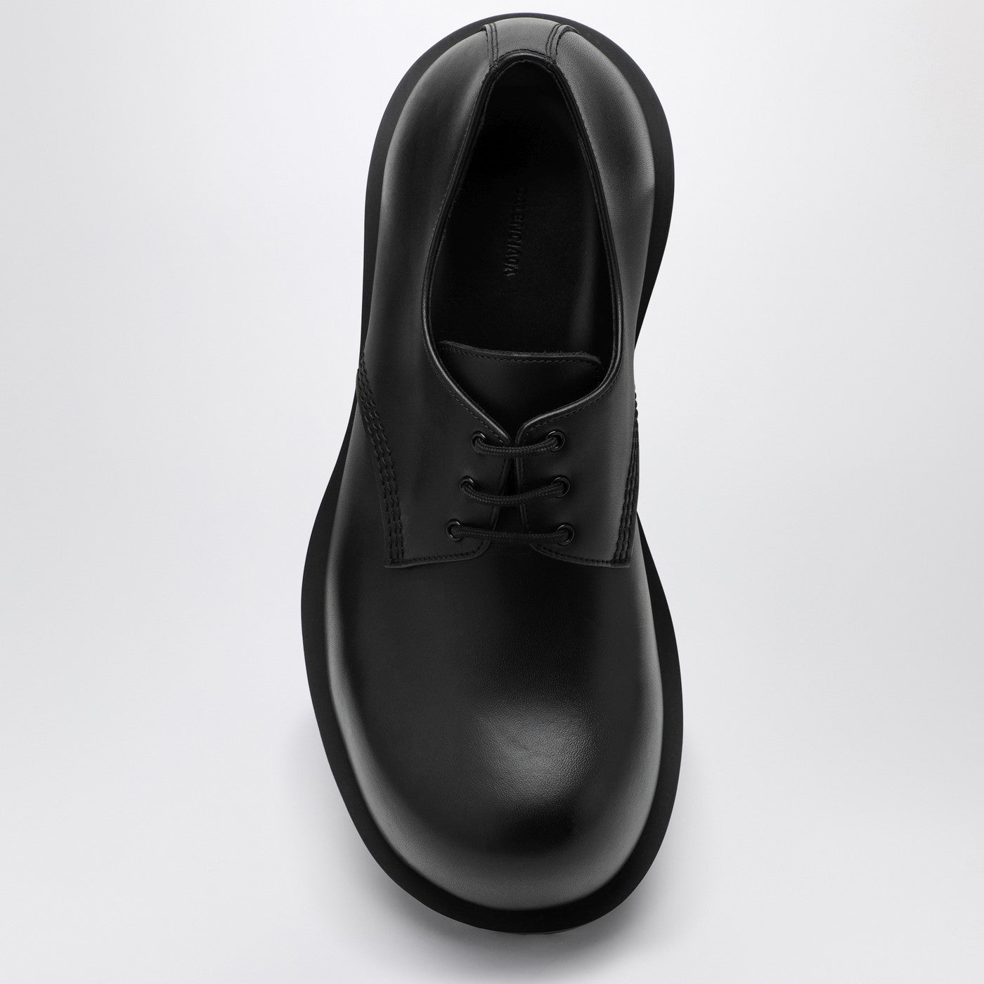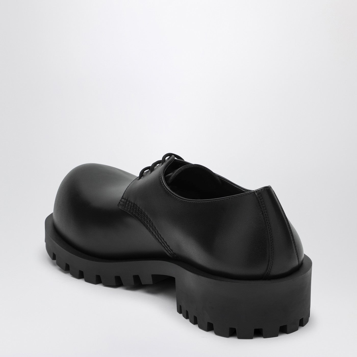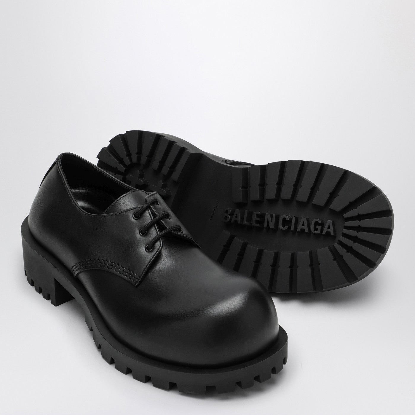 Black matt calfskin derby by Balenciaga, features a lace-up fastening, a round toe and a thick notched rubber sole.