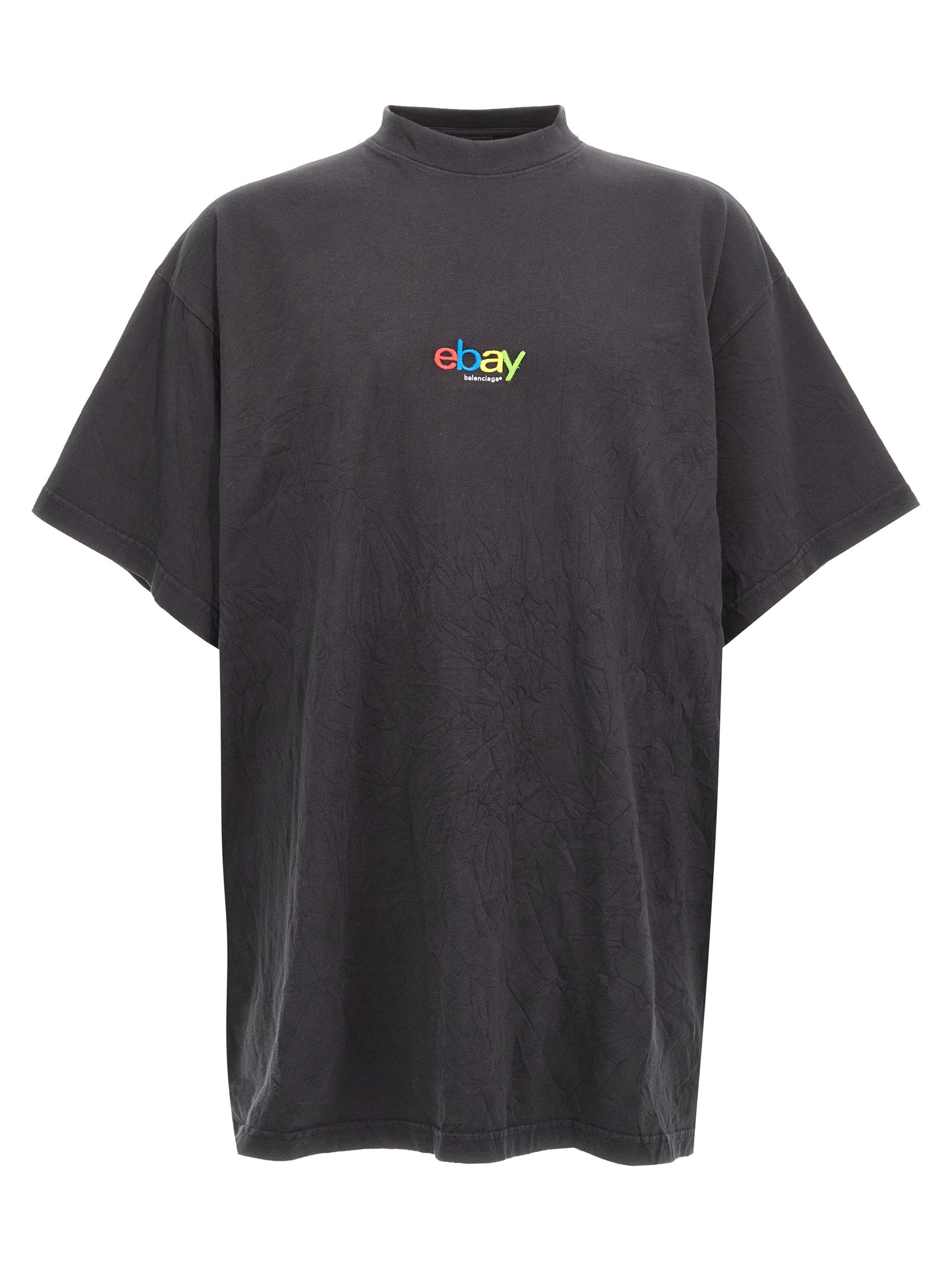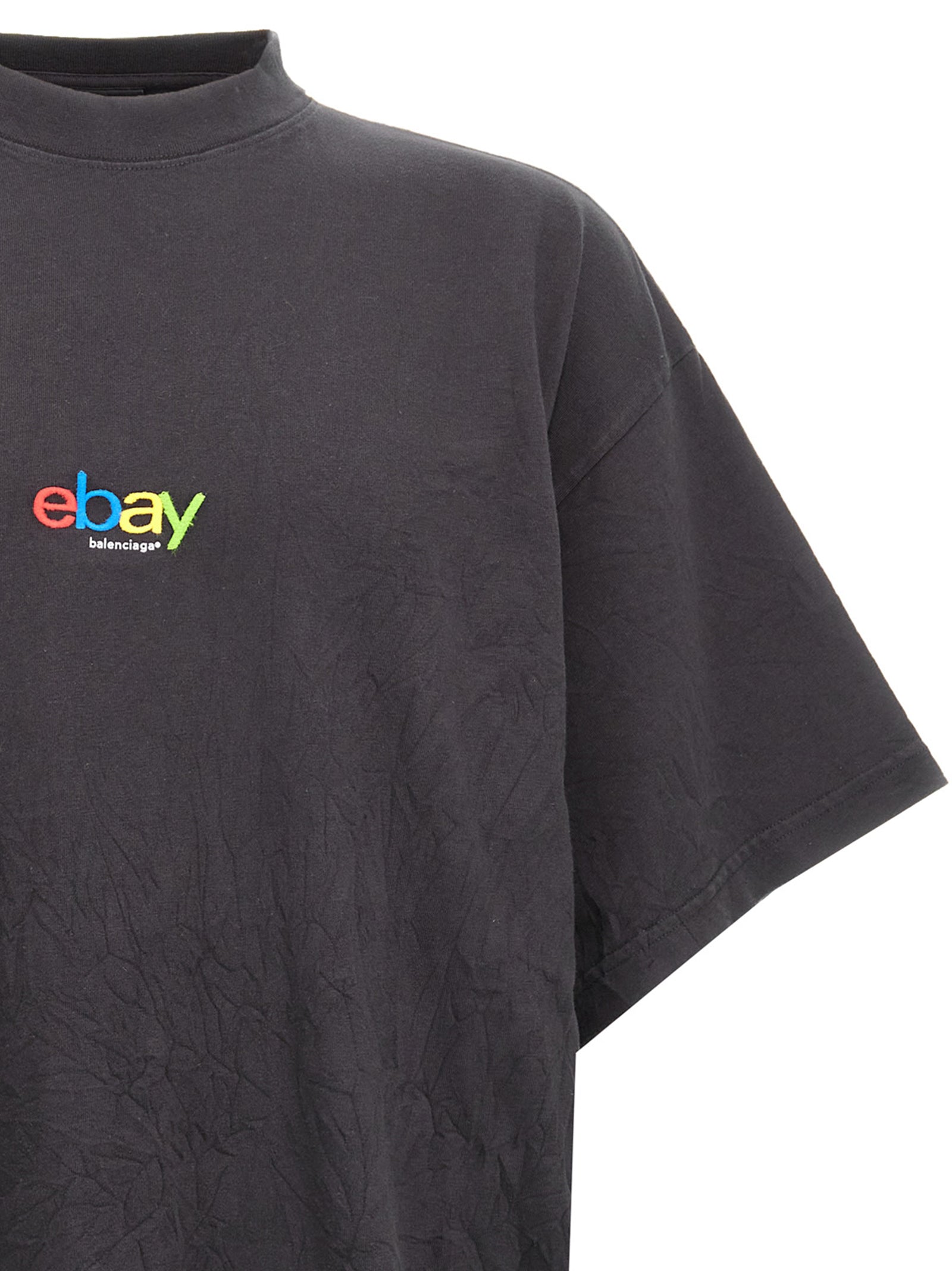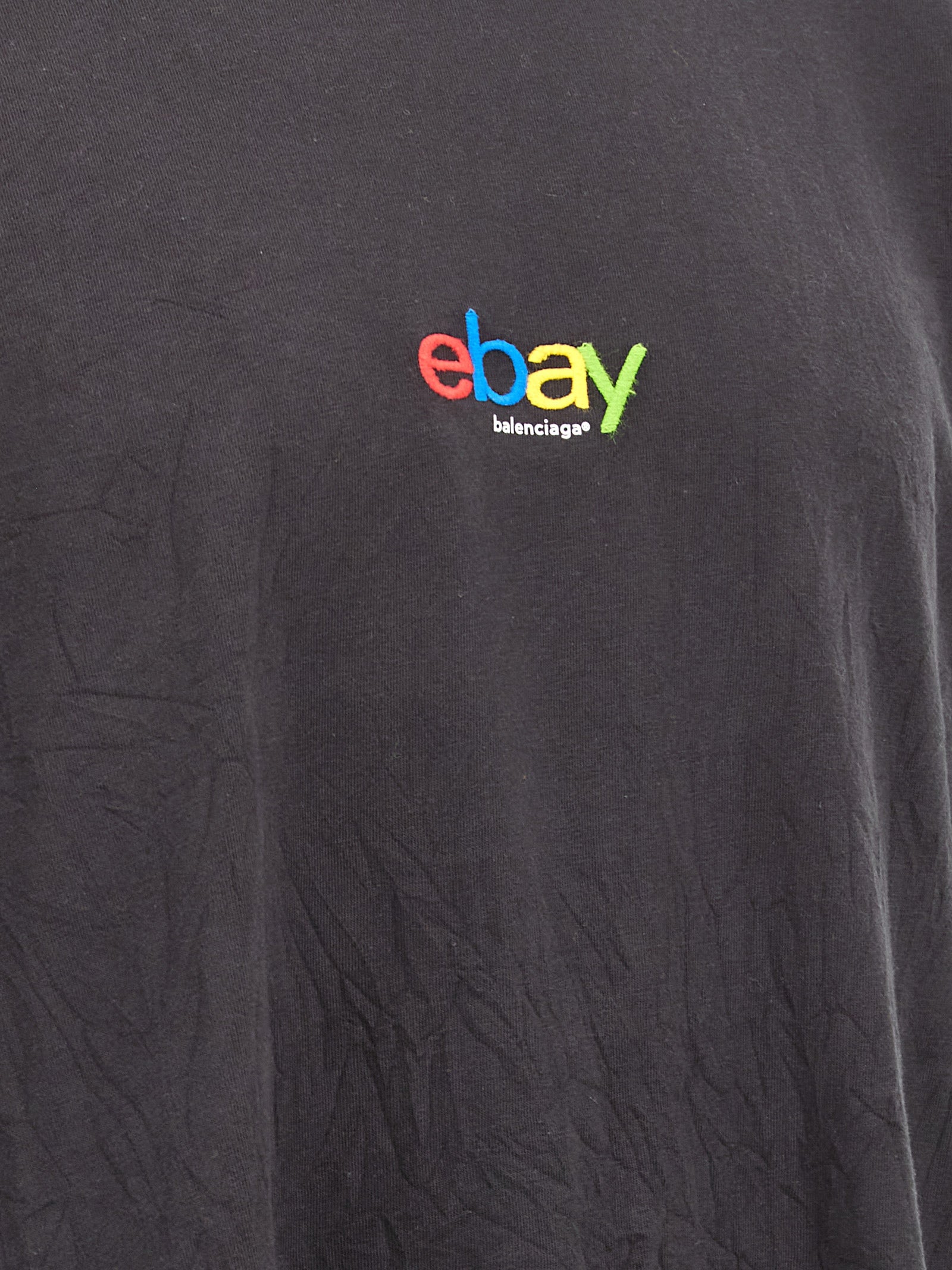 'Ebay' used-effect cotton jersey t-shirt with front logo embroidery, crew neck, short sleeves.