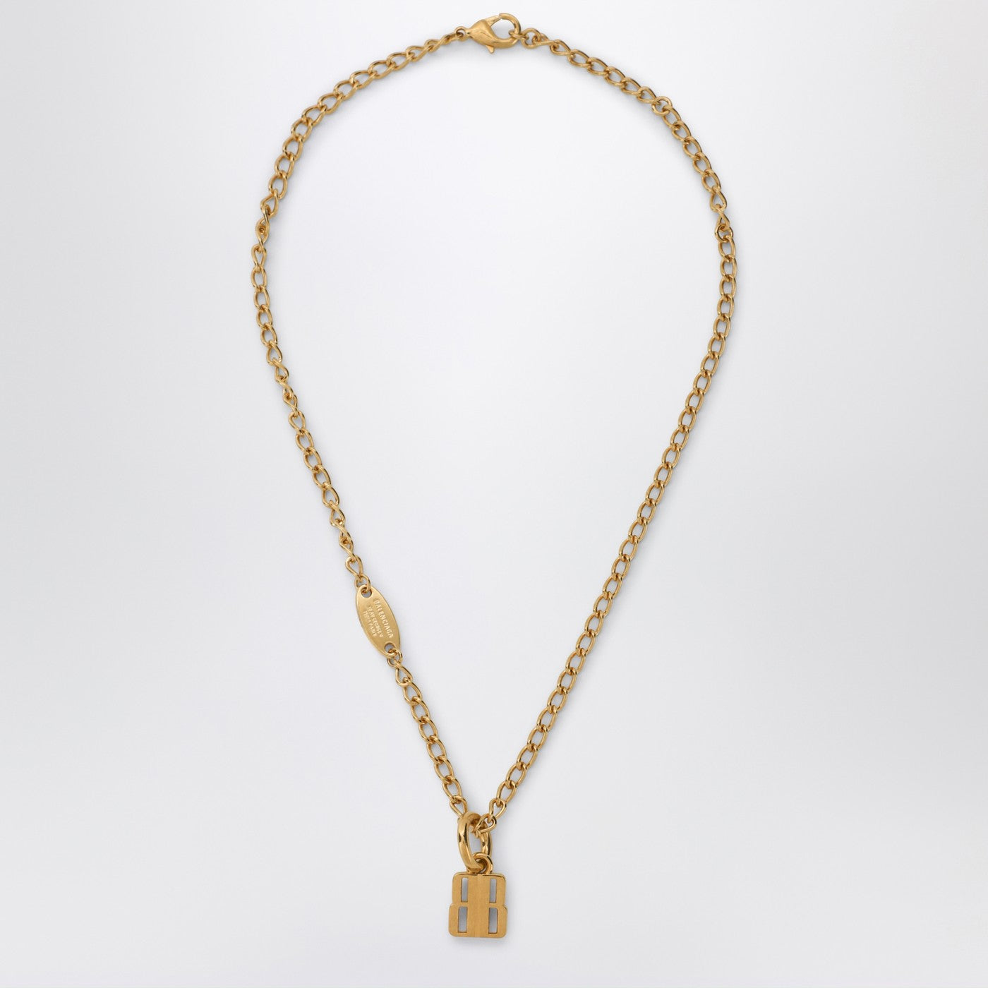 Balenciaga necklace in brass and gold zamak, characterized by a chain, adjustable closure with a lobster clasp, BB Nano logo pendant, and side logo tag.