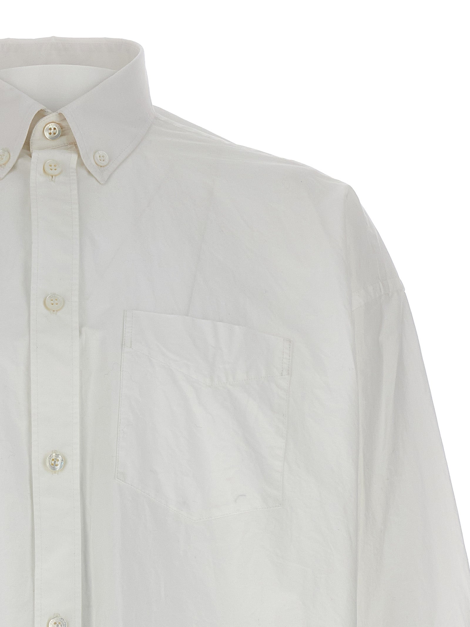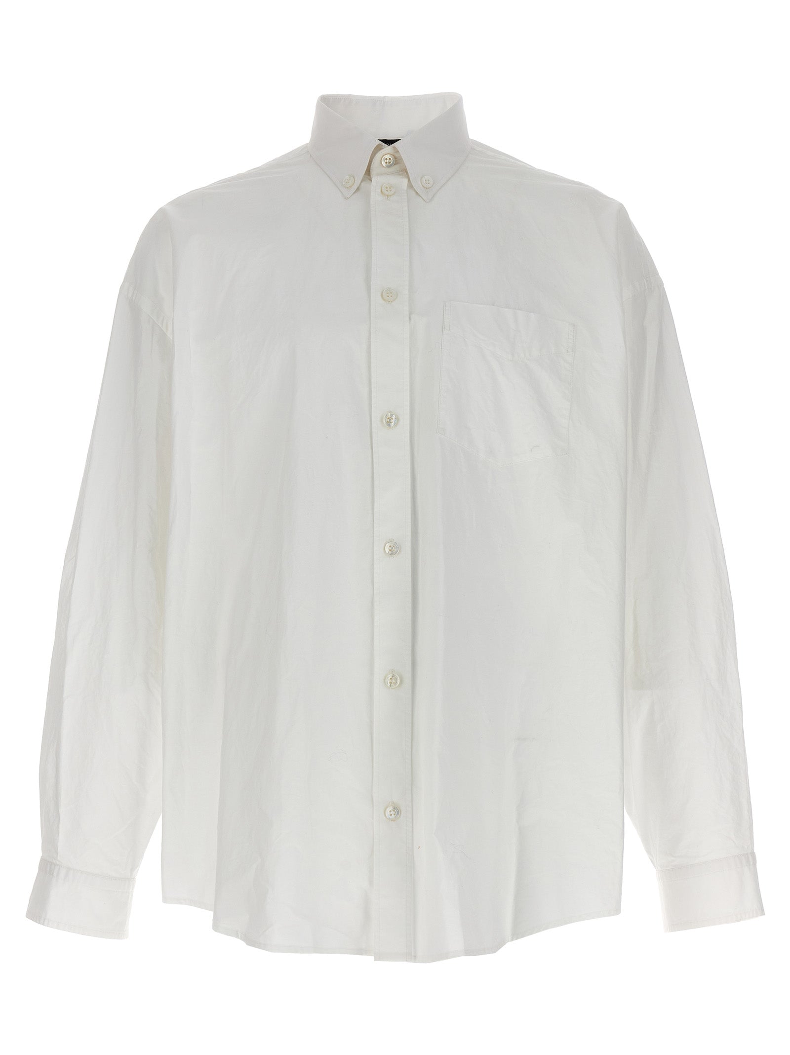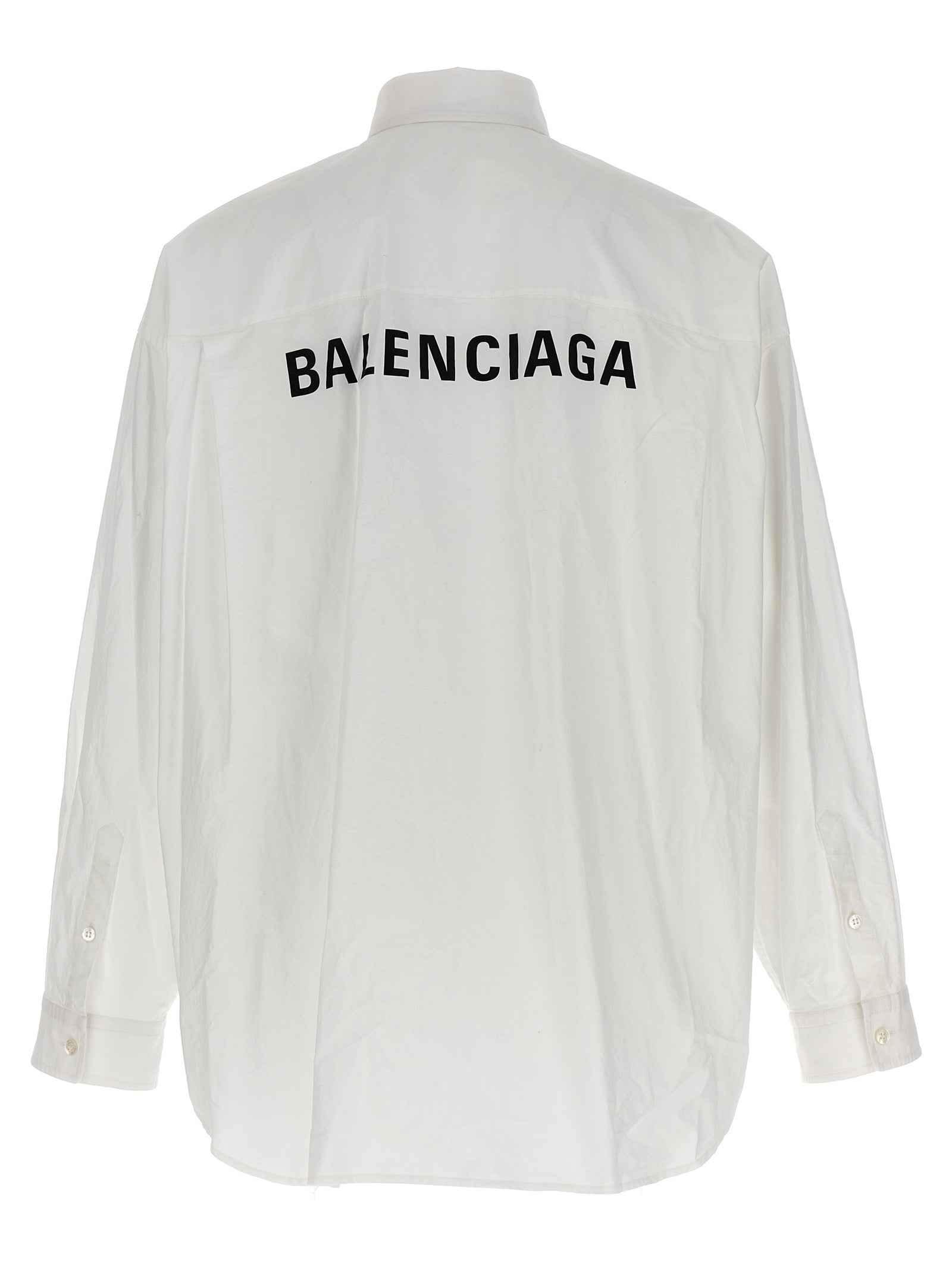 Oversized cotton shirt with button closure and logo print on the back, wrinkled effect.