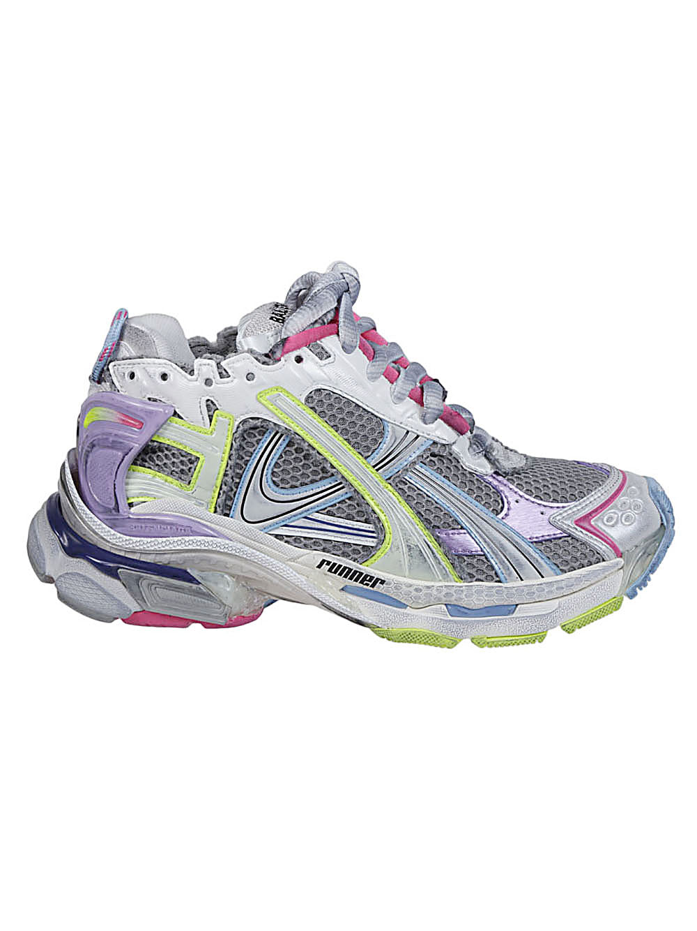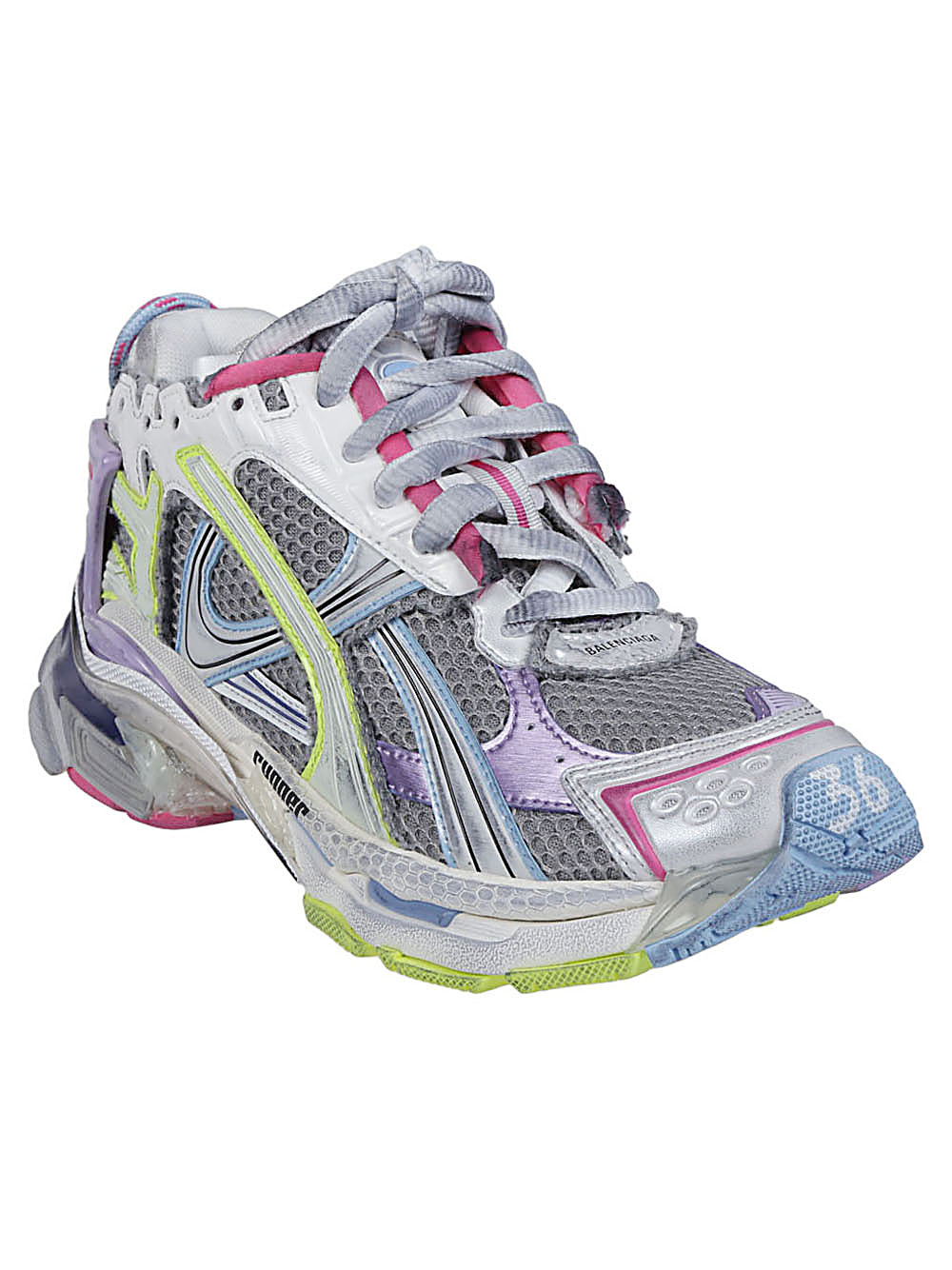 Multicolor sneakers, imprinted size posteriorly, cut printed on the edge on the tip, externally printed runner logo, Balenciaga logo on the tongue and on the back.