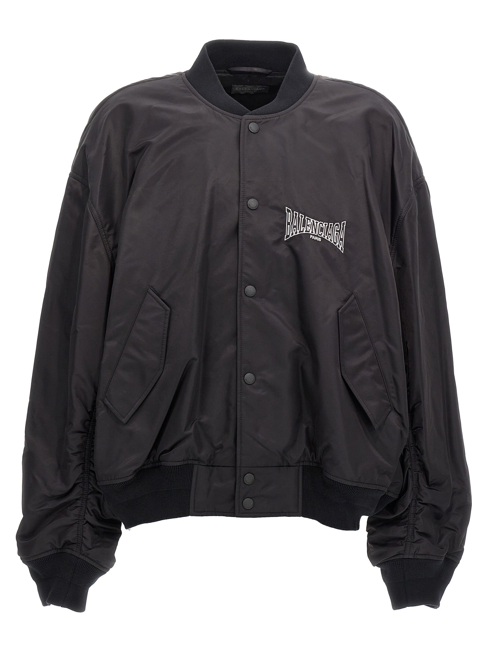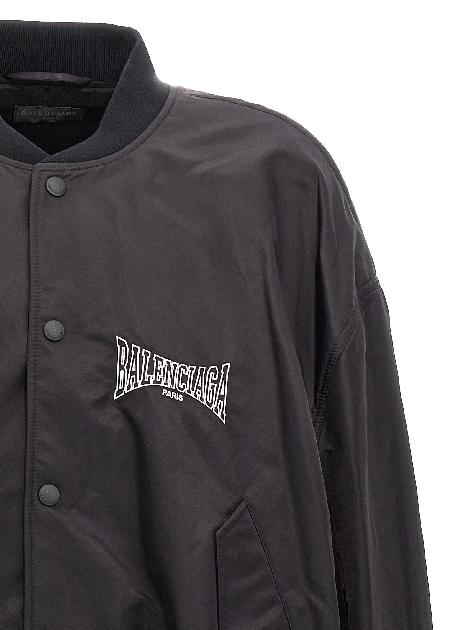 'Varsity Balenciaga Boxing' nylon bomber jacket with front logo embroidery, zip closure, long sleeves with knitted cuffs.