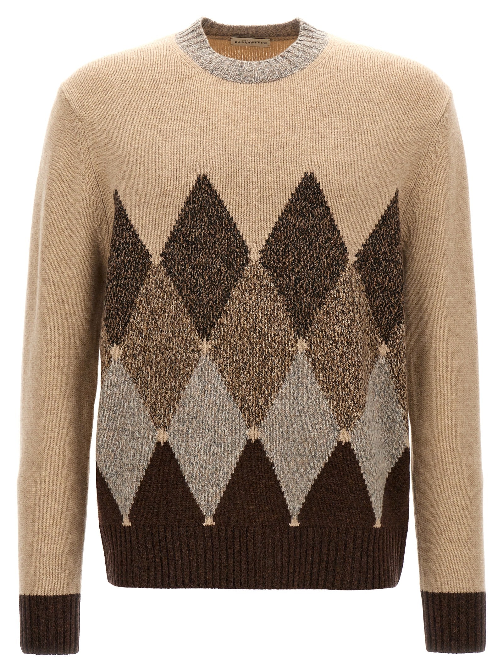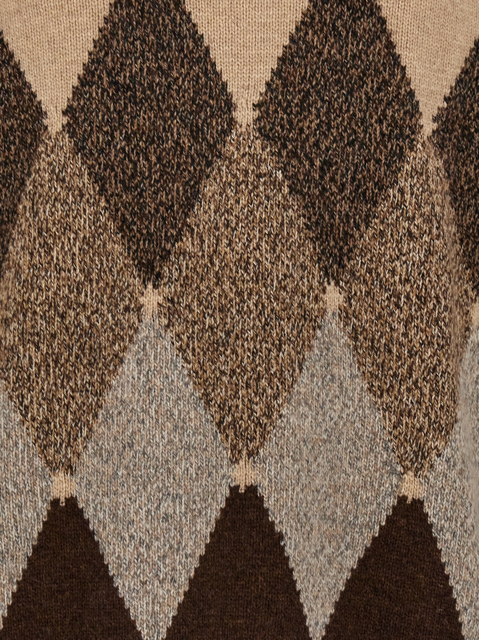 Muline wool sweater with 'Argyle' pattern, Crew neck, long cuffed sleeves.