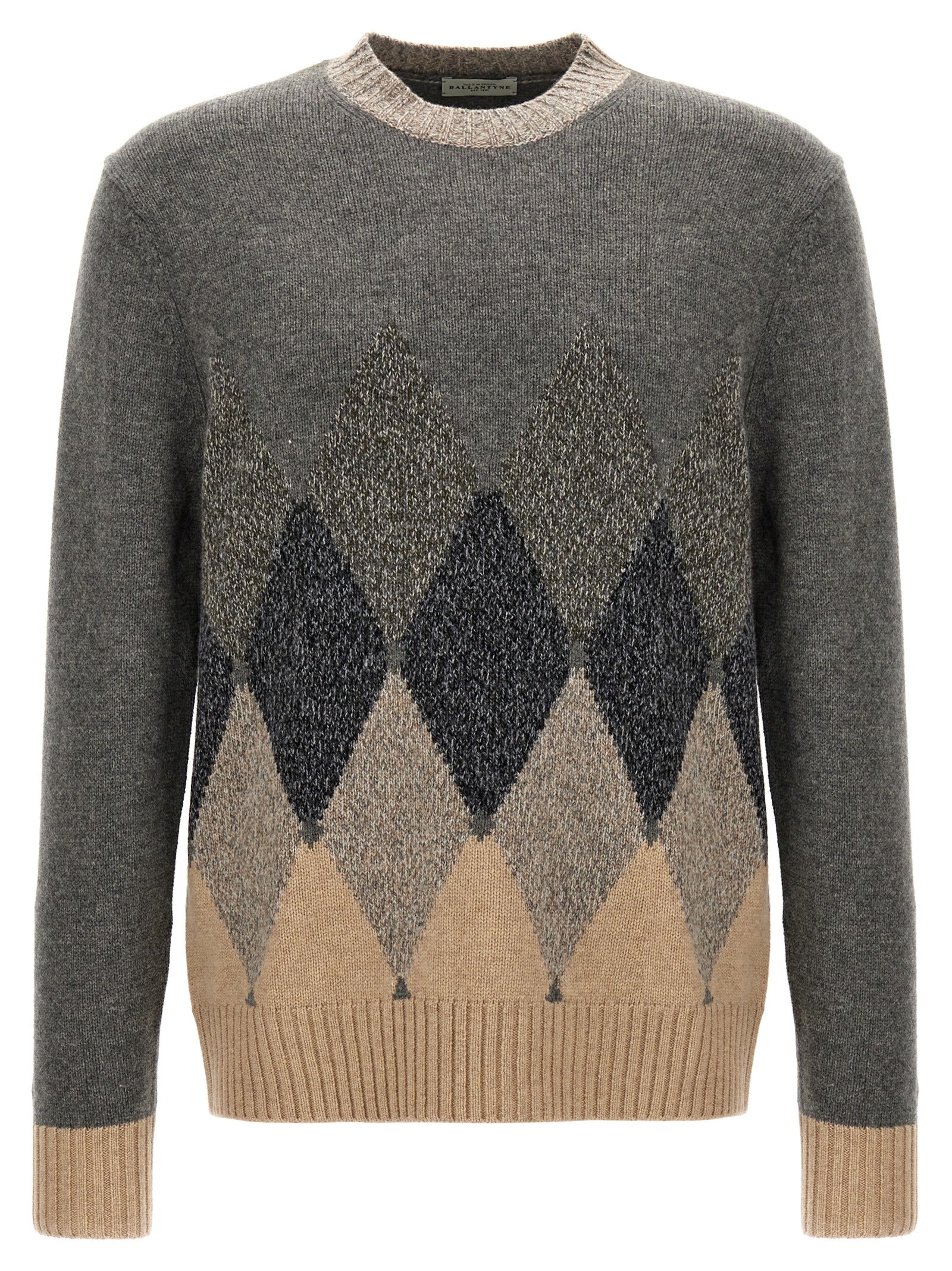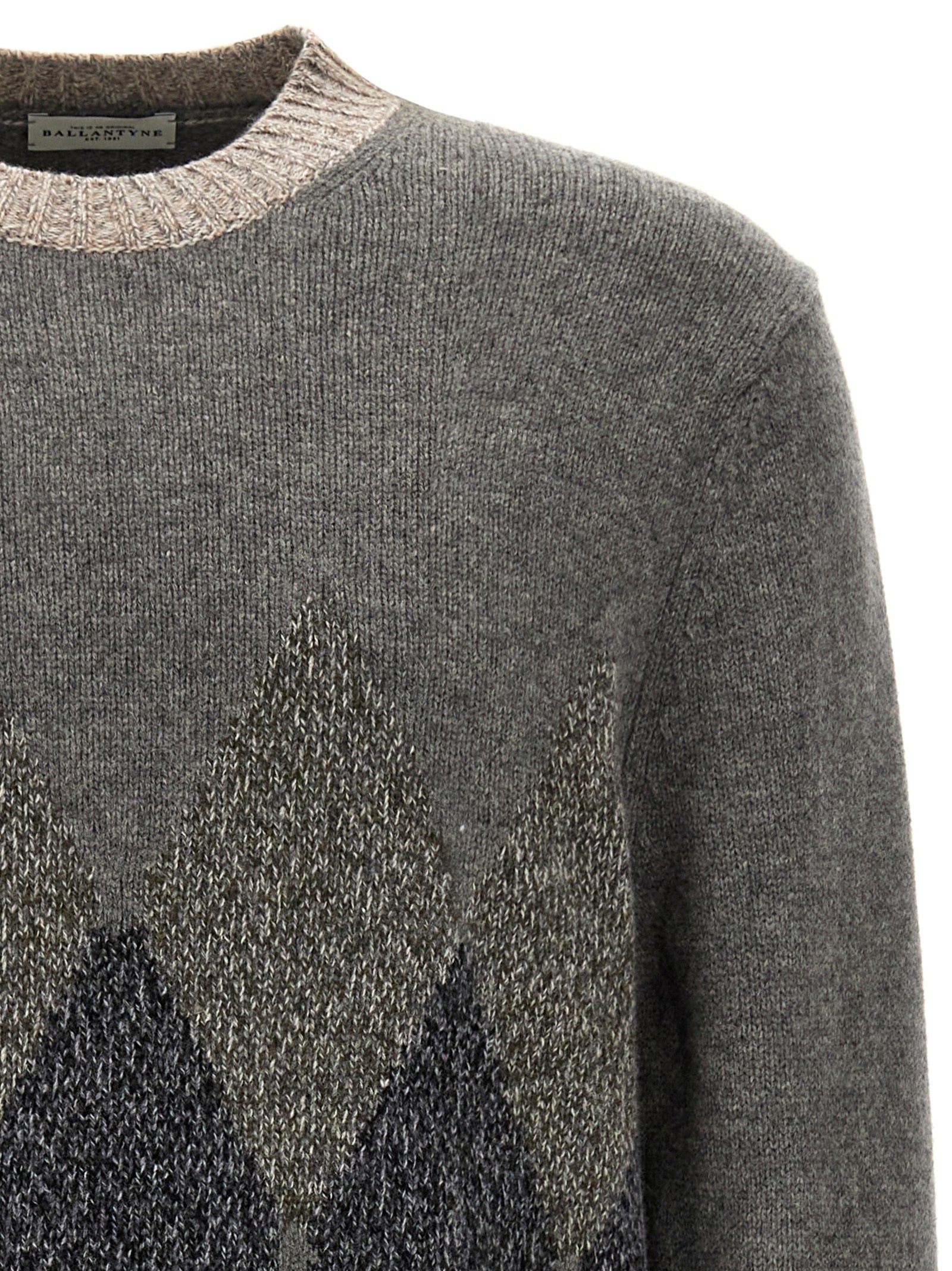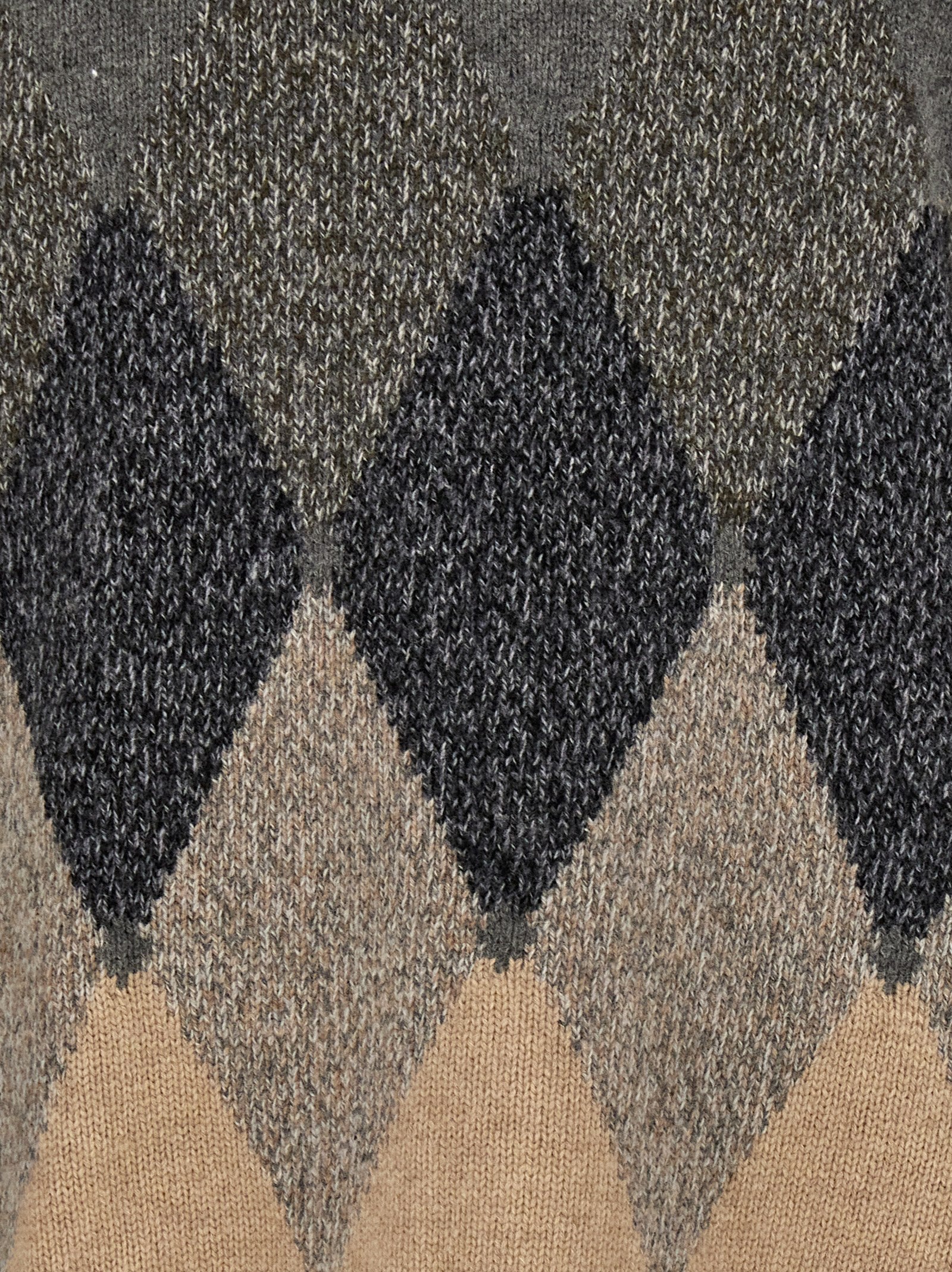 Muline wool sweater with 'Argyle' pattern, Crew neck, long cuffed sleeves.