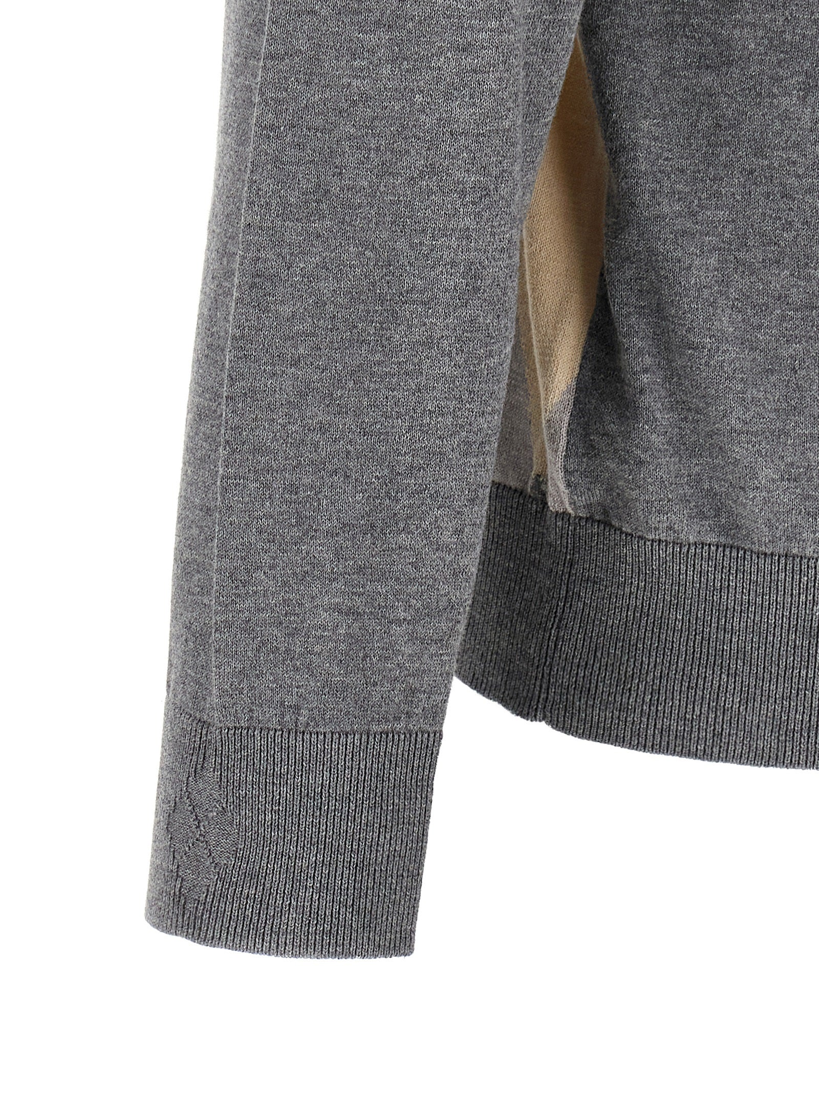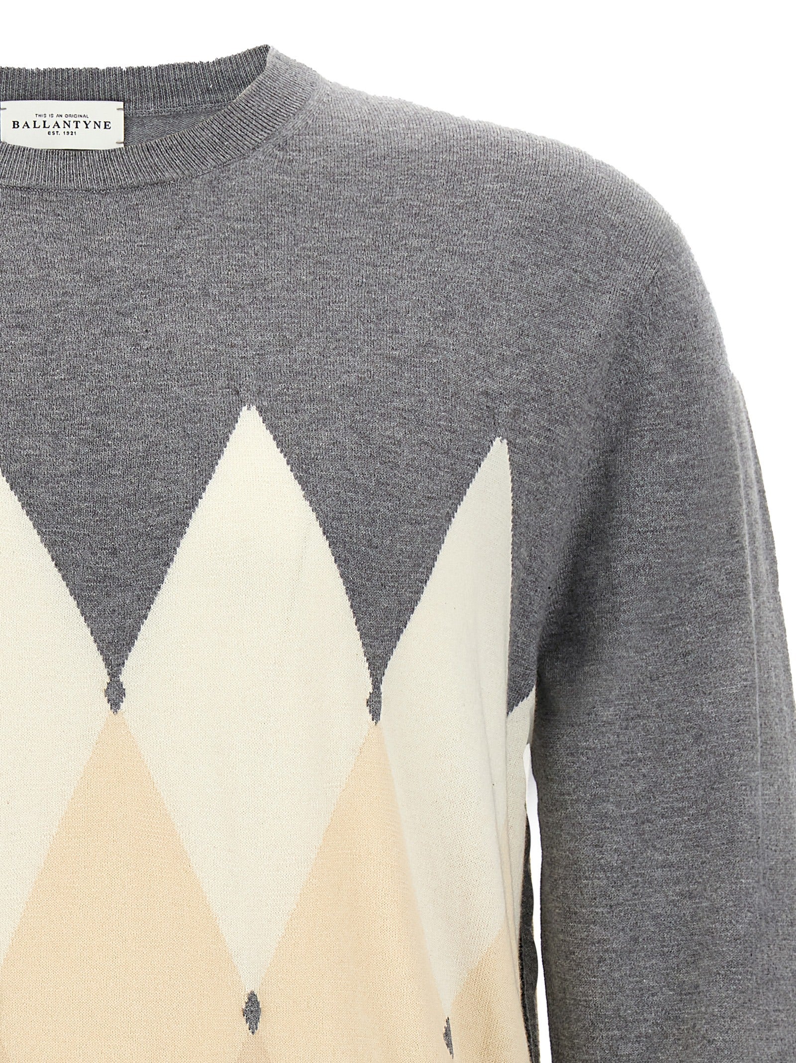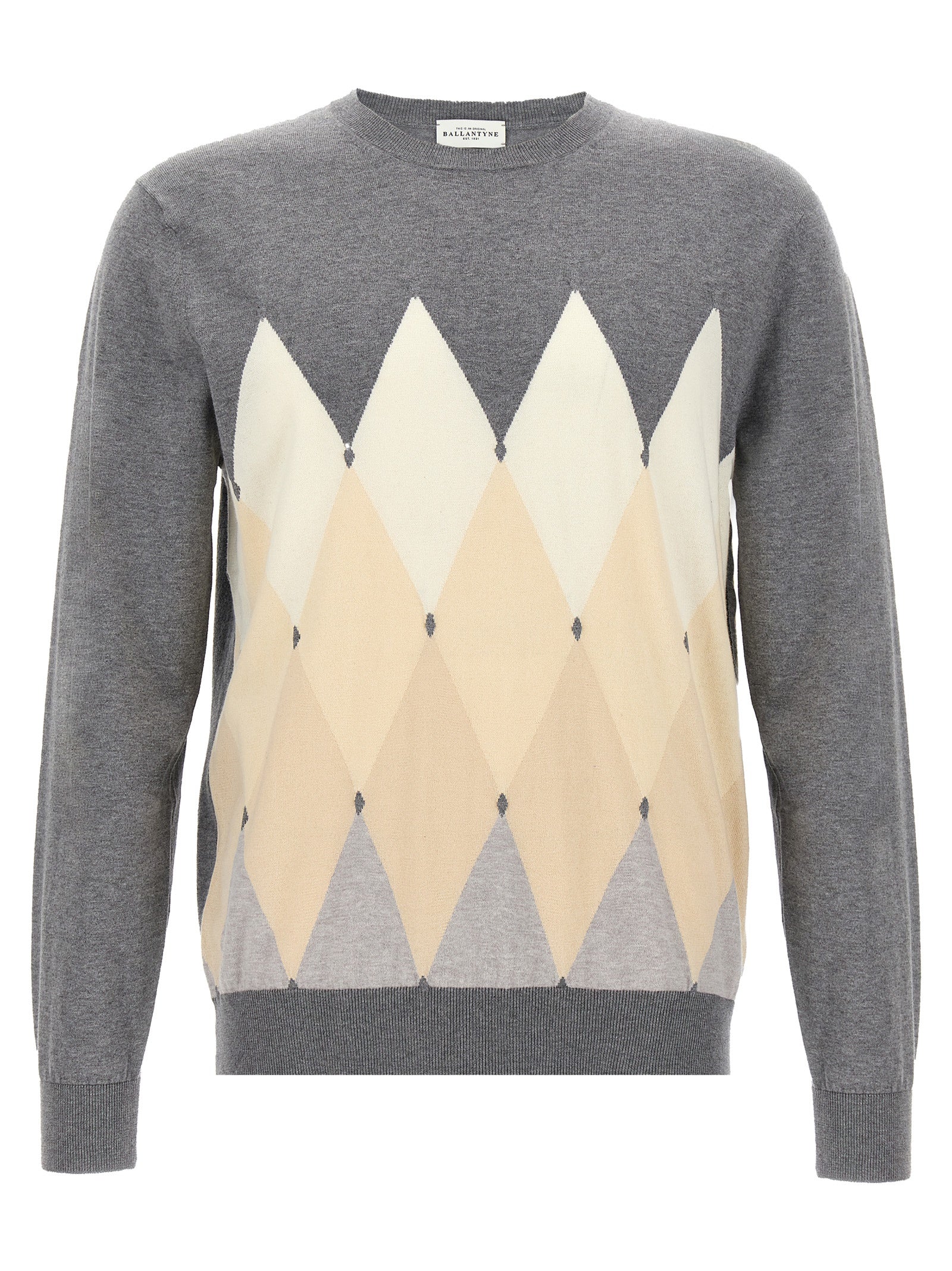 Cotton and cashmere blend sweater with 'Argyle' pattern, crew neck, long cuffed sleeves.