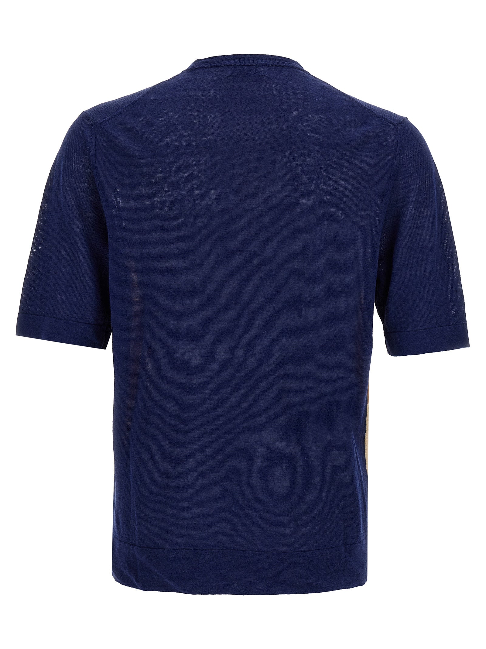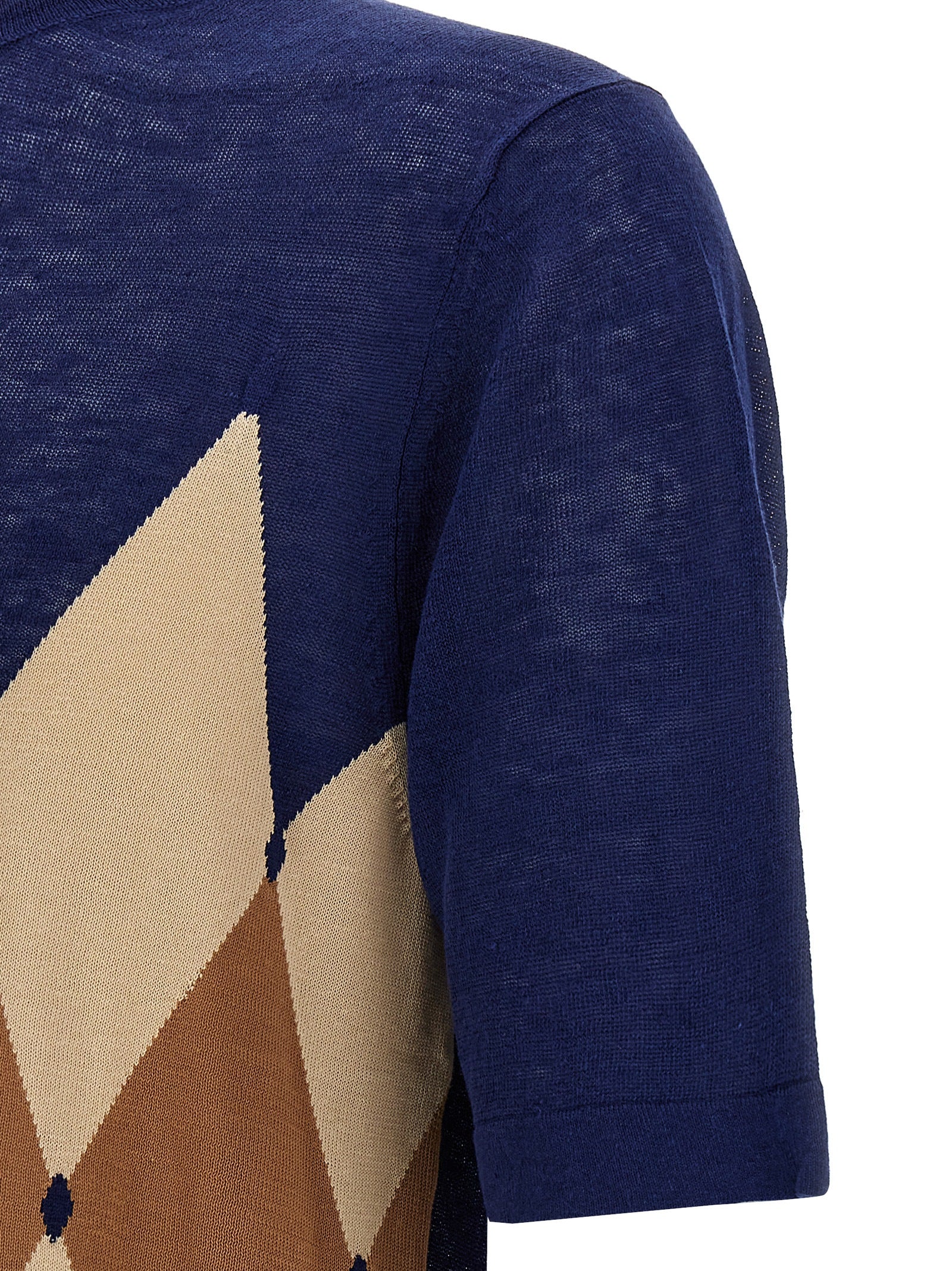 Linen and cotton blend T-shirt with 'Argyle' pattern, crew neck, short sleeves.