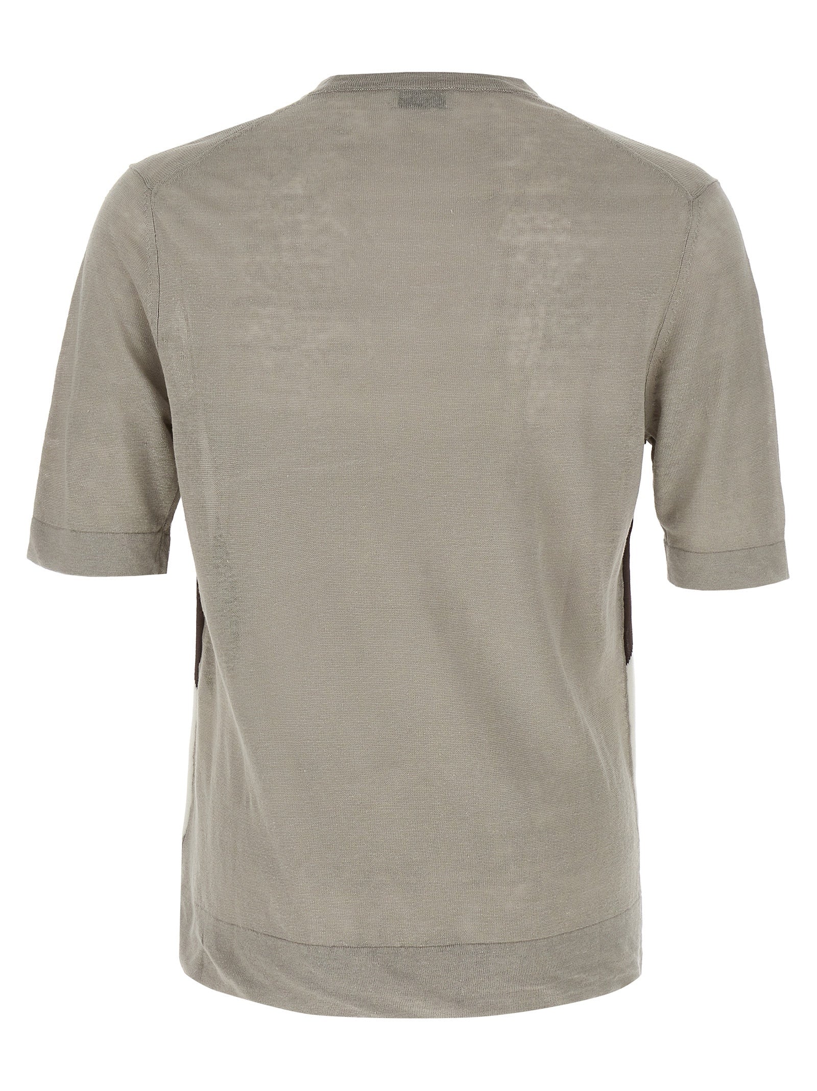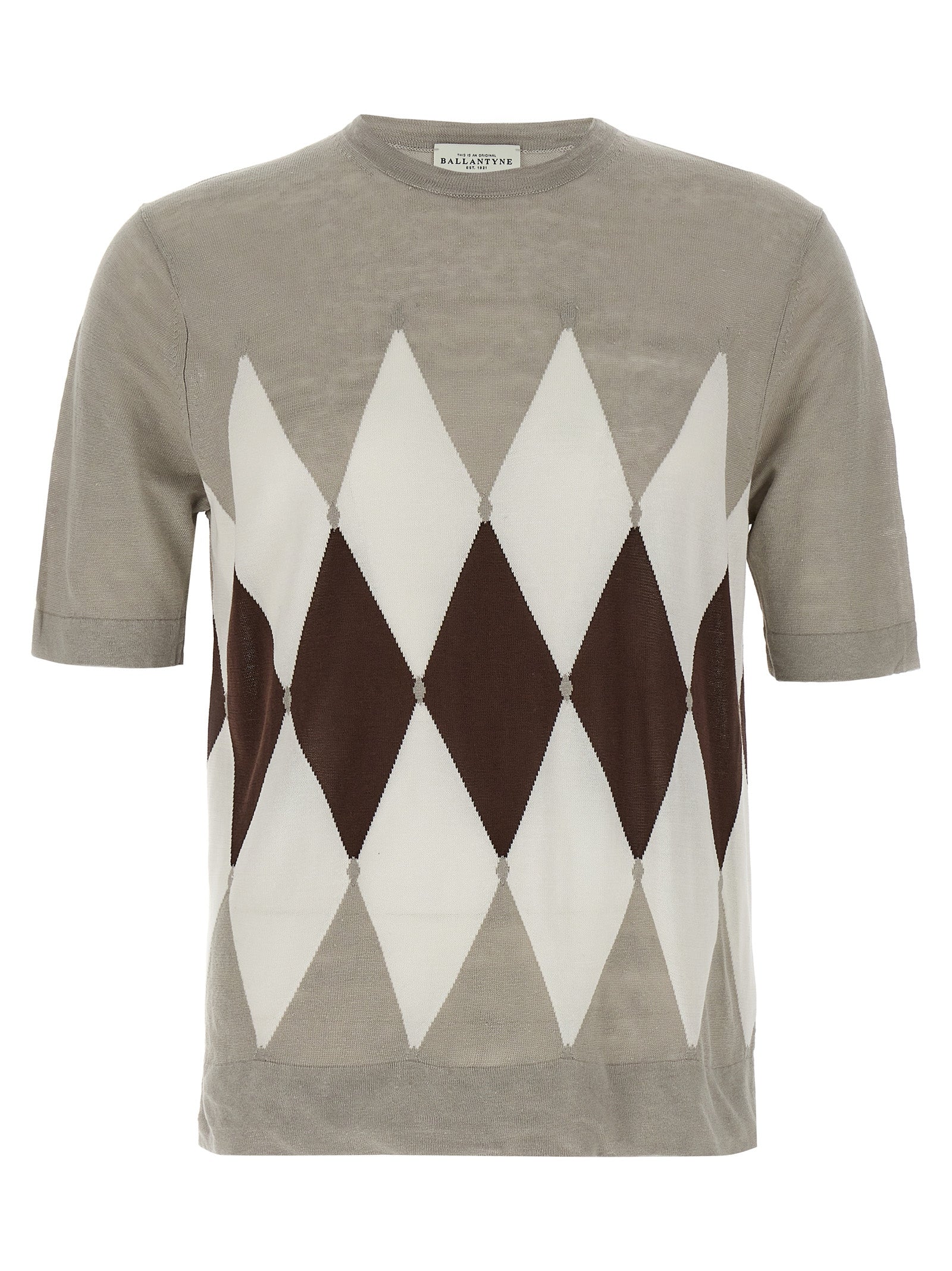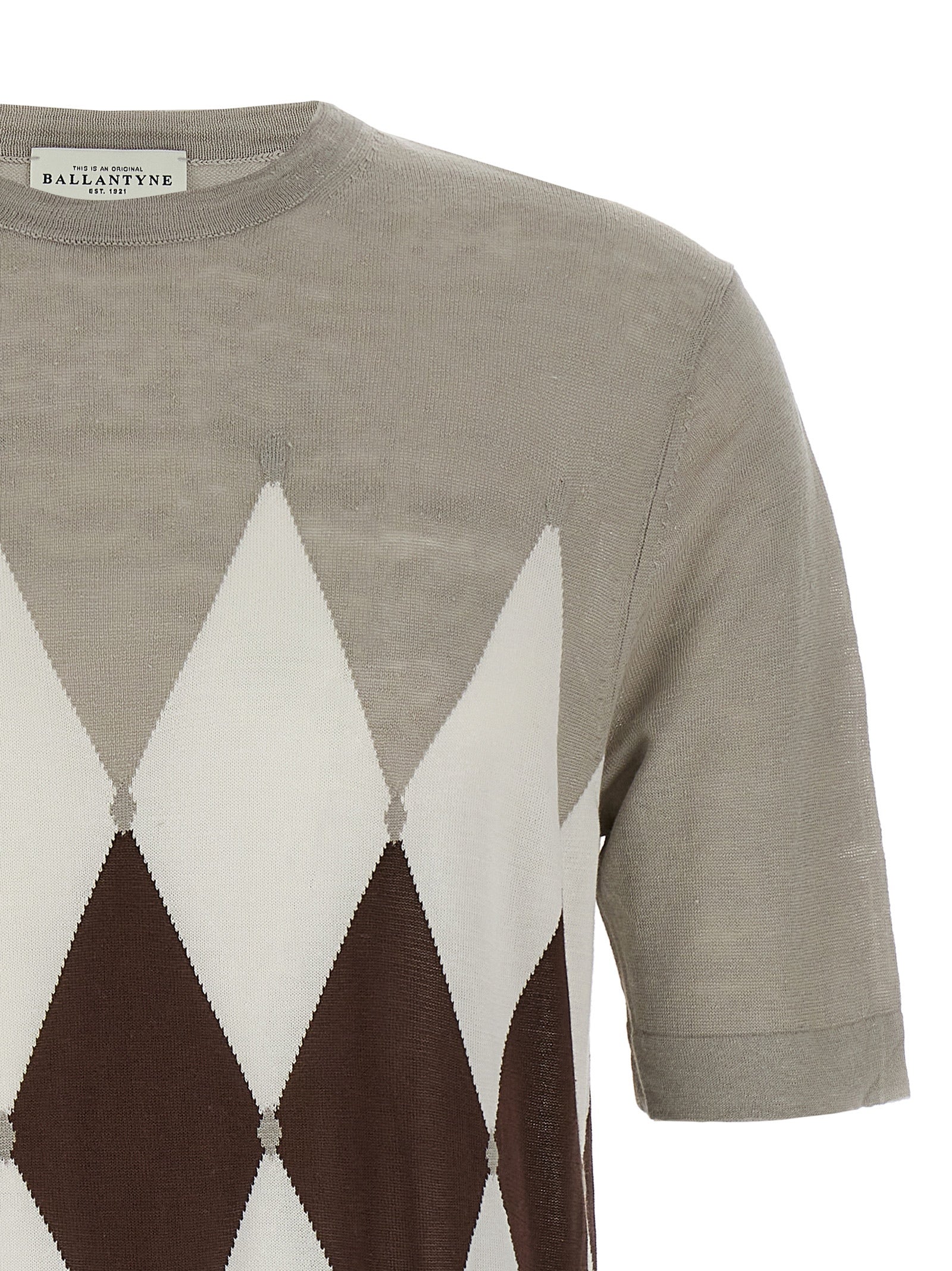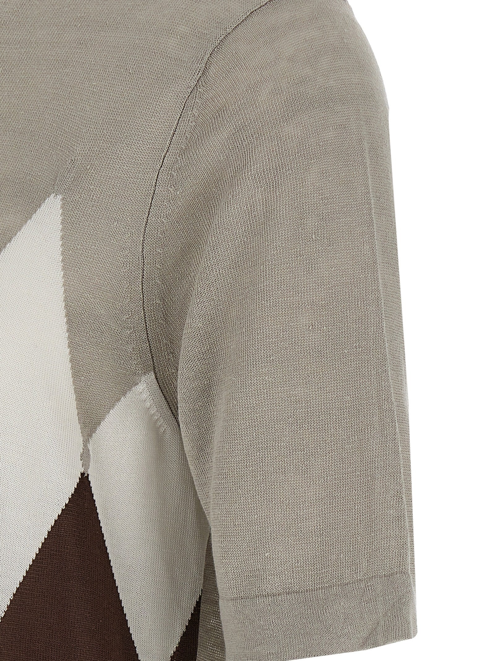 Linen and cotton blend T-shirt with 'Argyle' pattern, crew neck, short sleeves.